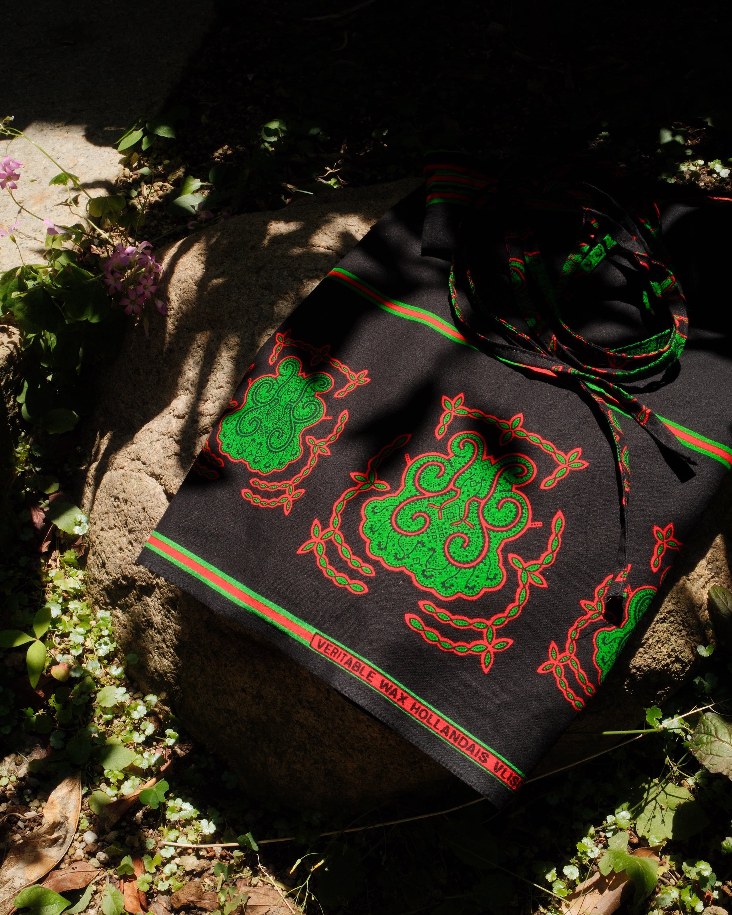 元々ドレスや腰巻きに使われているアフリカ布の絵柄を活かすということを、大事に掬い取って制作しました。