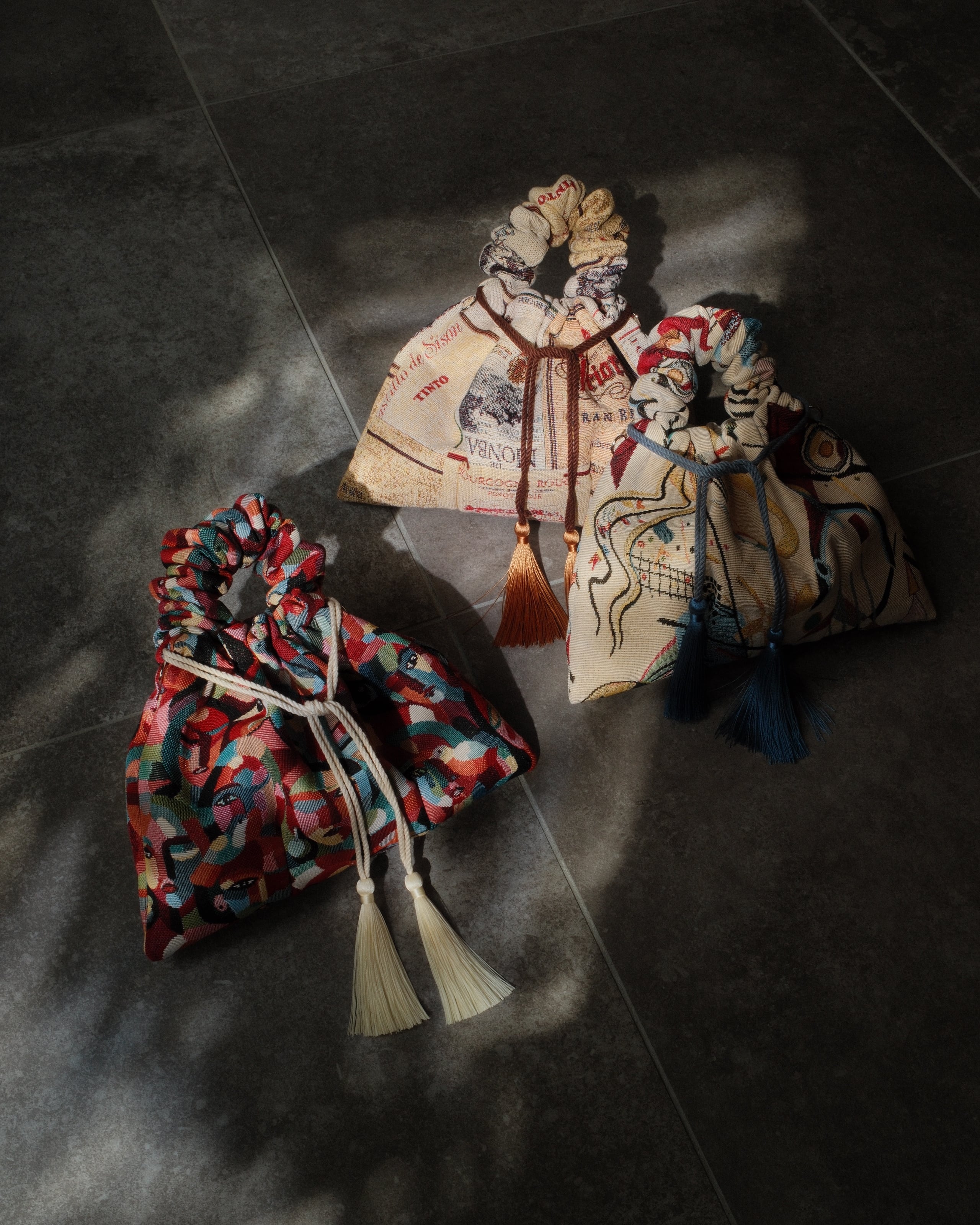 Parisで買ってきたサフェコ社製のジャガード生地をShrink Kinchaku チャーミングサイズ(S)に仕立てました。