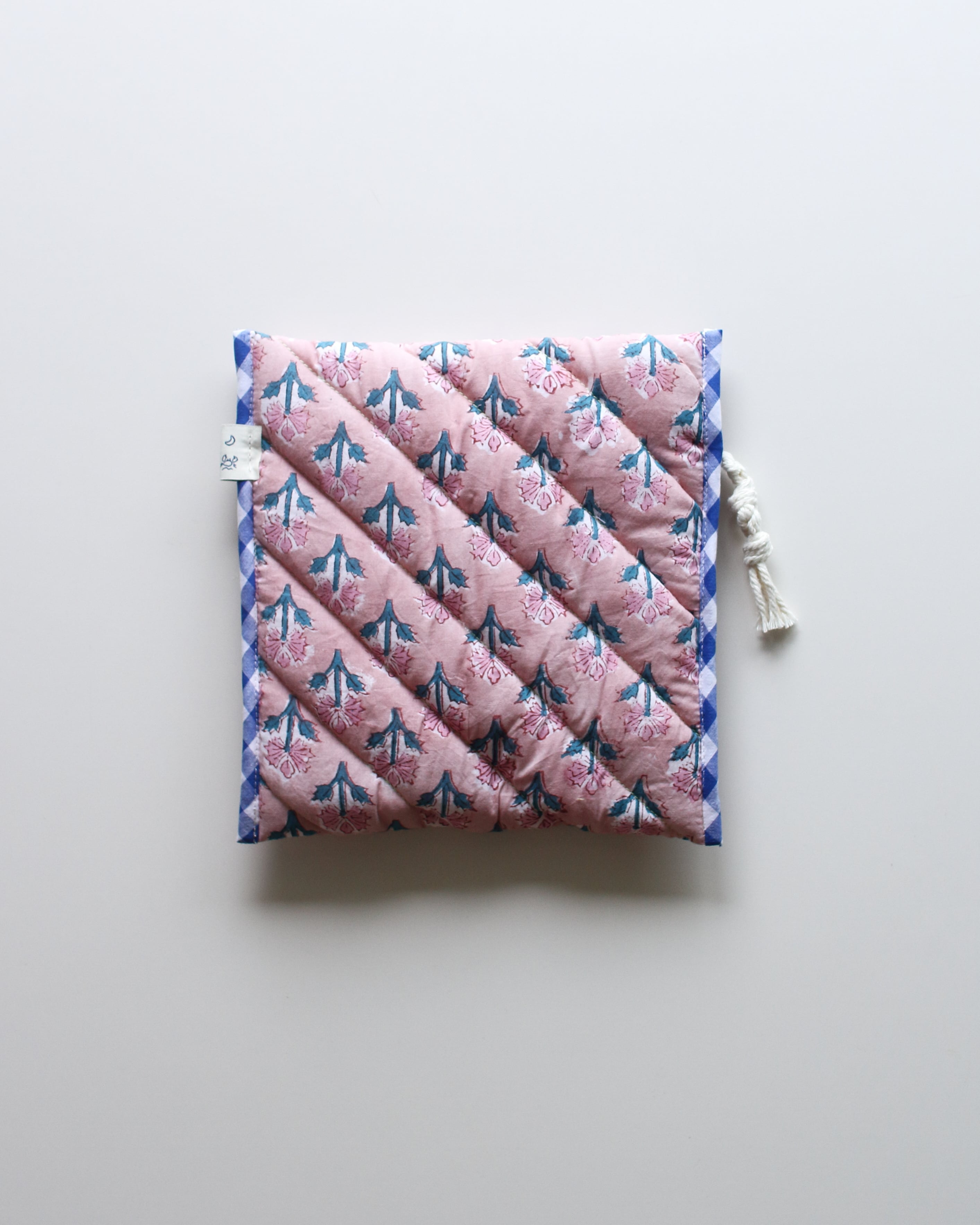 裏地にもブロックプリントの柄を配置していて、縁取りの組み合わせもひとつひとつ違っている、全て1点ずつの制作となります。