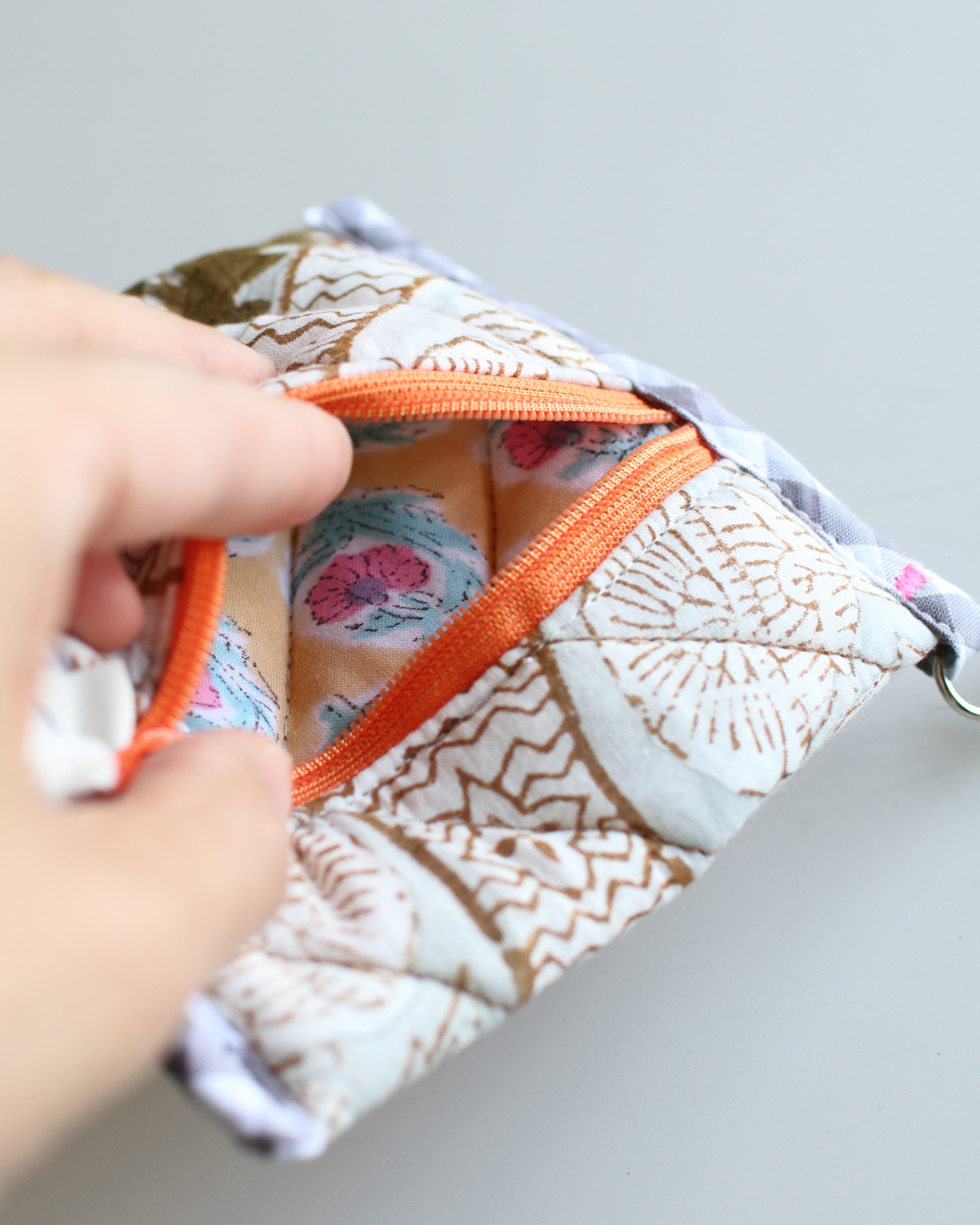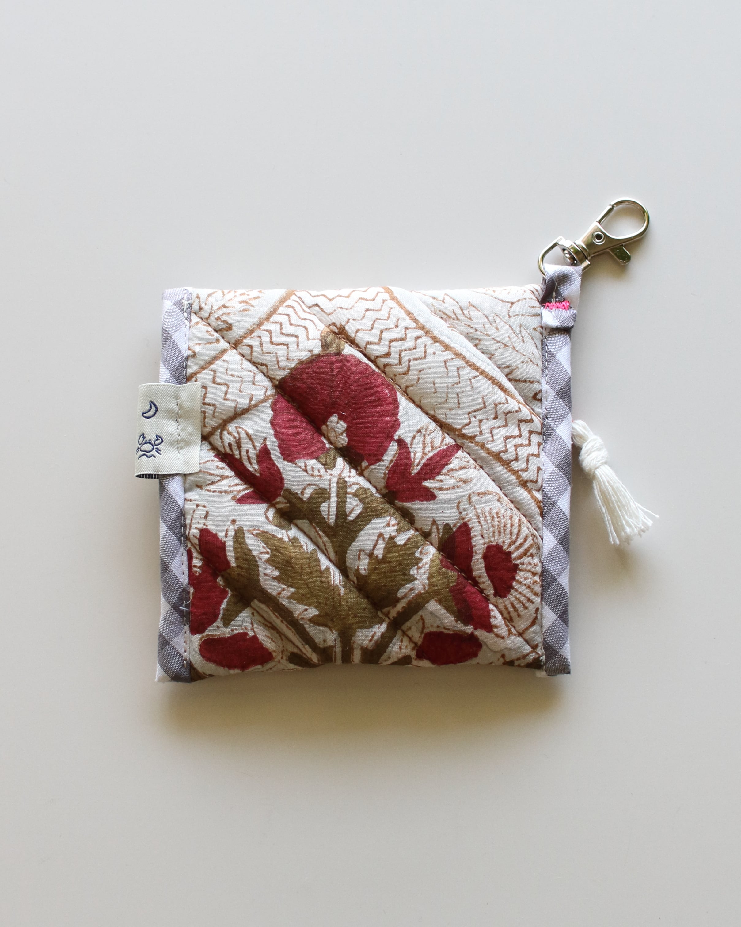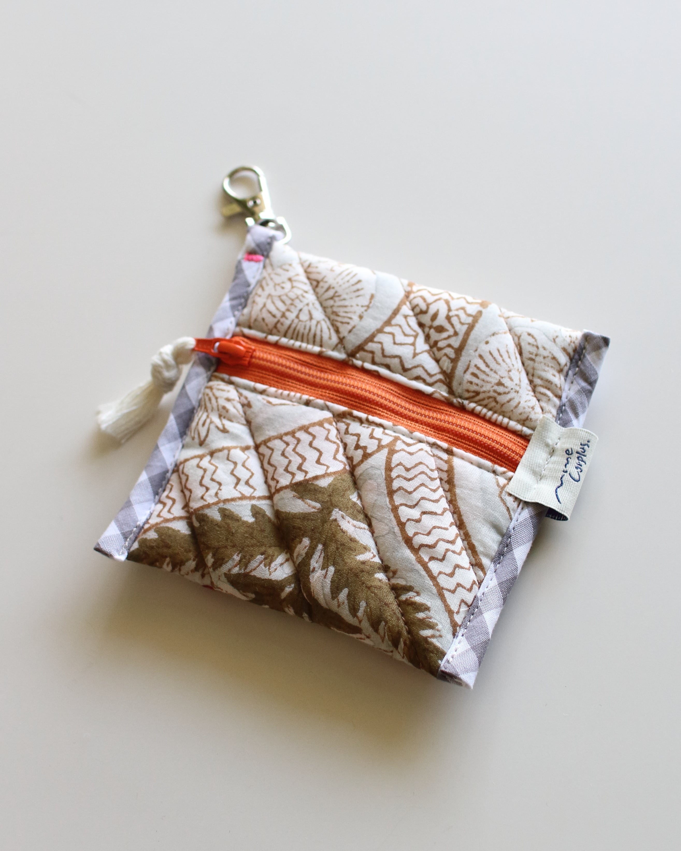 オリジナルで厚みのあるキルティングに仕立てたミニポーチ。