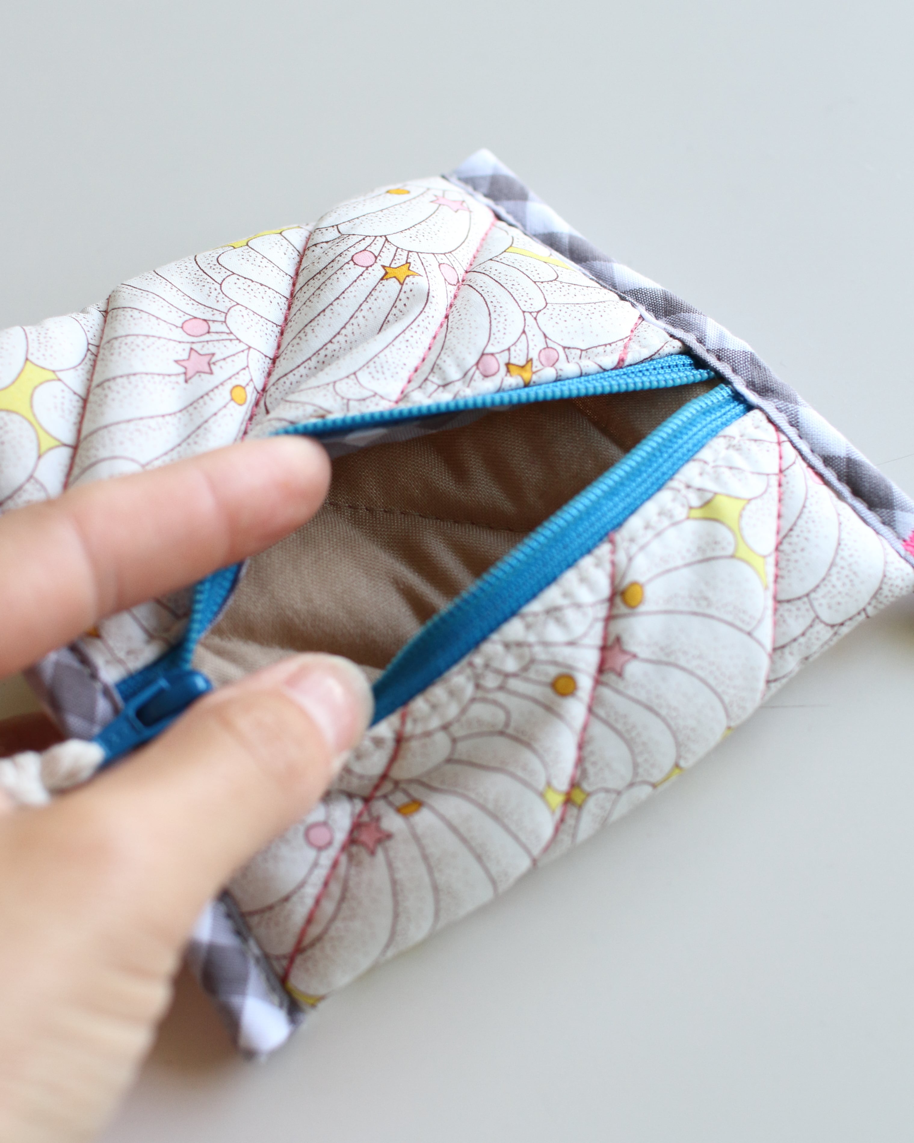 オリジナルで厚みのあるキルティングに仕立てたミニポーチ。