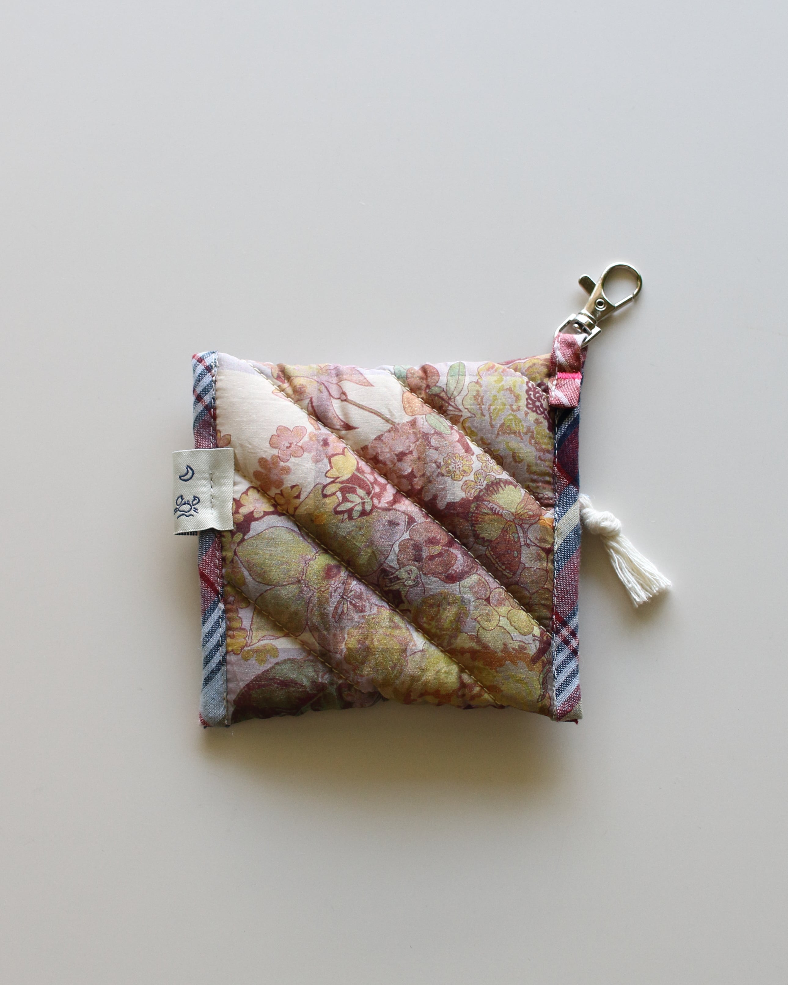 オリジナルで厚みのあるキルティングに仕立てたミニポーチ。