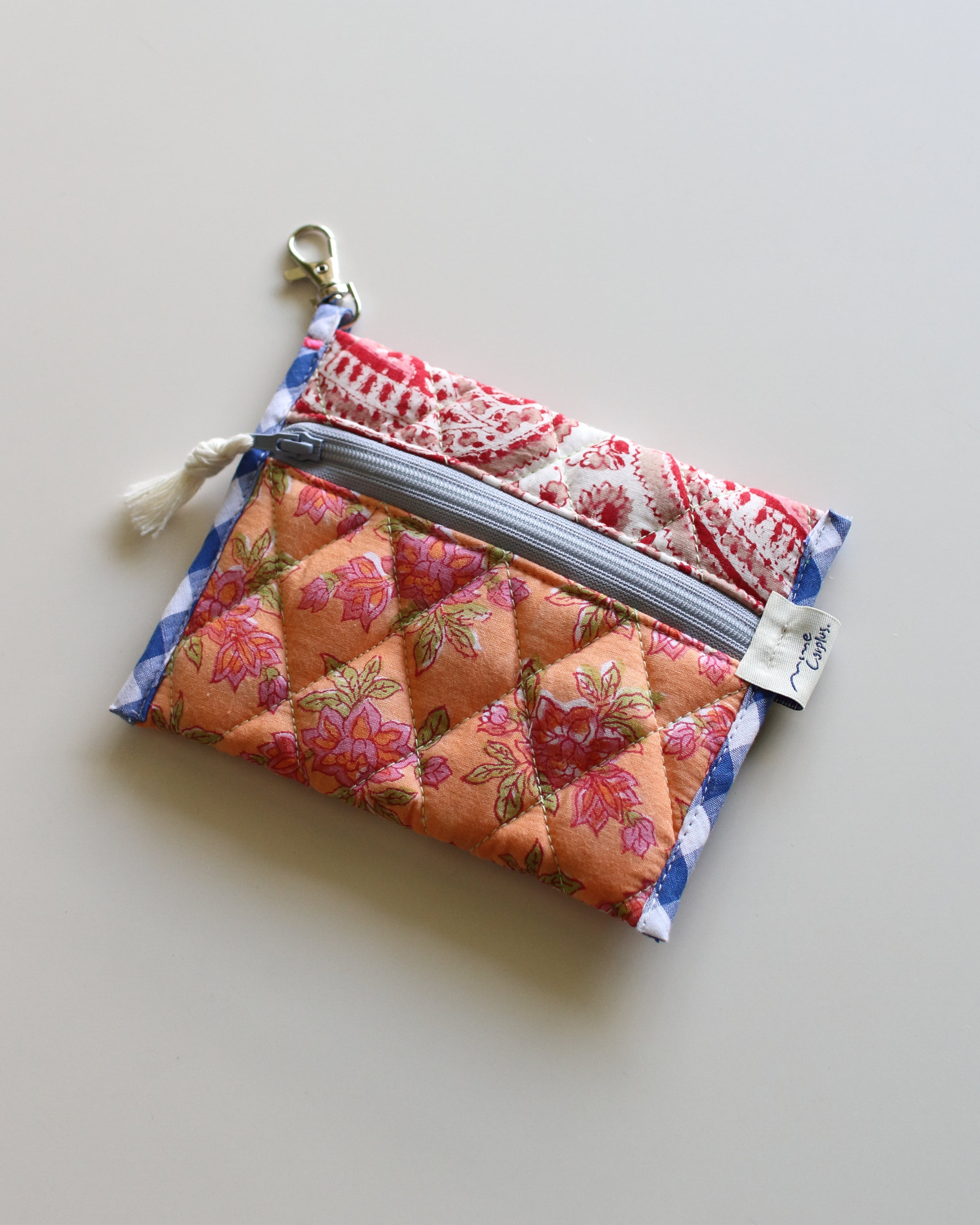 オリジナルで厚みのあるキルティングに仕立てたコンパクトポーチ。
