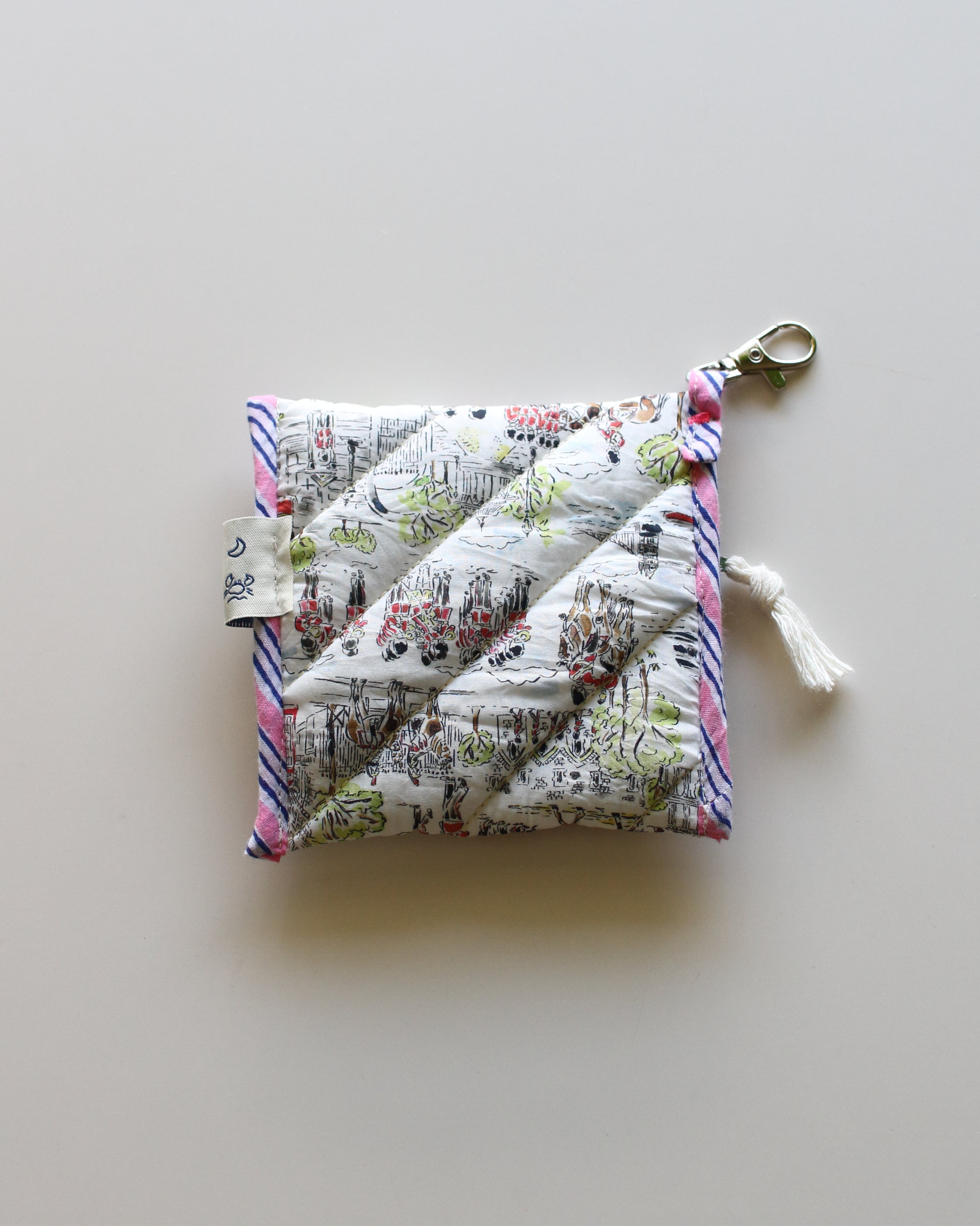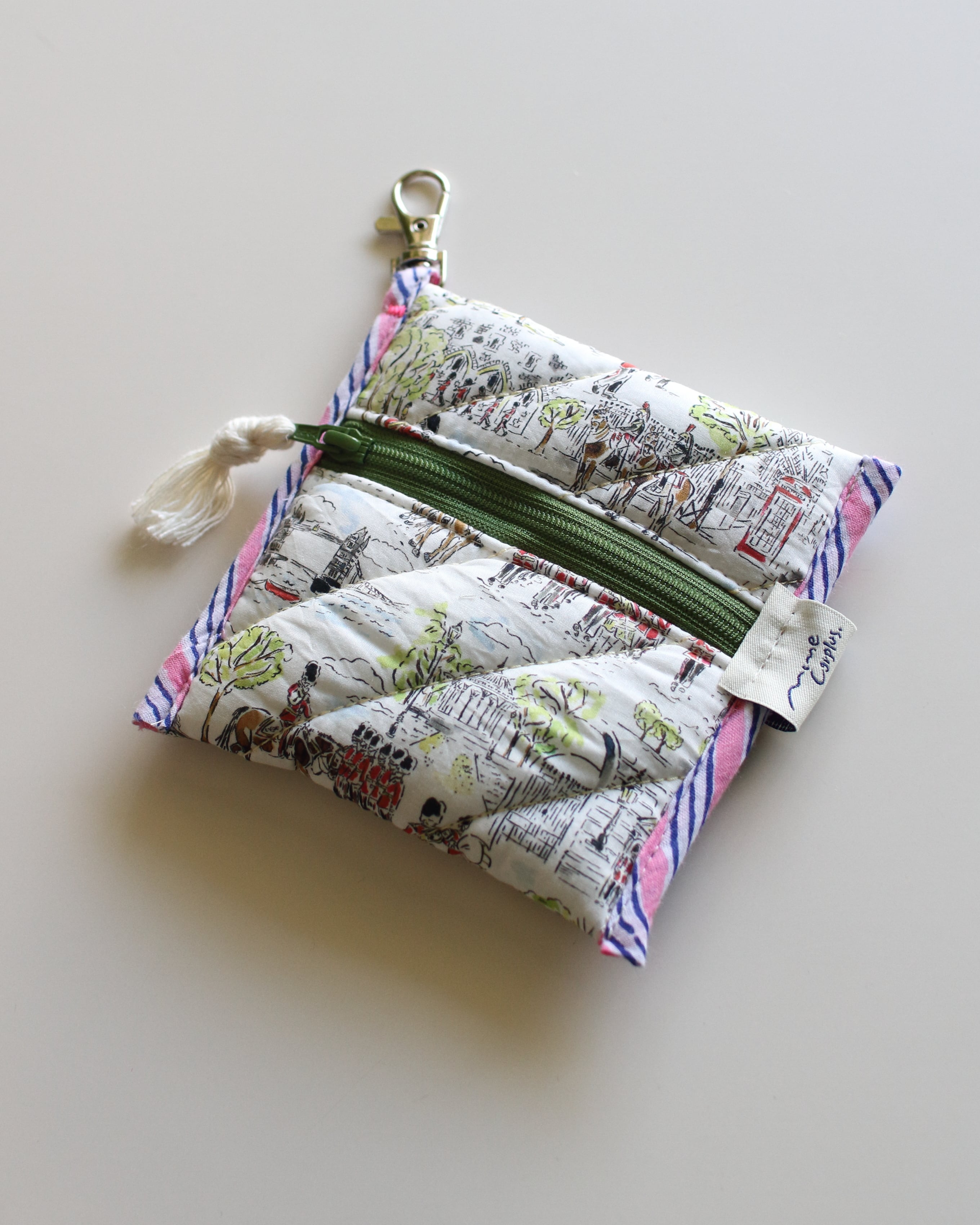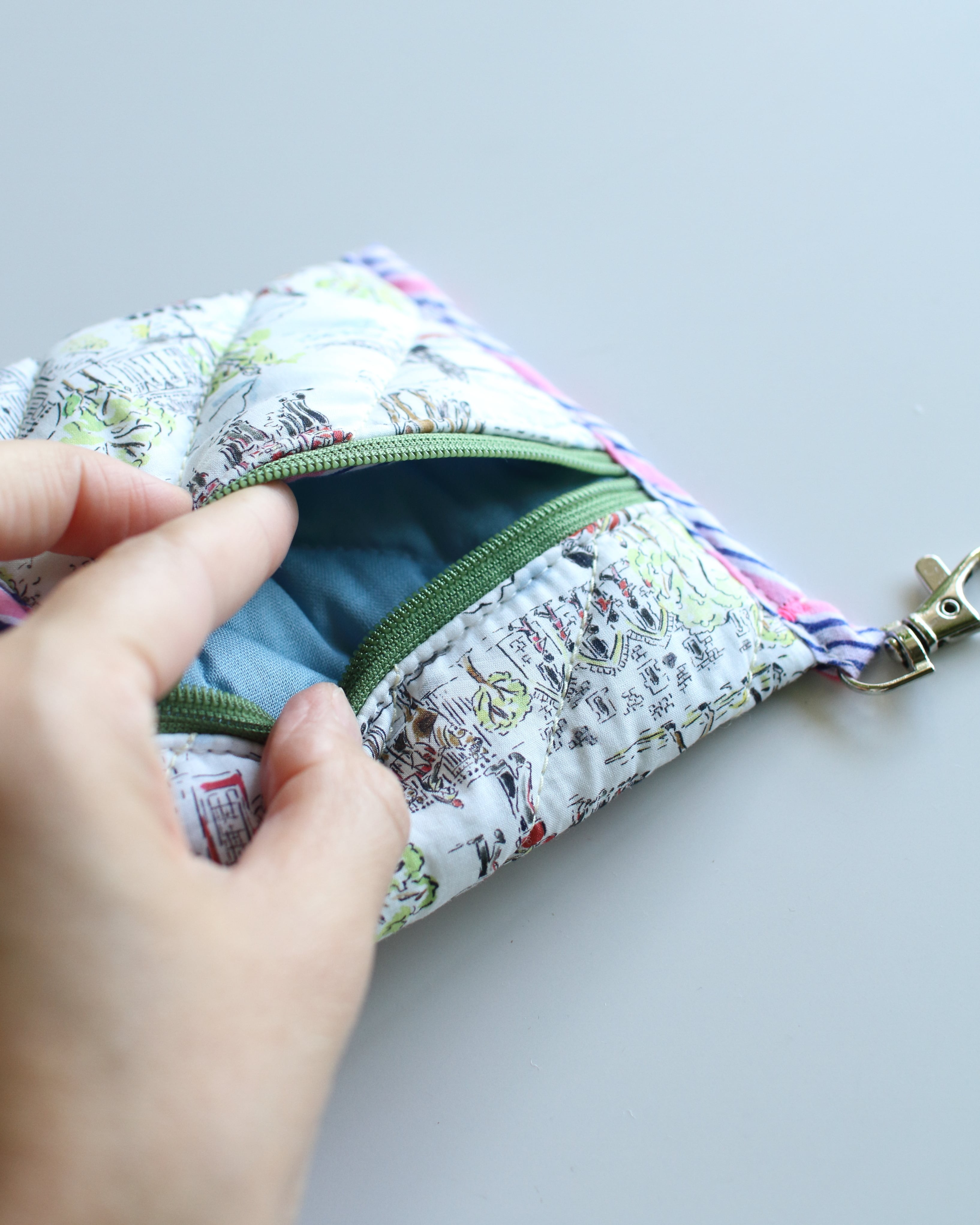 オリジナルで厚みのあるキルティングに仕立てたミニポーチ。