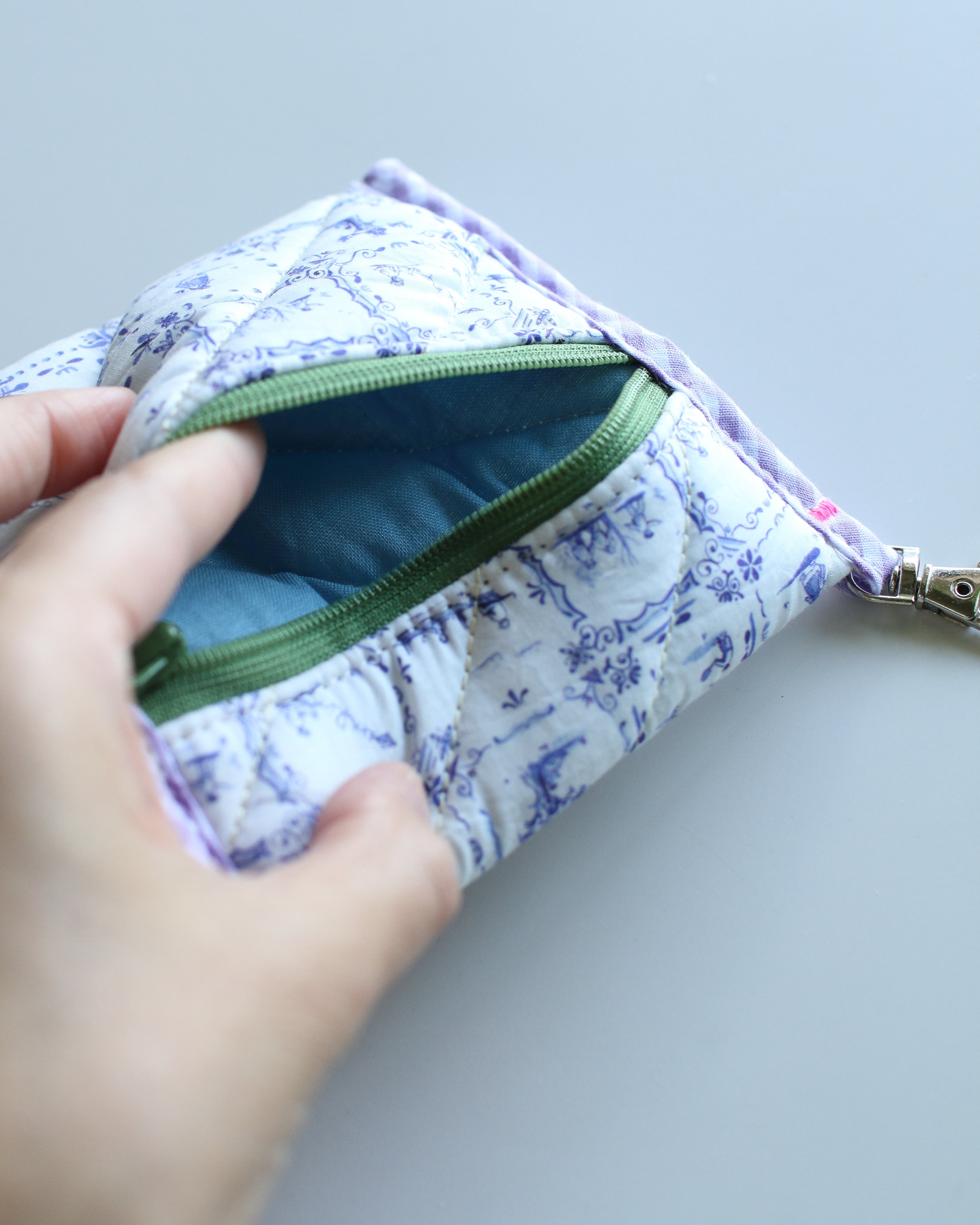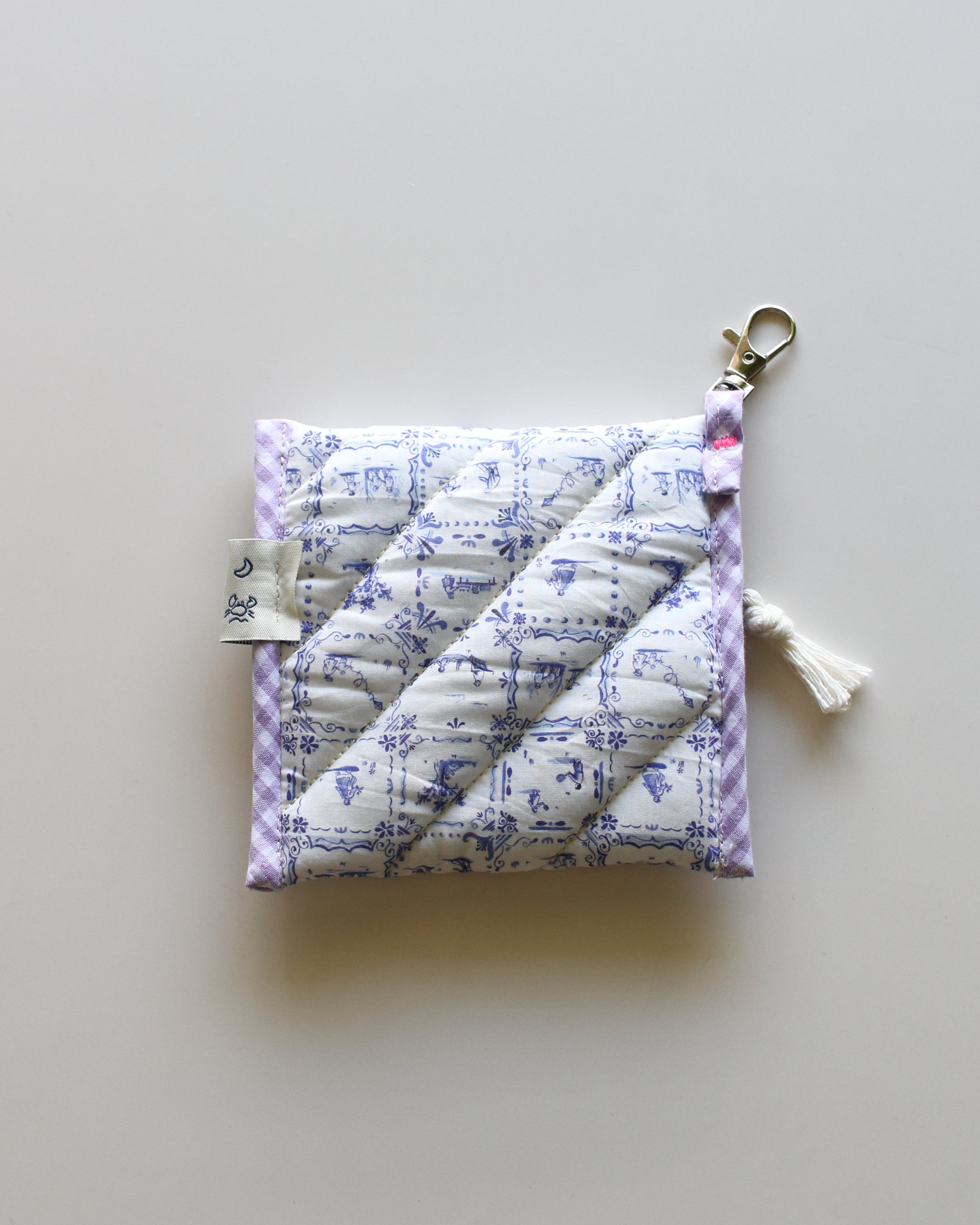 オリジナルで厚みのあるキルティングに仕立てたミニポーチ。