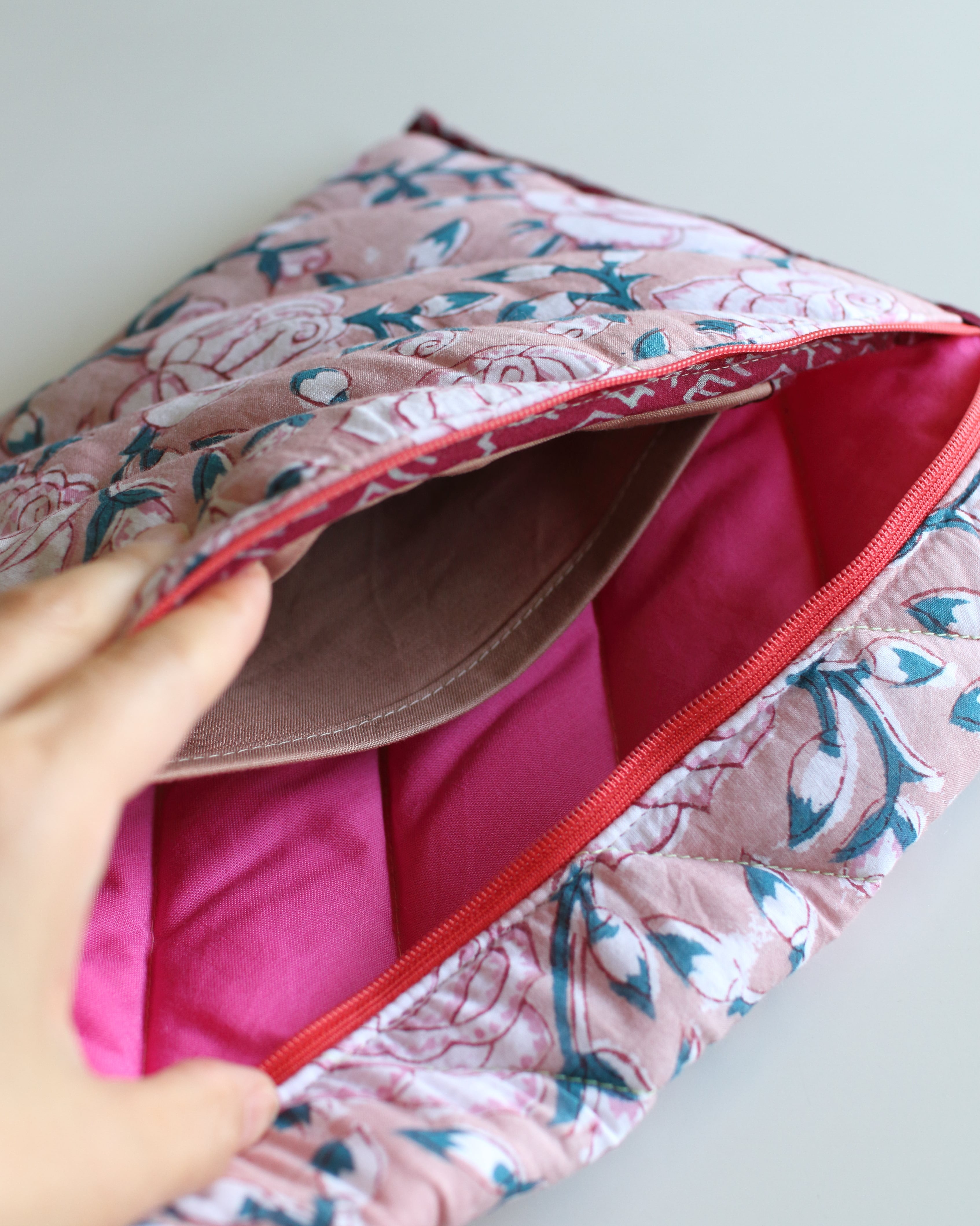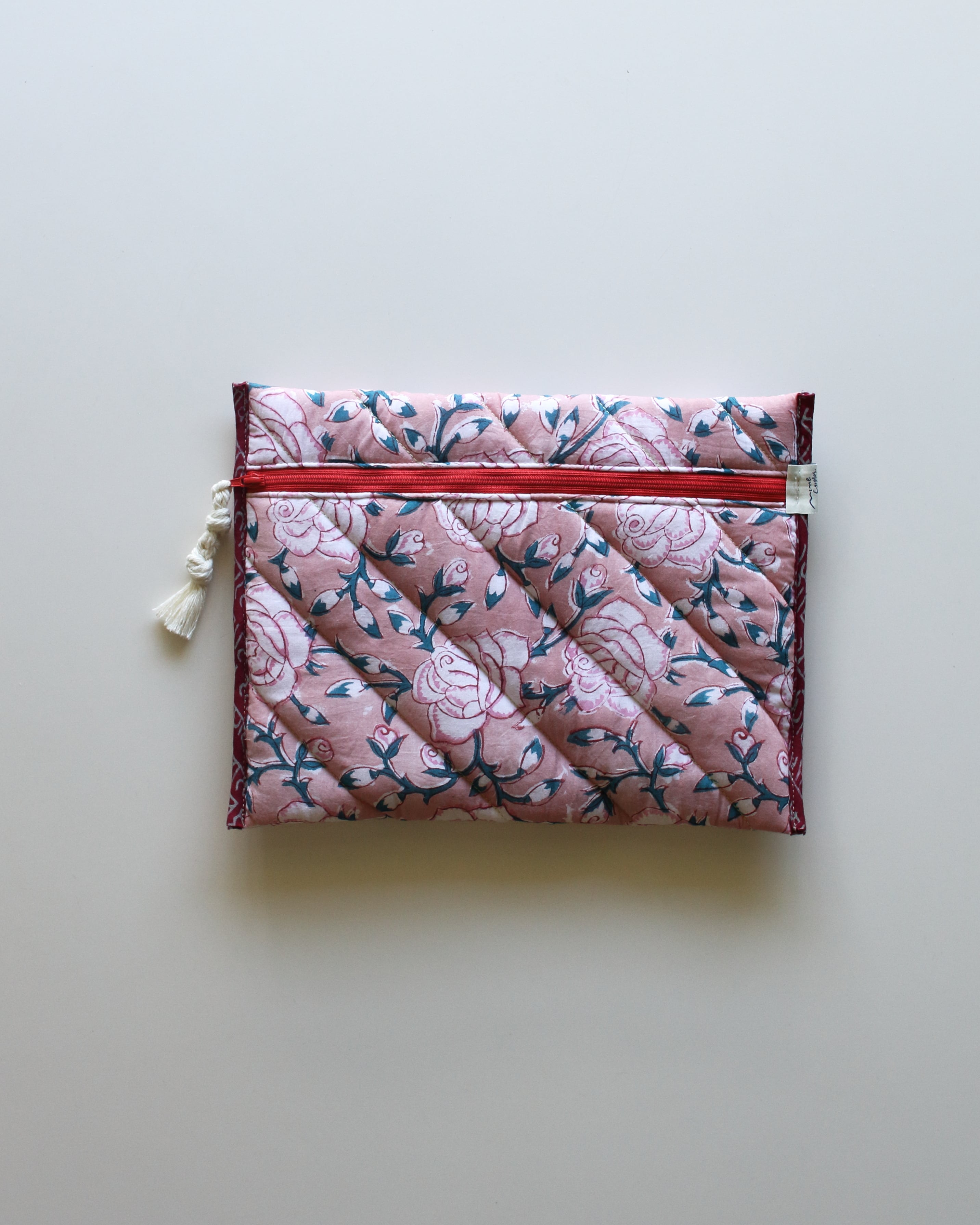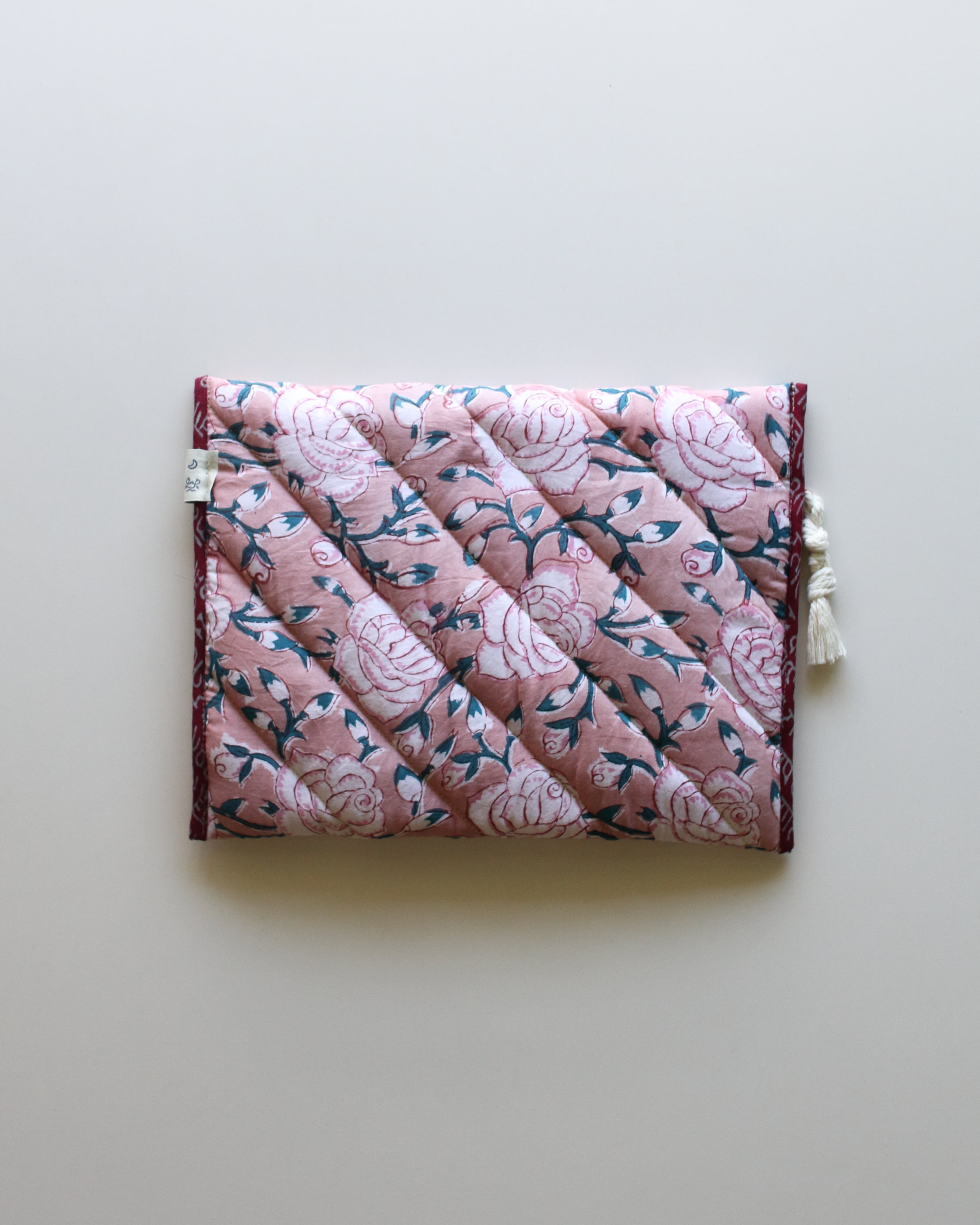 オリジナルで厚みのあるキルティングに仕立てたタブレットスリーブ。