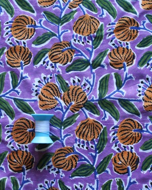 ハンドブロックプリントはインドの伝統的な技法で、手彫りの木版をひとつひとつ布に押しあてて制作していく、あたたかみ溢れるコットンファブリックです。