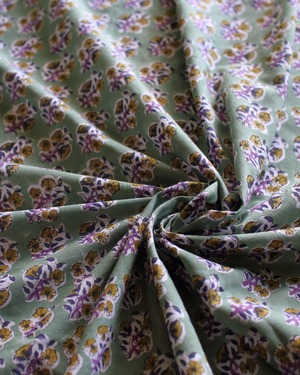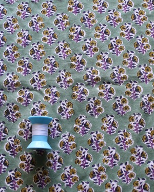 ハンドブロックプリントはインドの伝統的な技法で、手彫りの木版をひとつひとつ布に押しあてて制作していく、あたたかみ溢れるコットンファブリックです。
