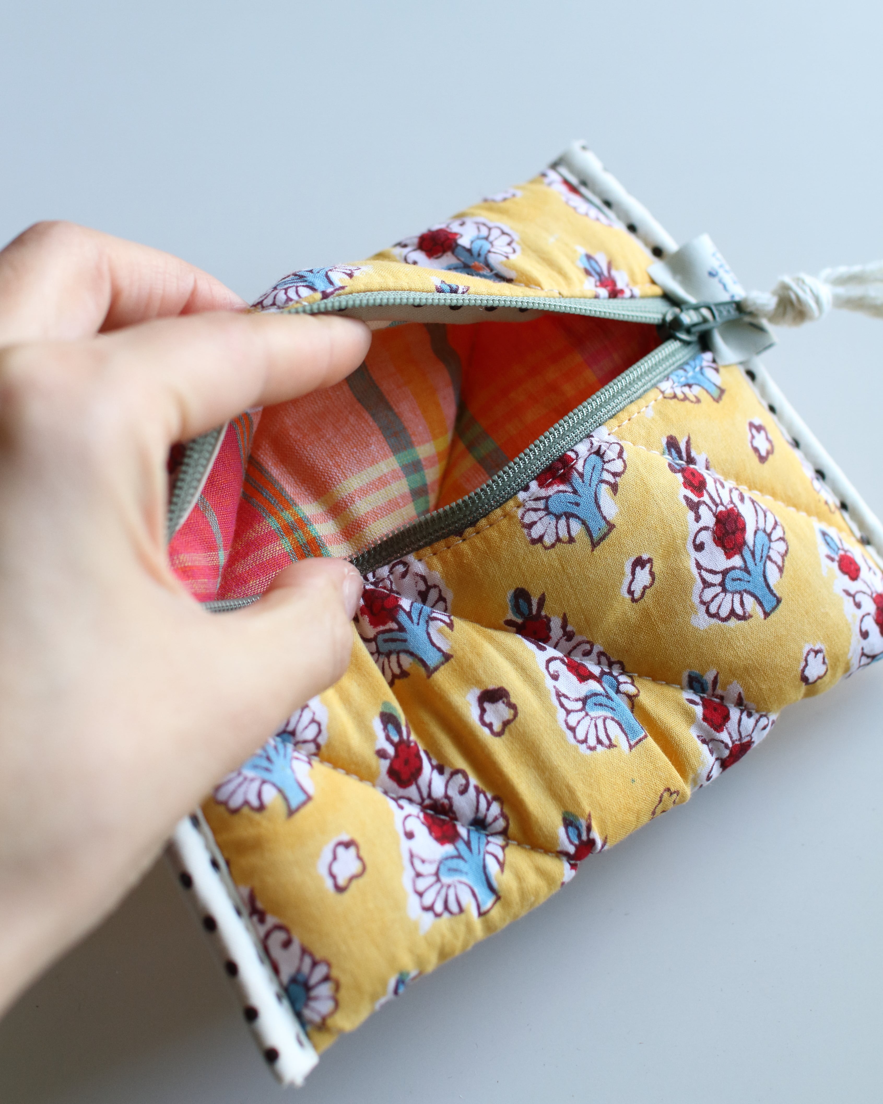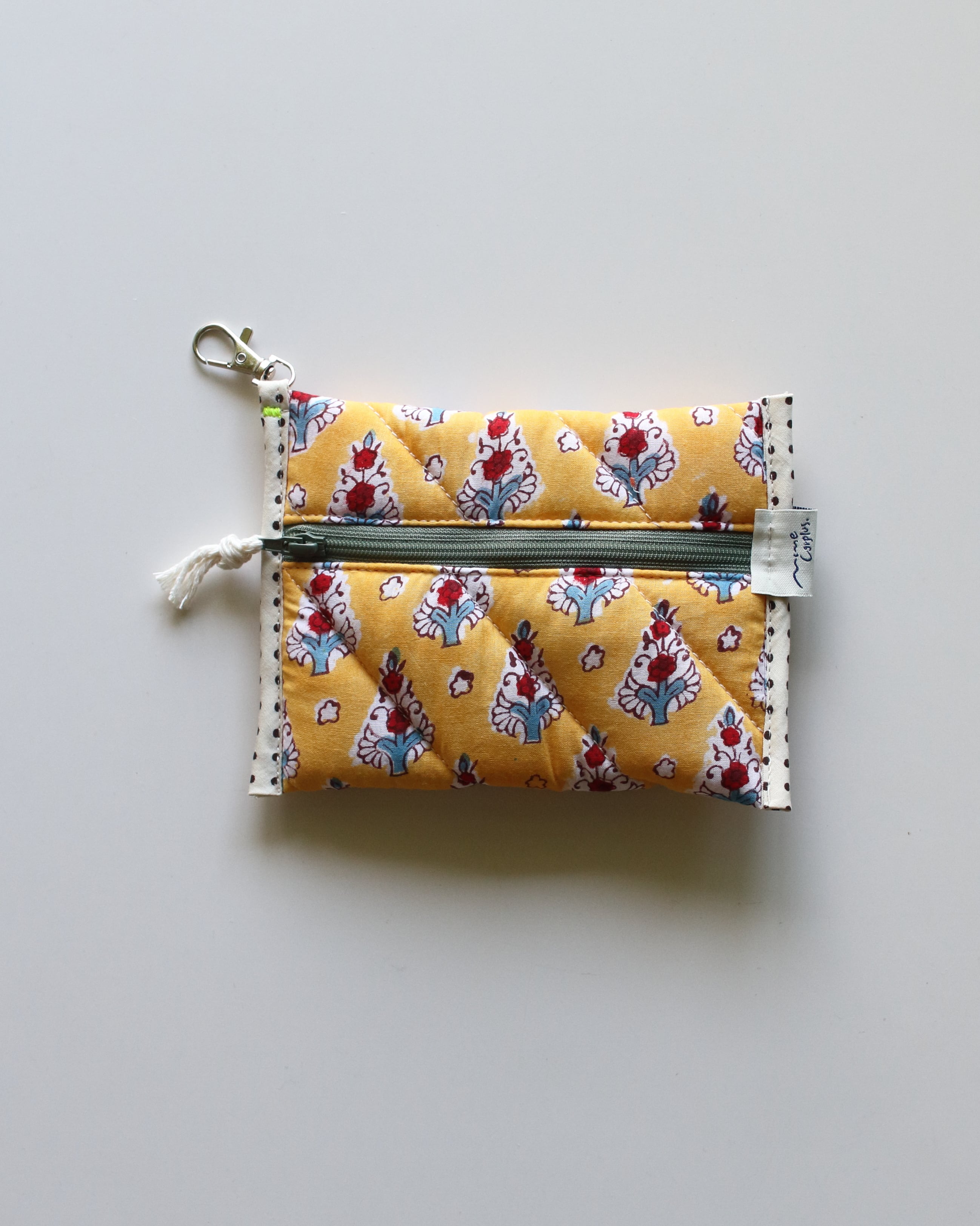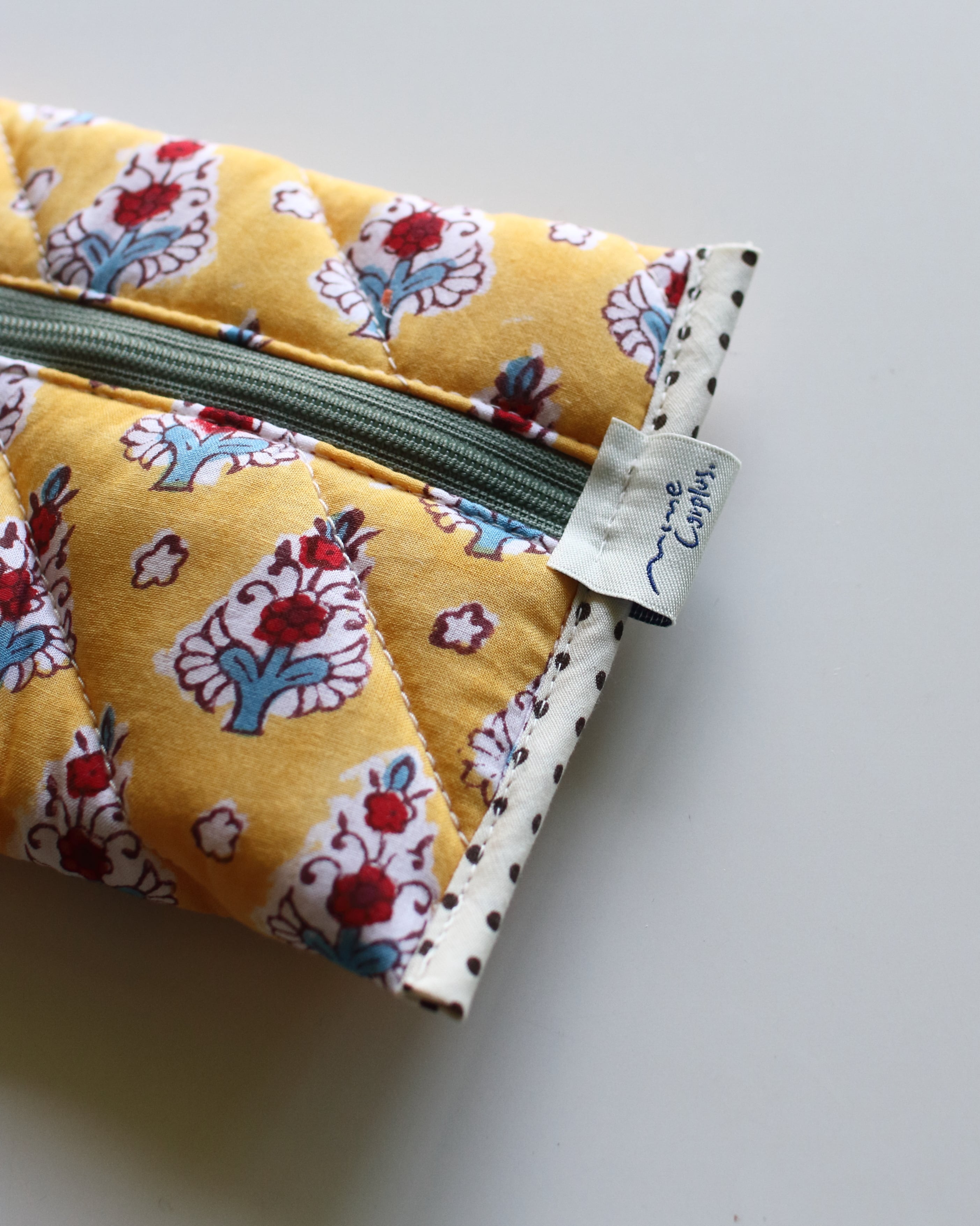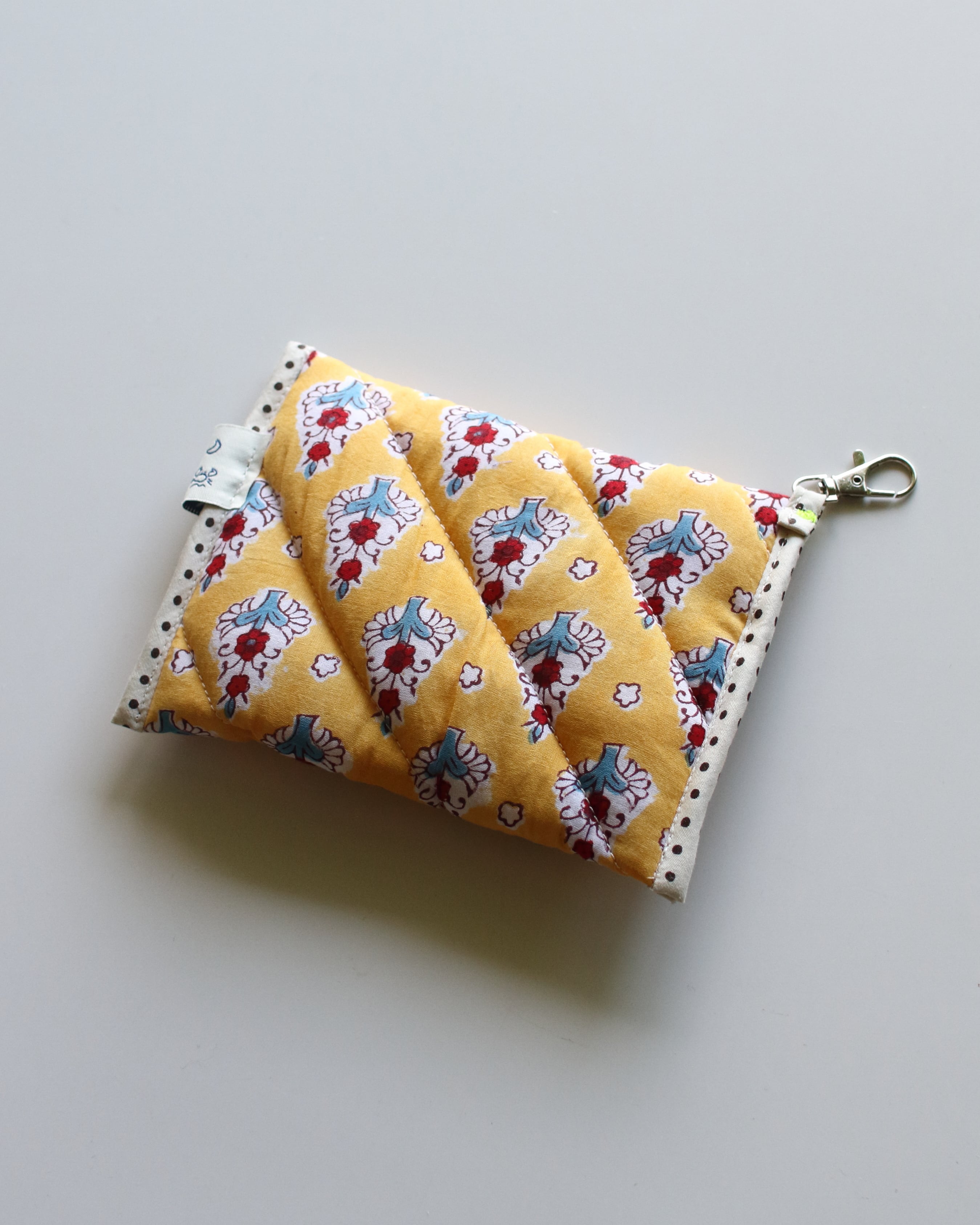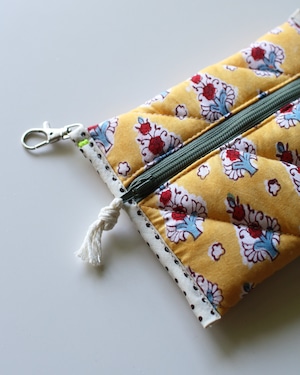 オリジナルで厚みのあるキルティングに仕立てたコンパクトポーチ。