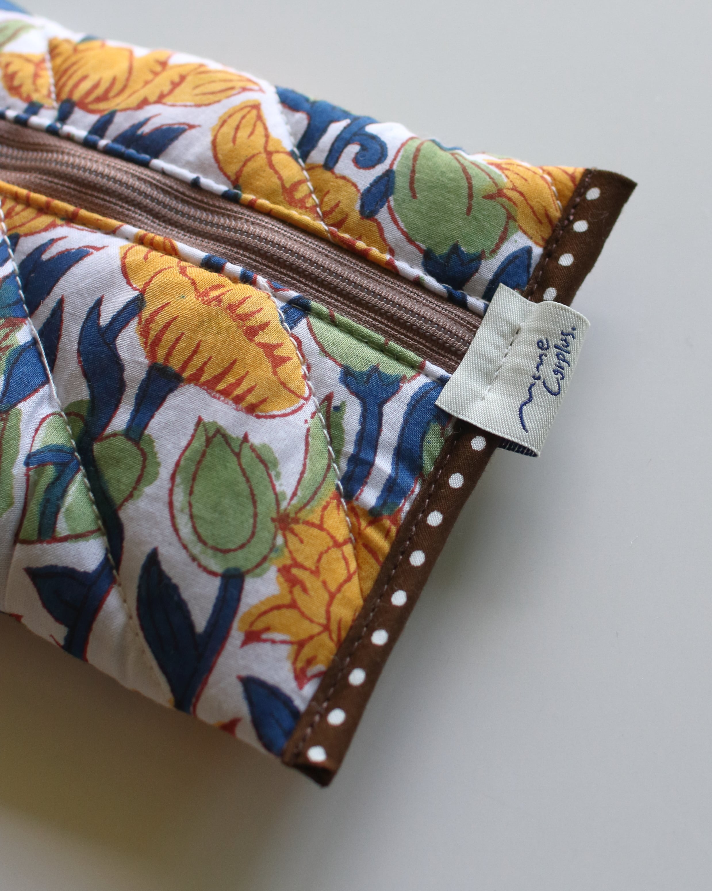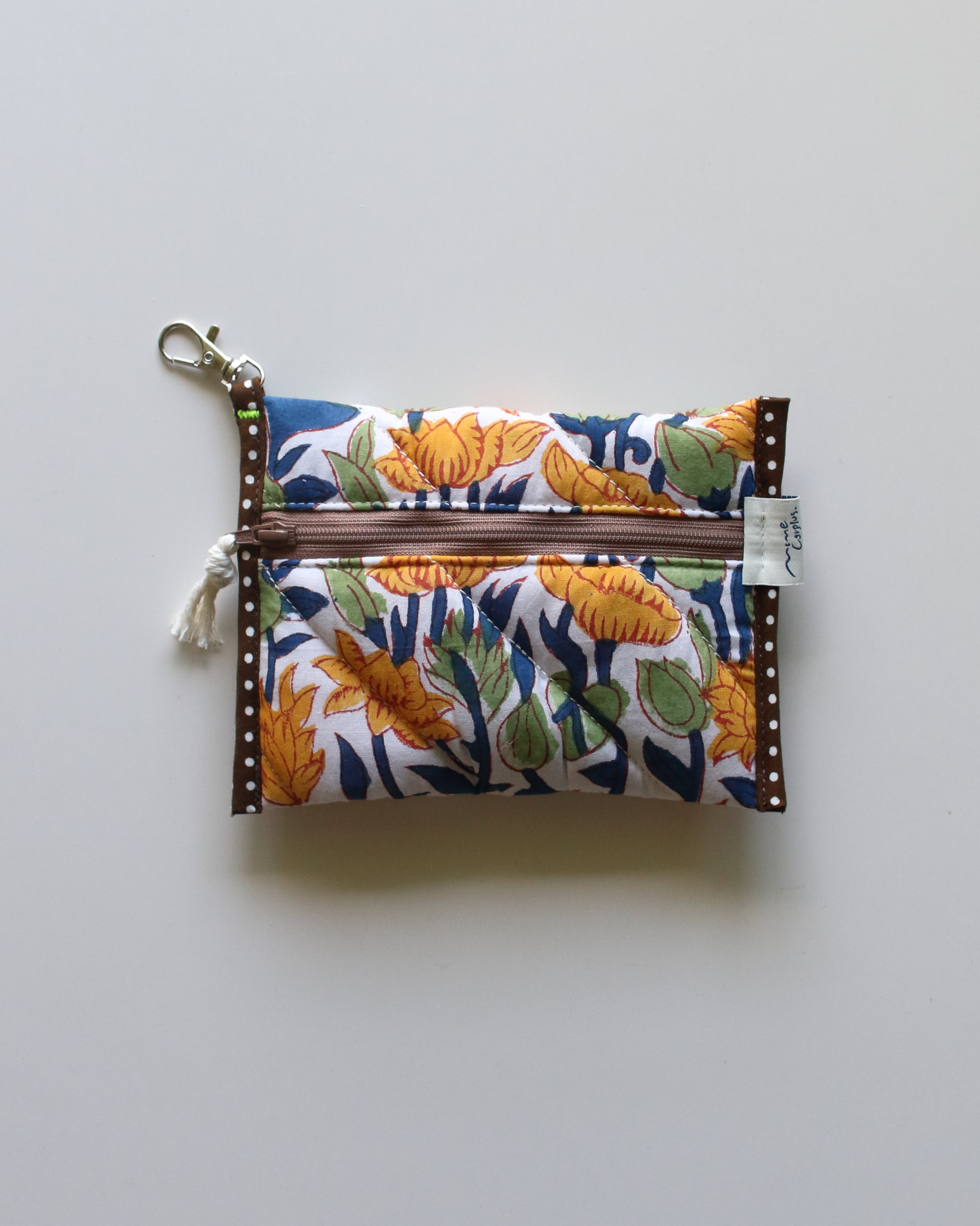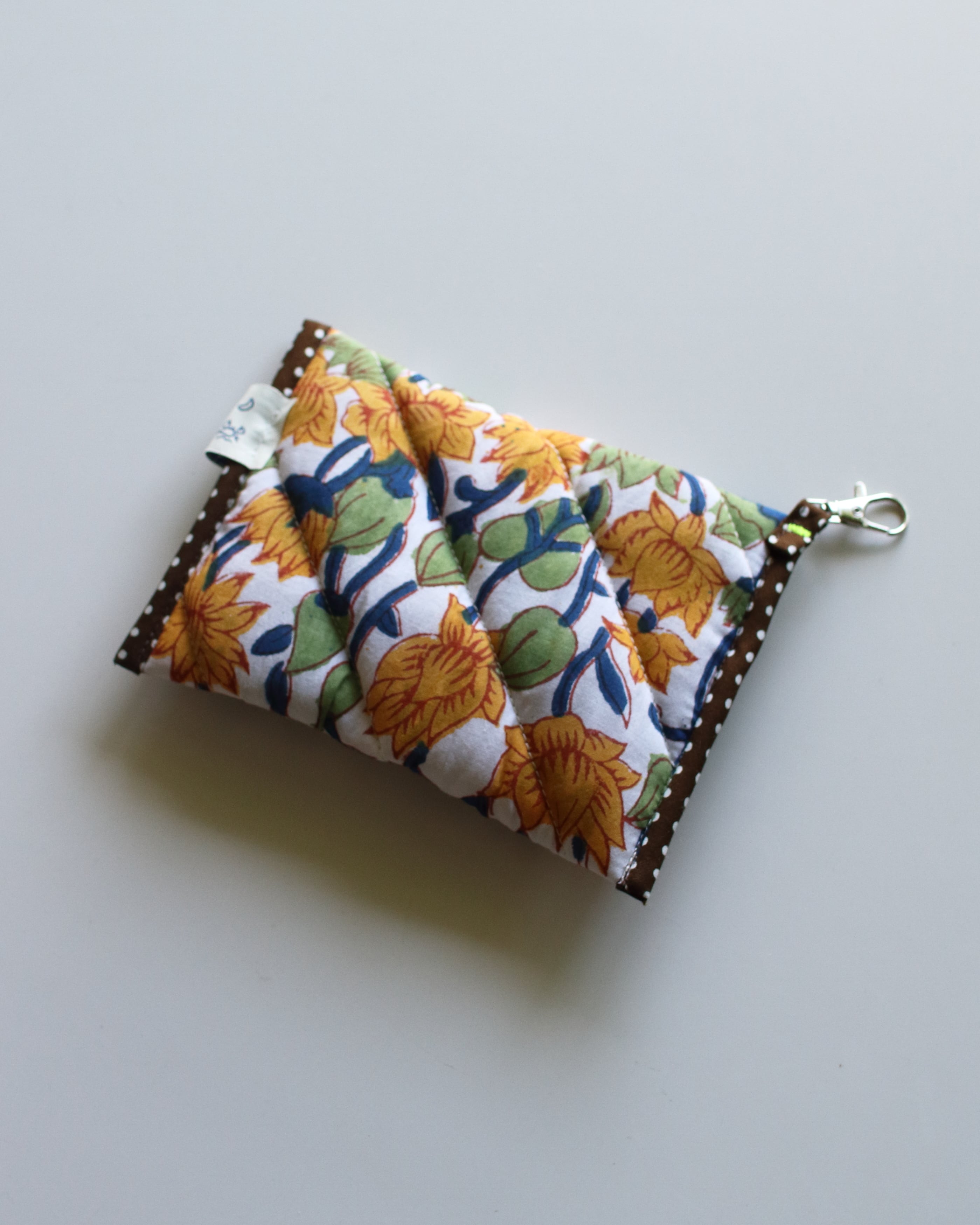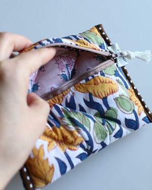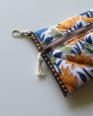 オリジナルで厚みのあるキルティングに仕立てたコンパクトポーチ。