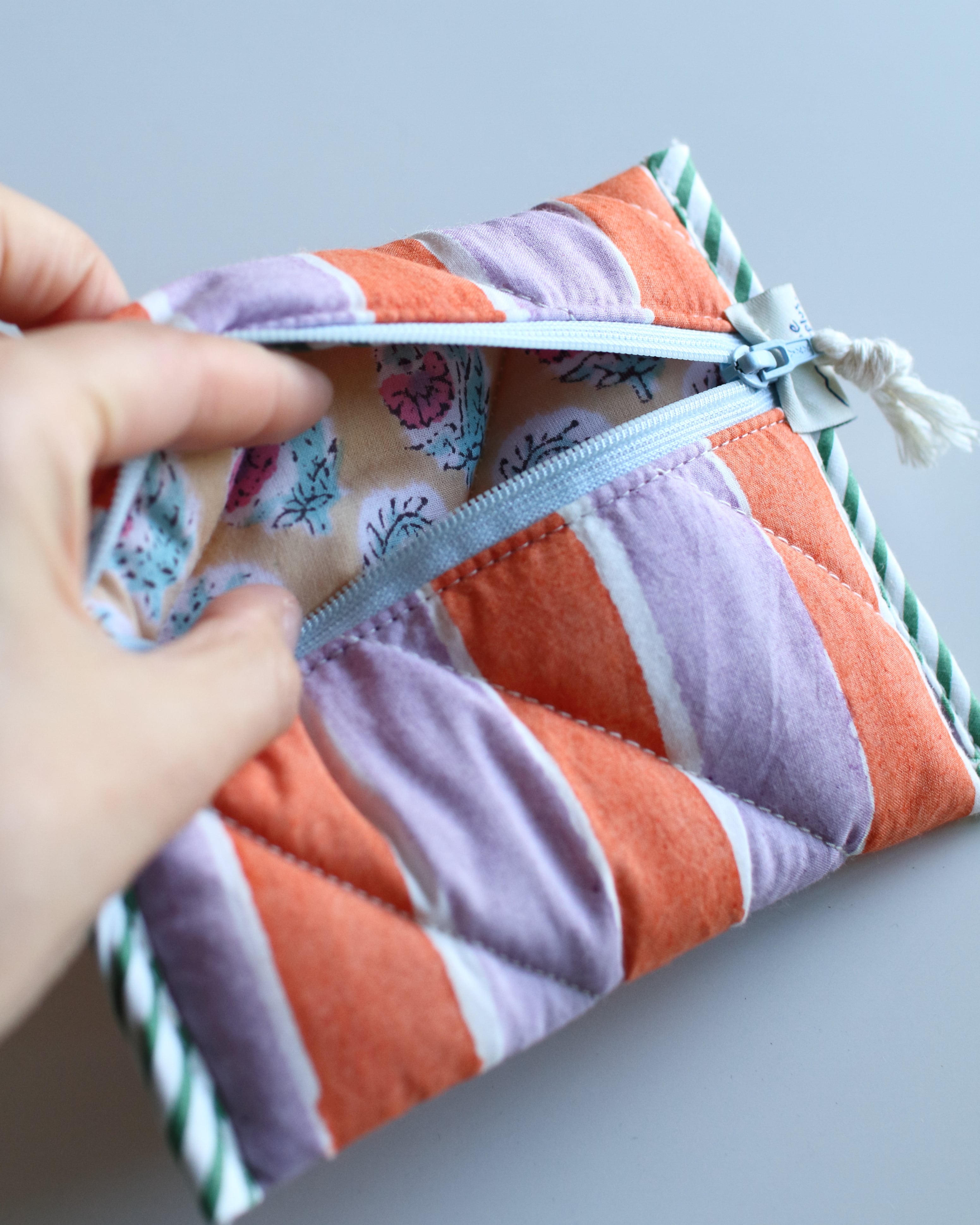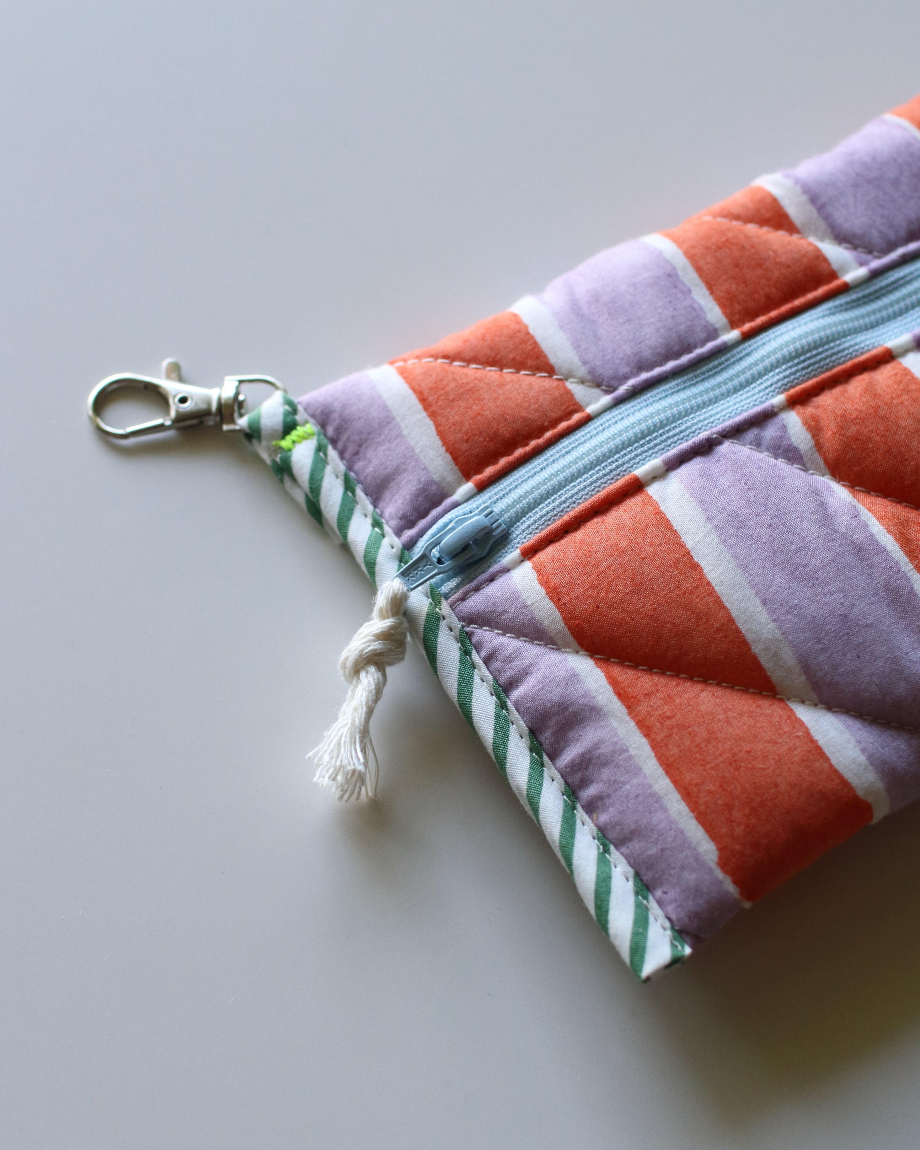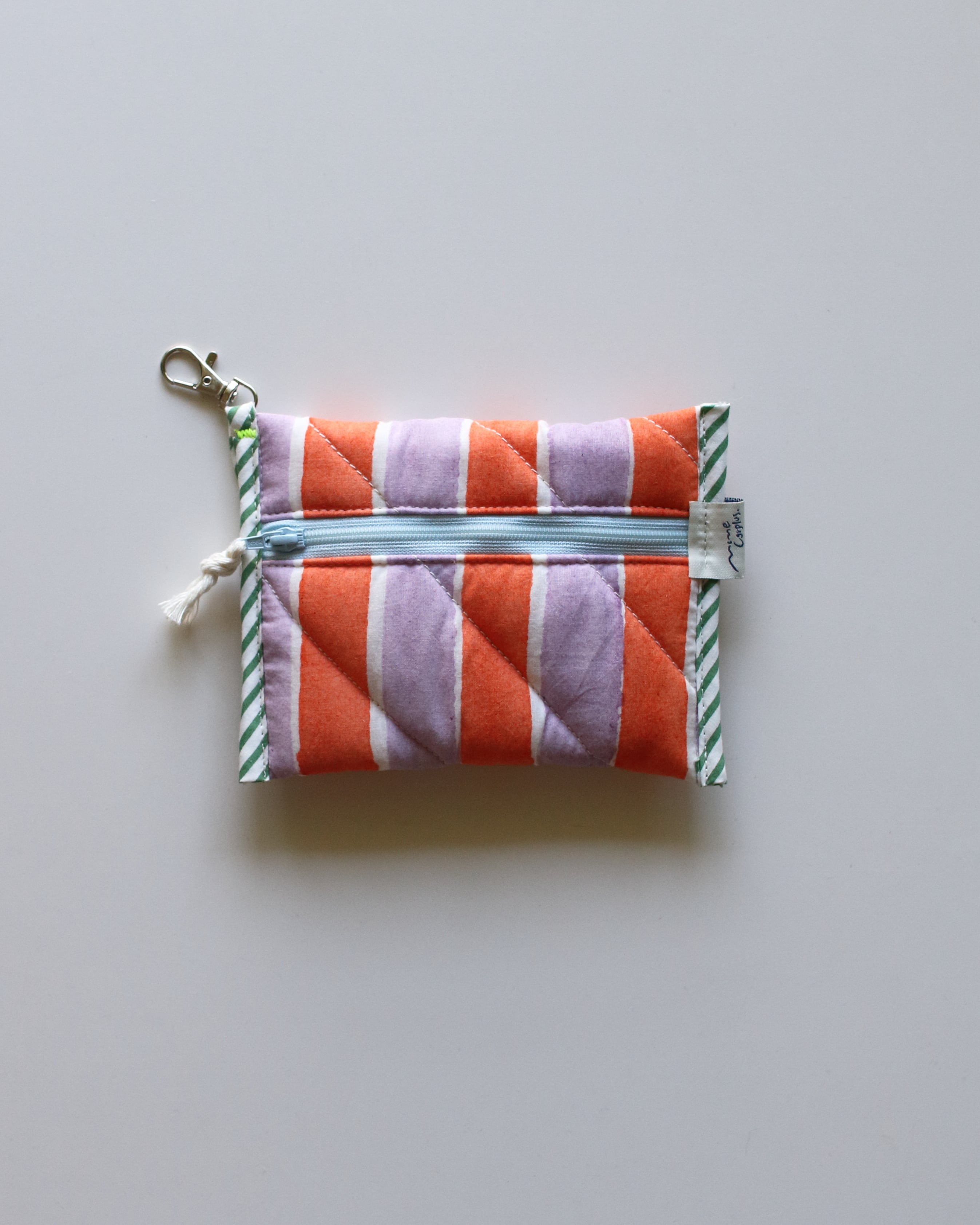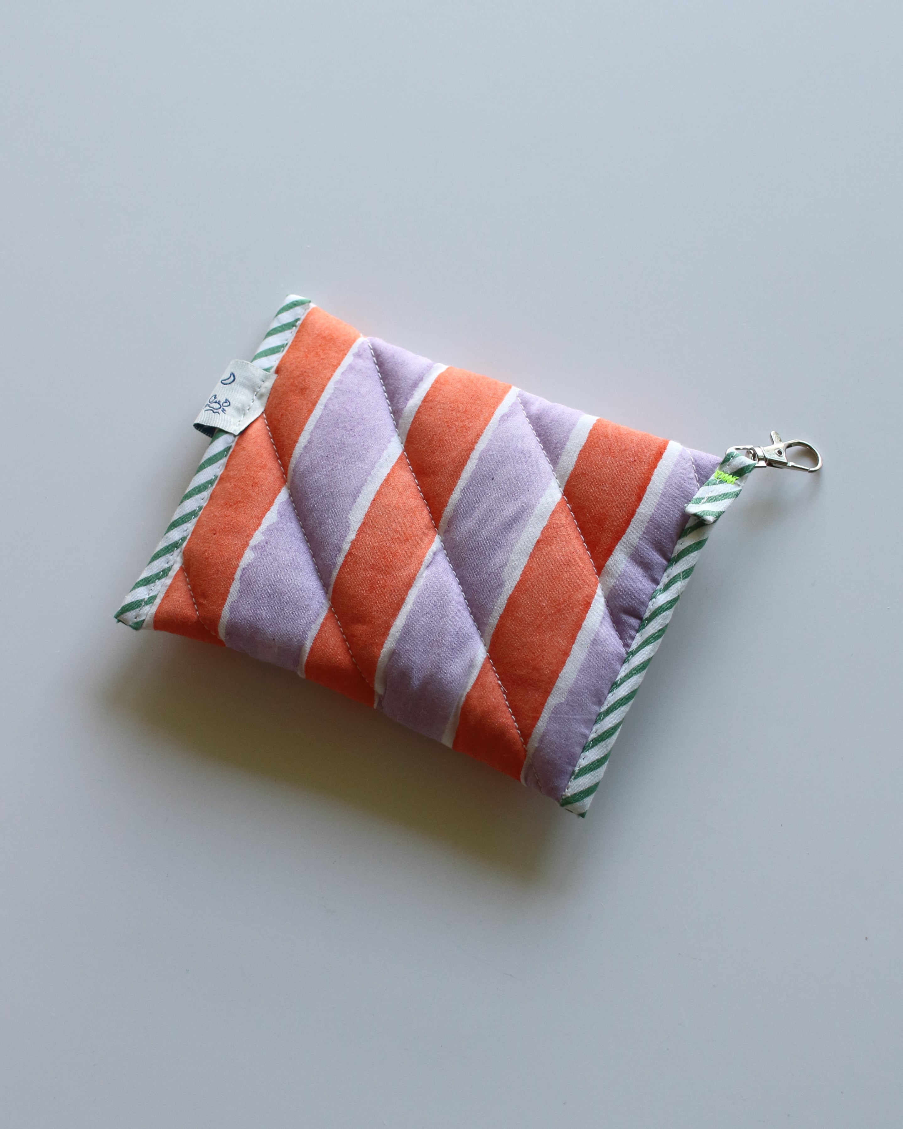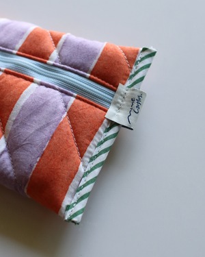 オリジナルで厚みのあるキルティングに仕立てたコンパクトポーチ。