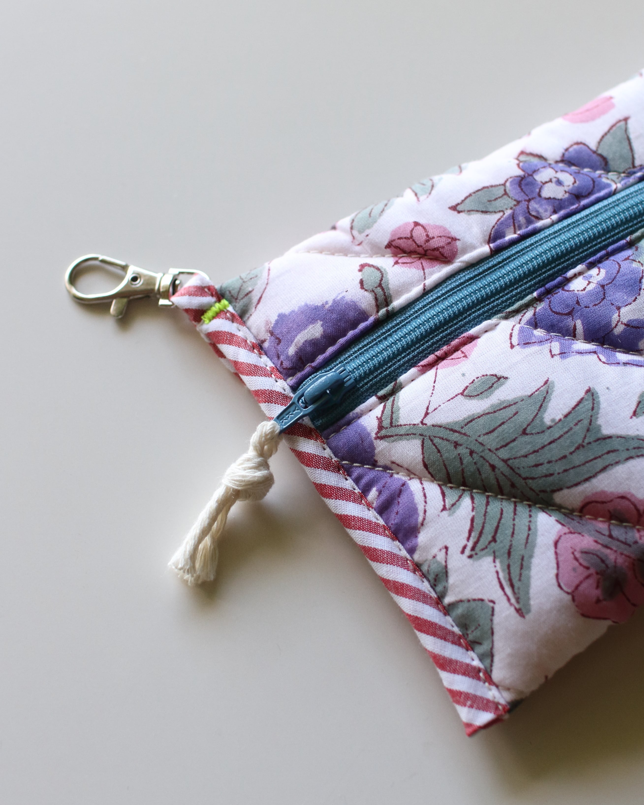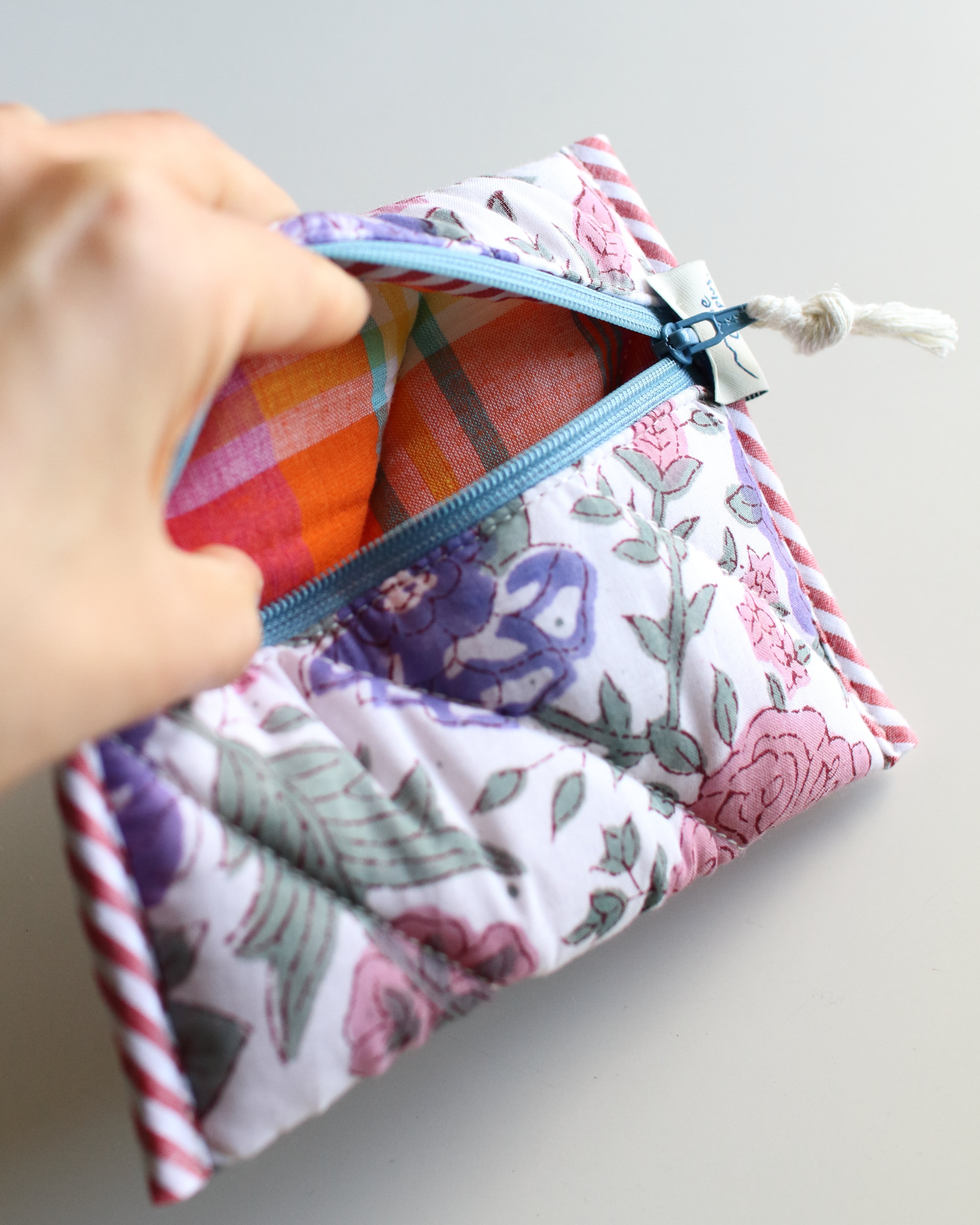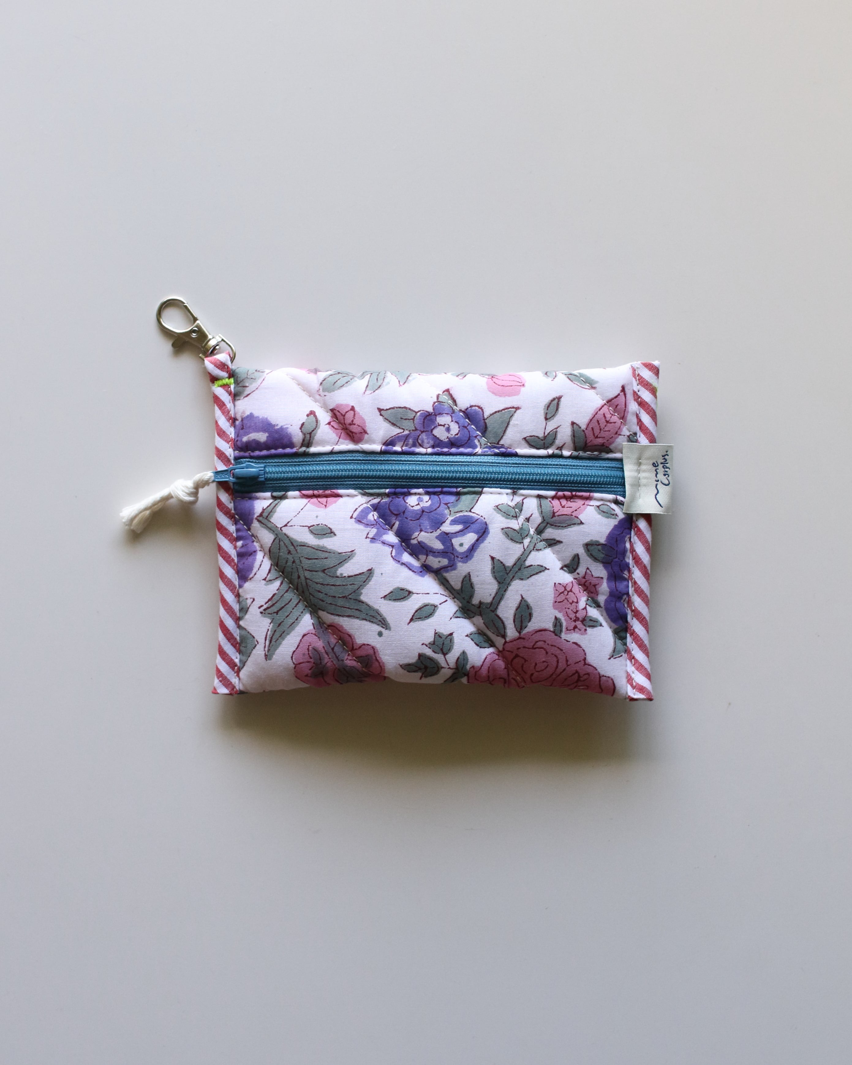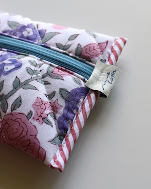 オリジナルで厚みのあるキルティングに仕立てたコンパクトポーチ。