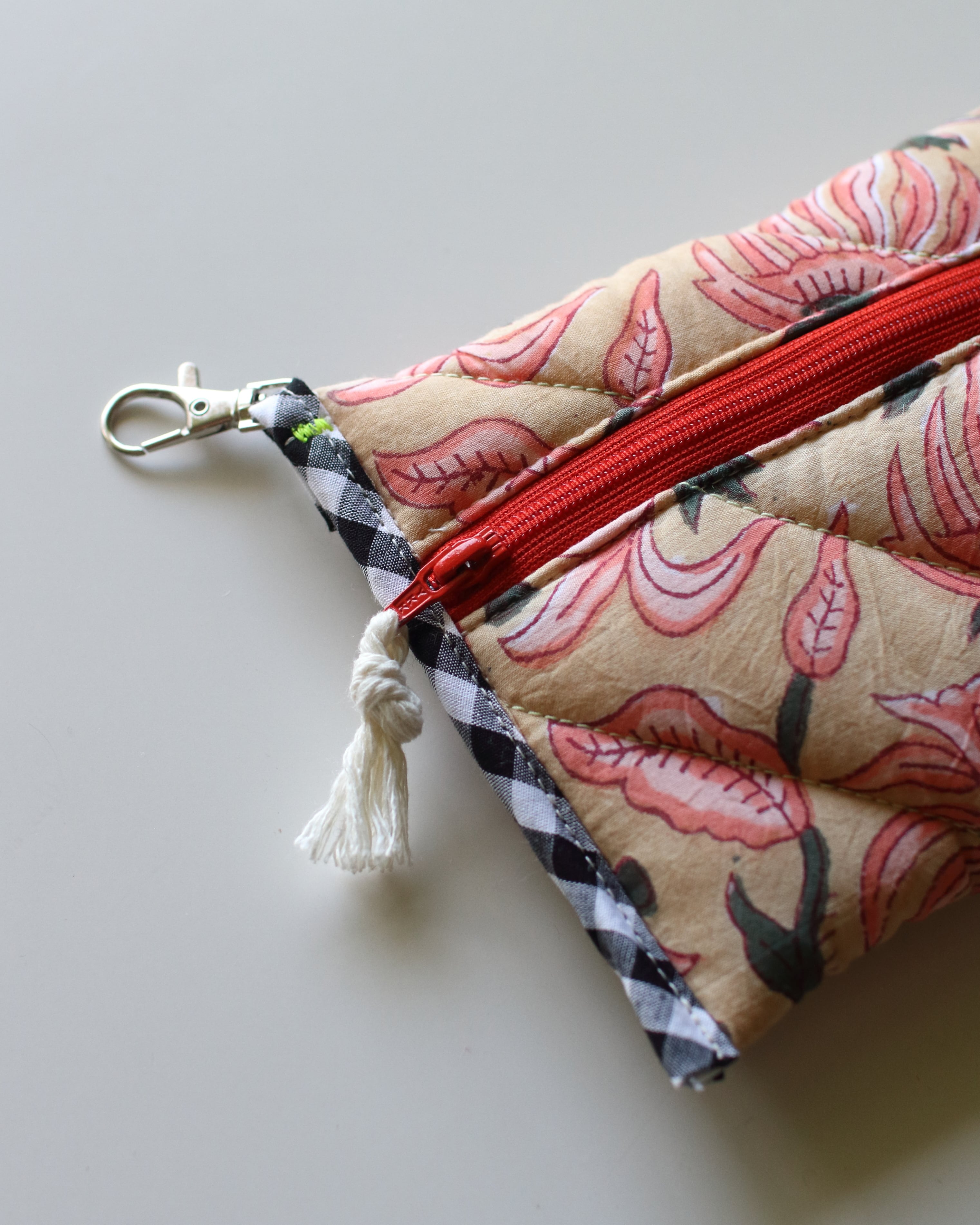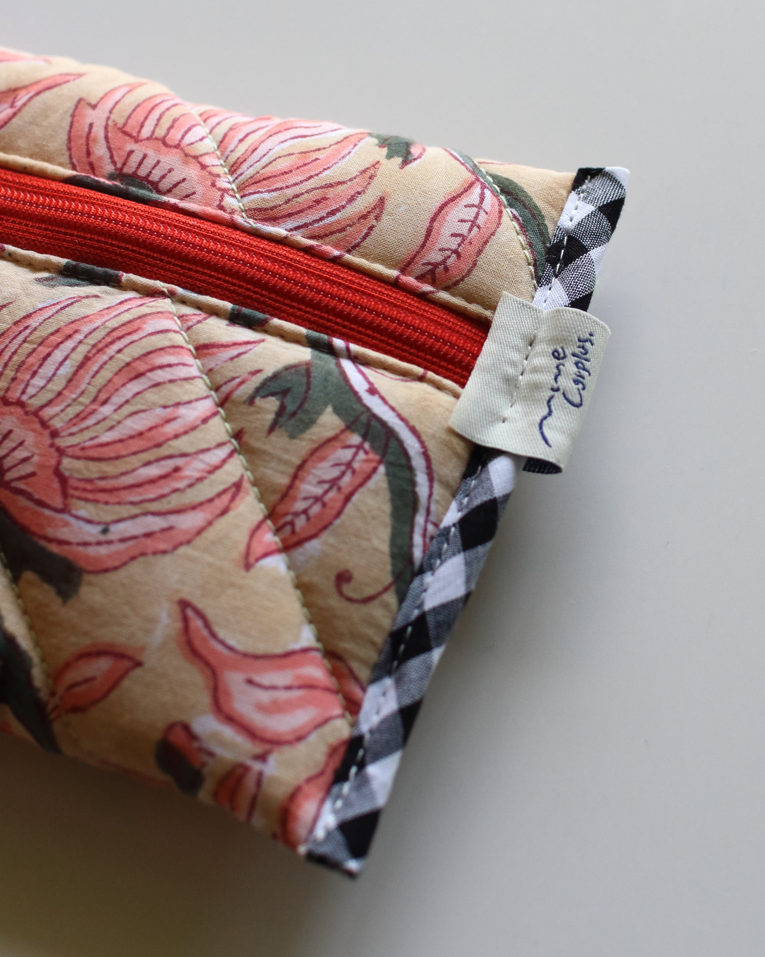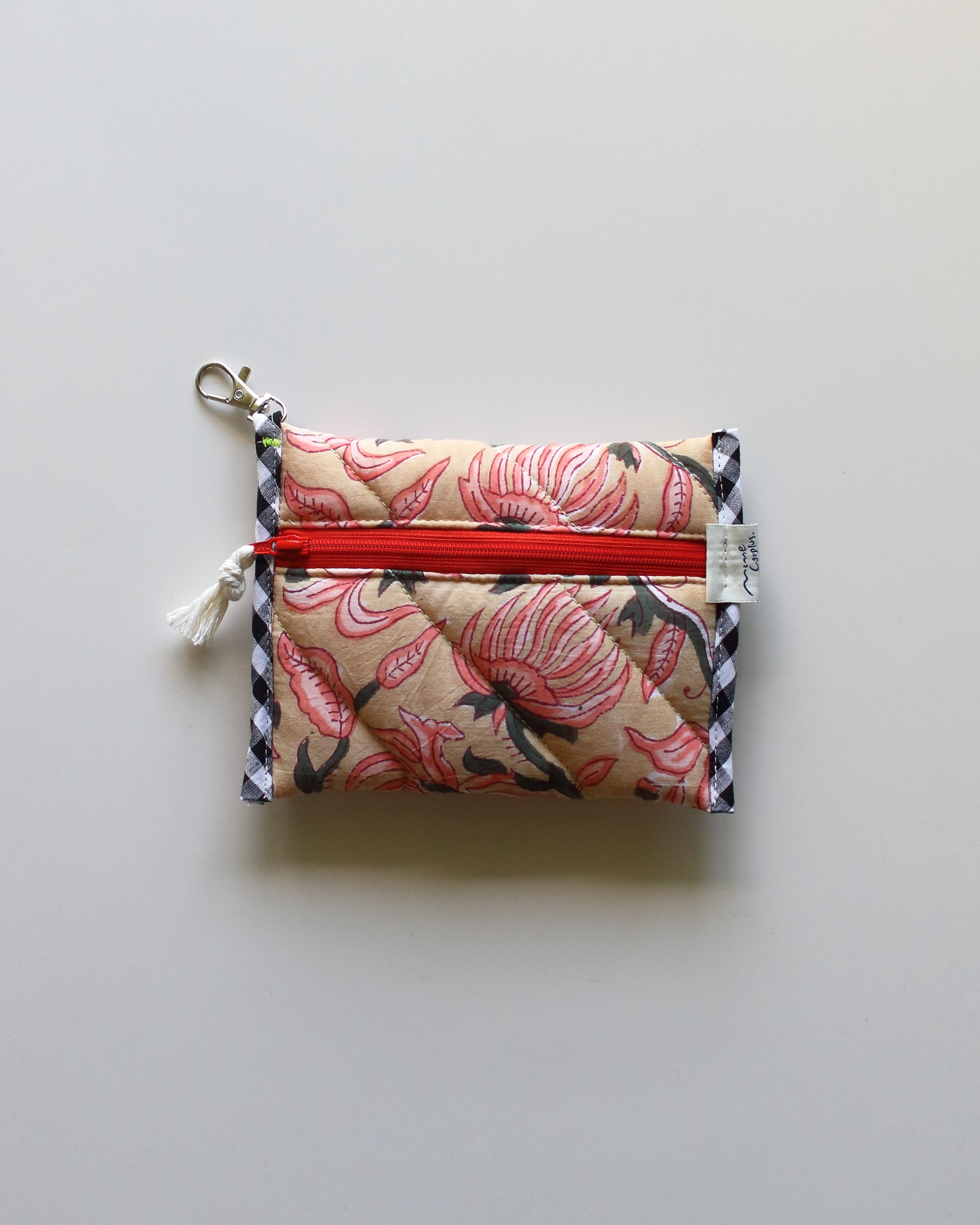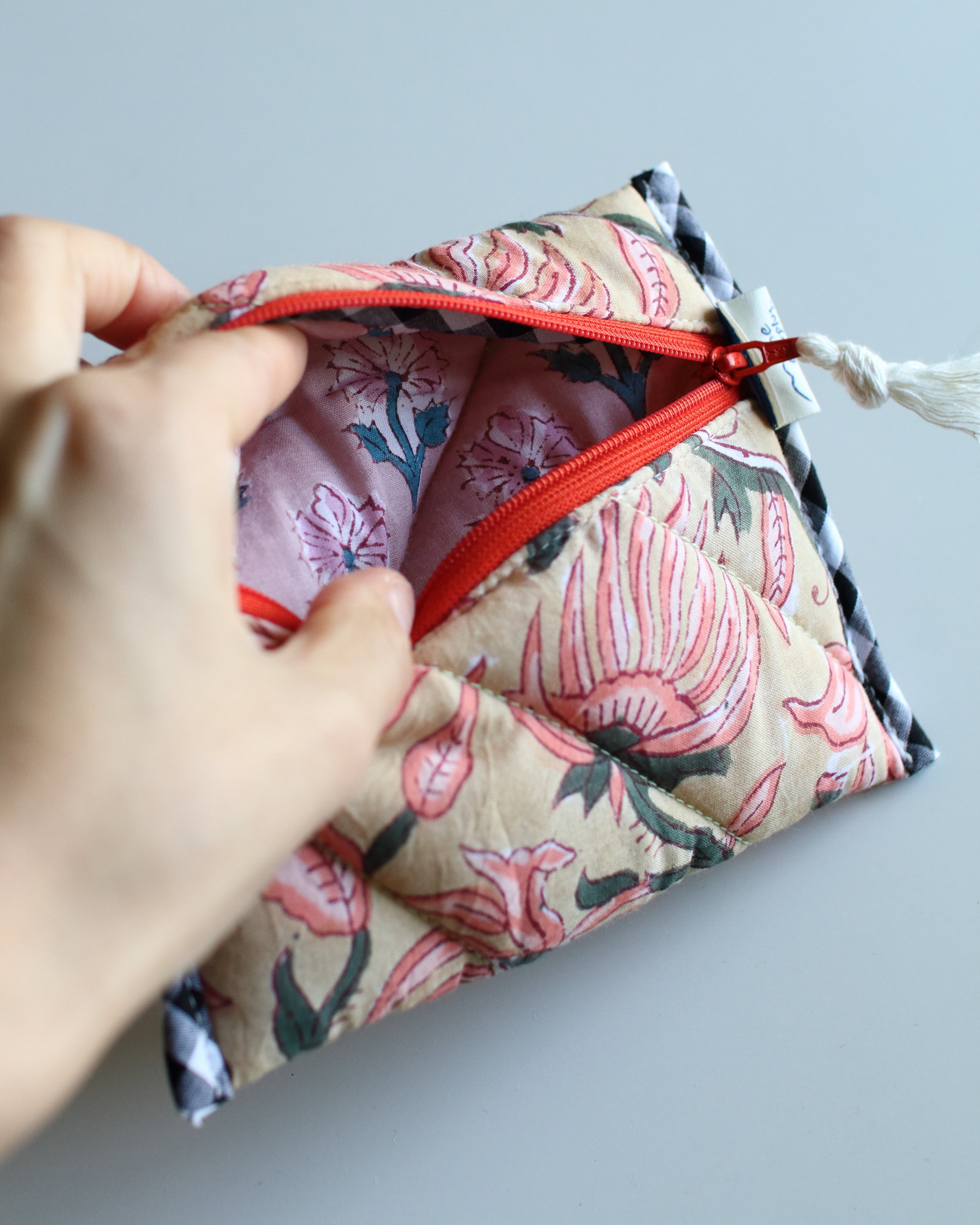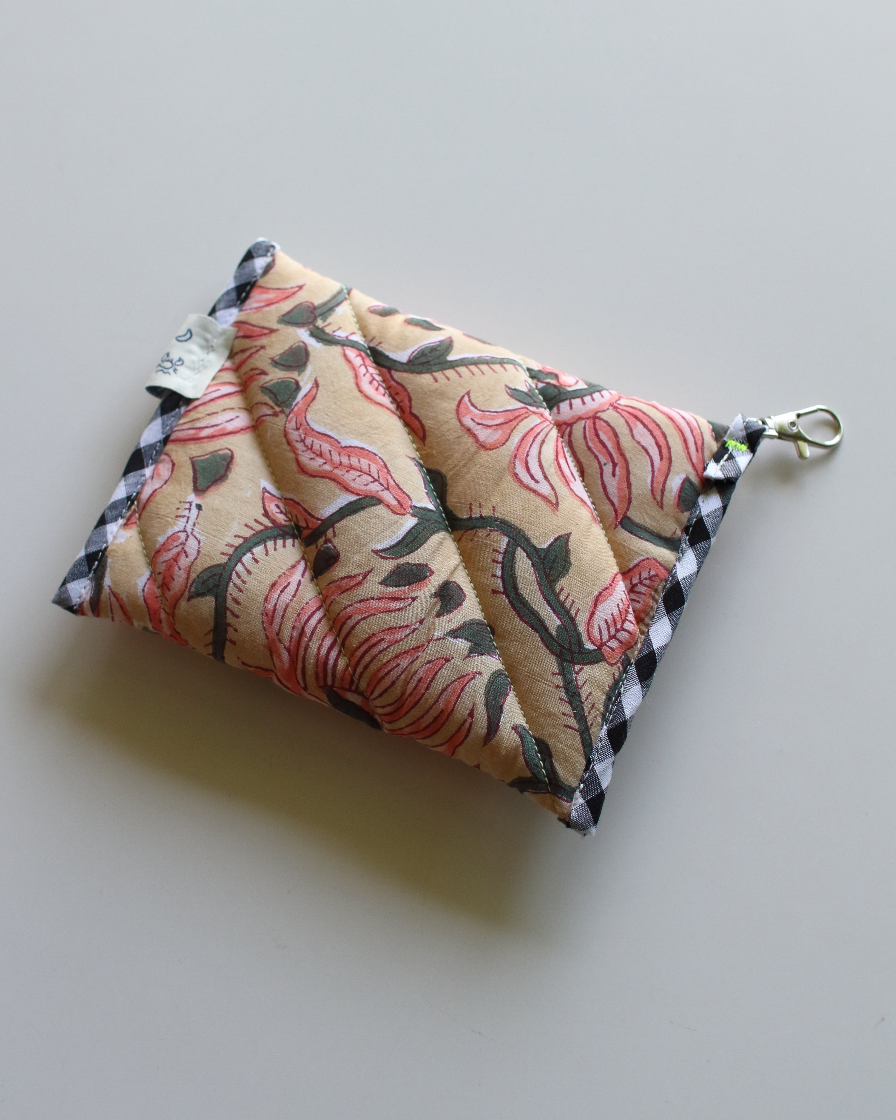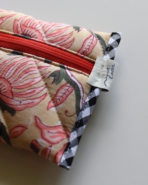 オリジナルで厚みのあるキルティングに仕立てたコンパクトポーチ。