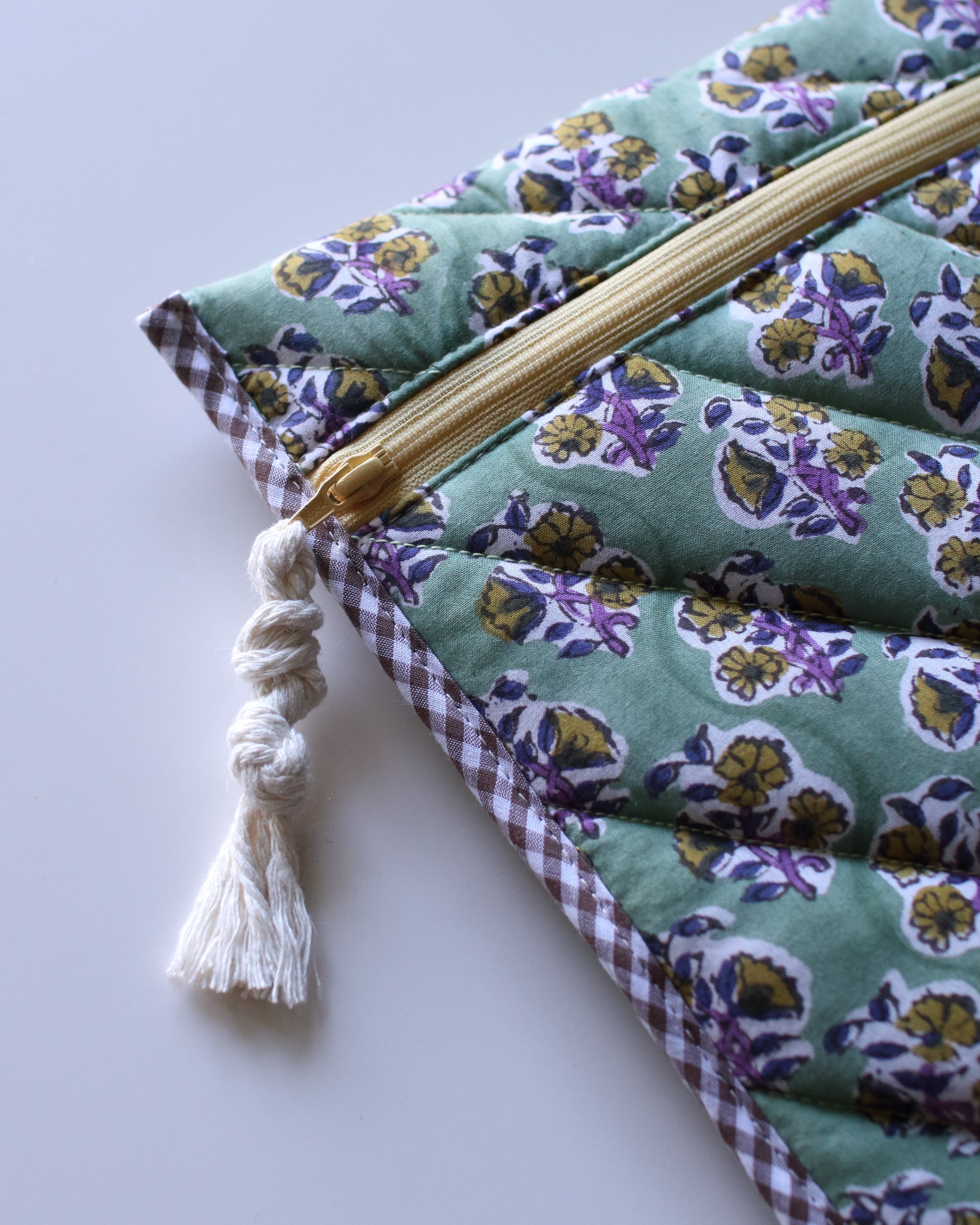 裏地にもブロックプリントの柄を配置していて、縁取りの組み合わせもひとつひとつ違っている、全て1点ずつの制作となります。