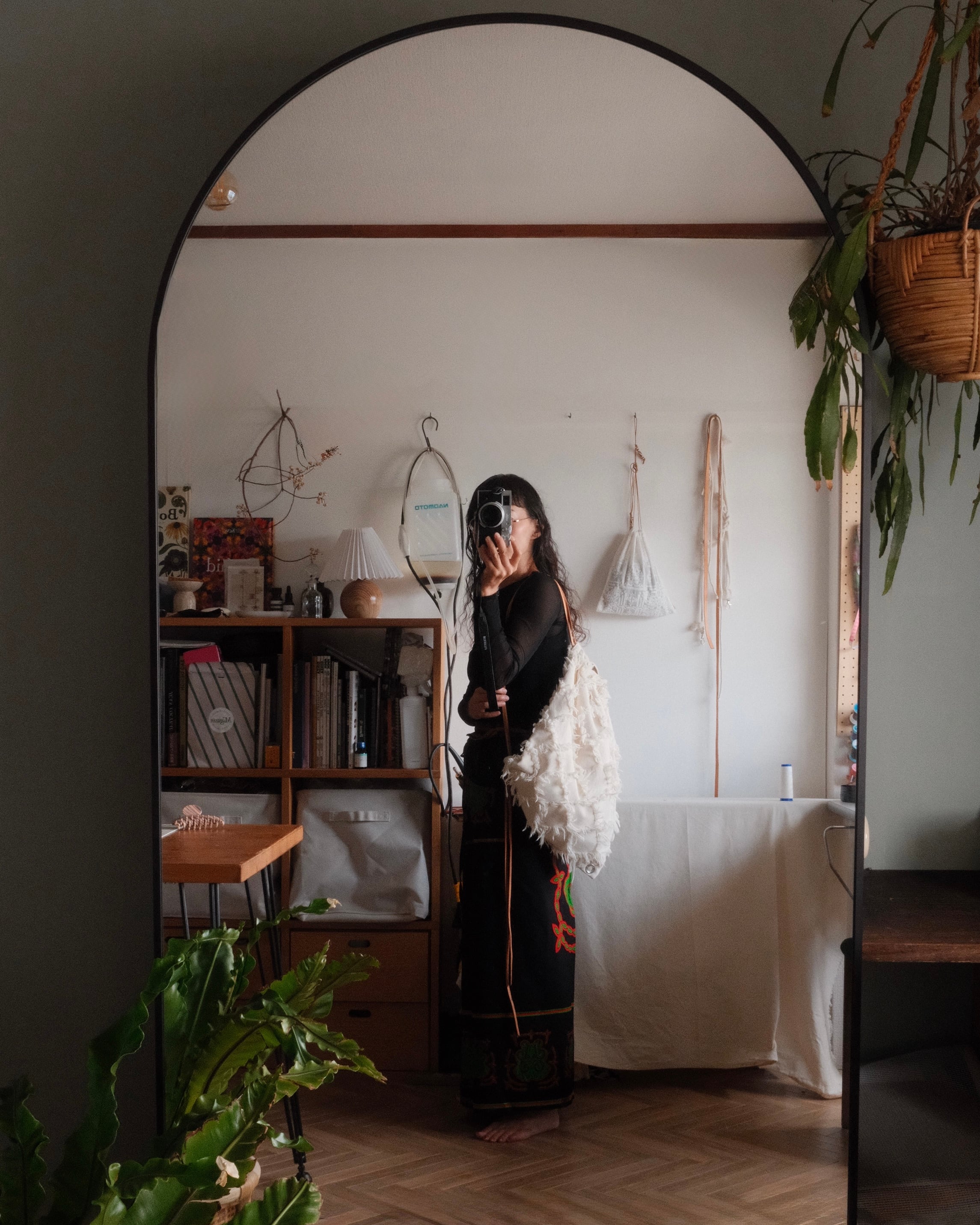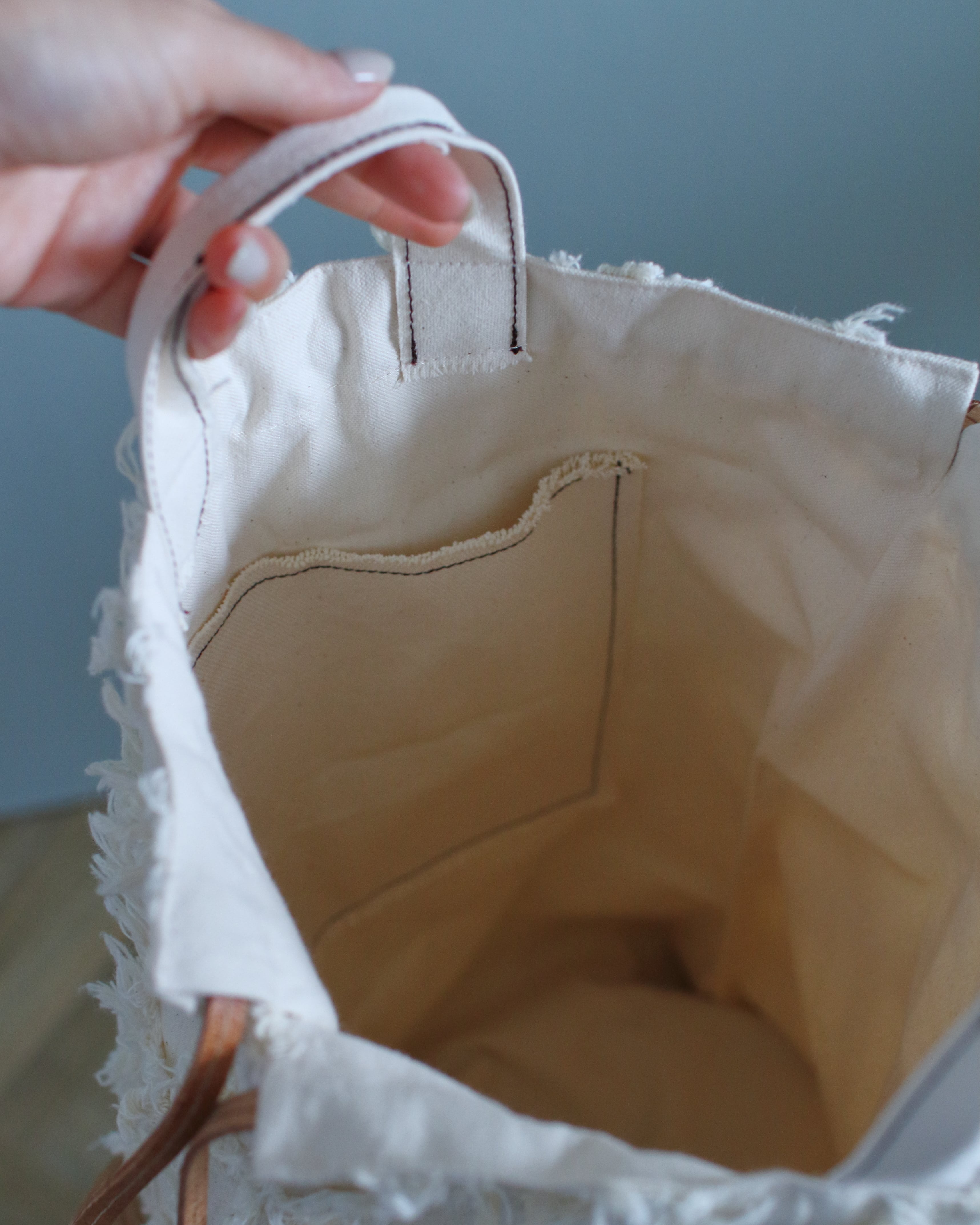小さな持ち手とポケットで実用度も引き受けて、使いやすくアレンジしています。