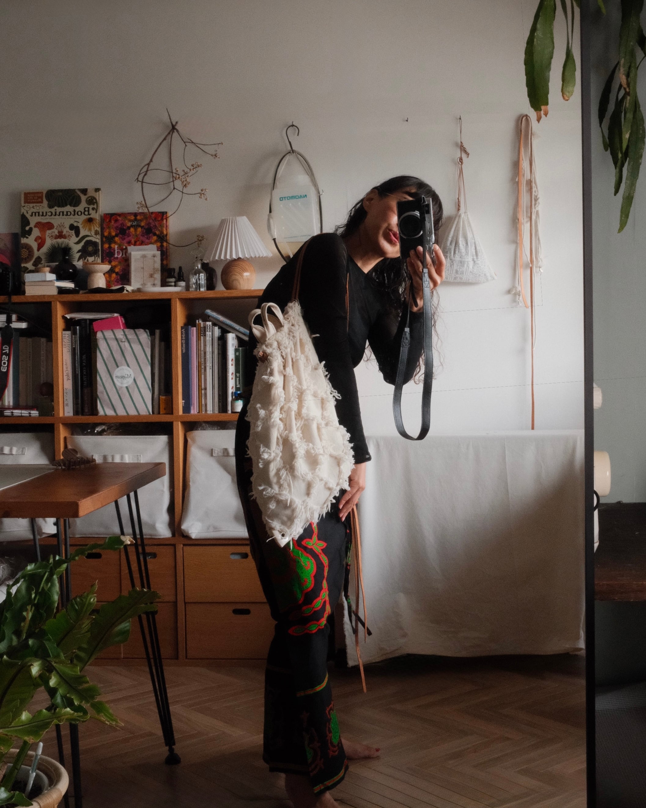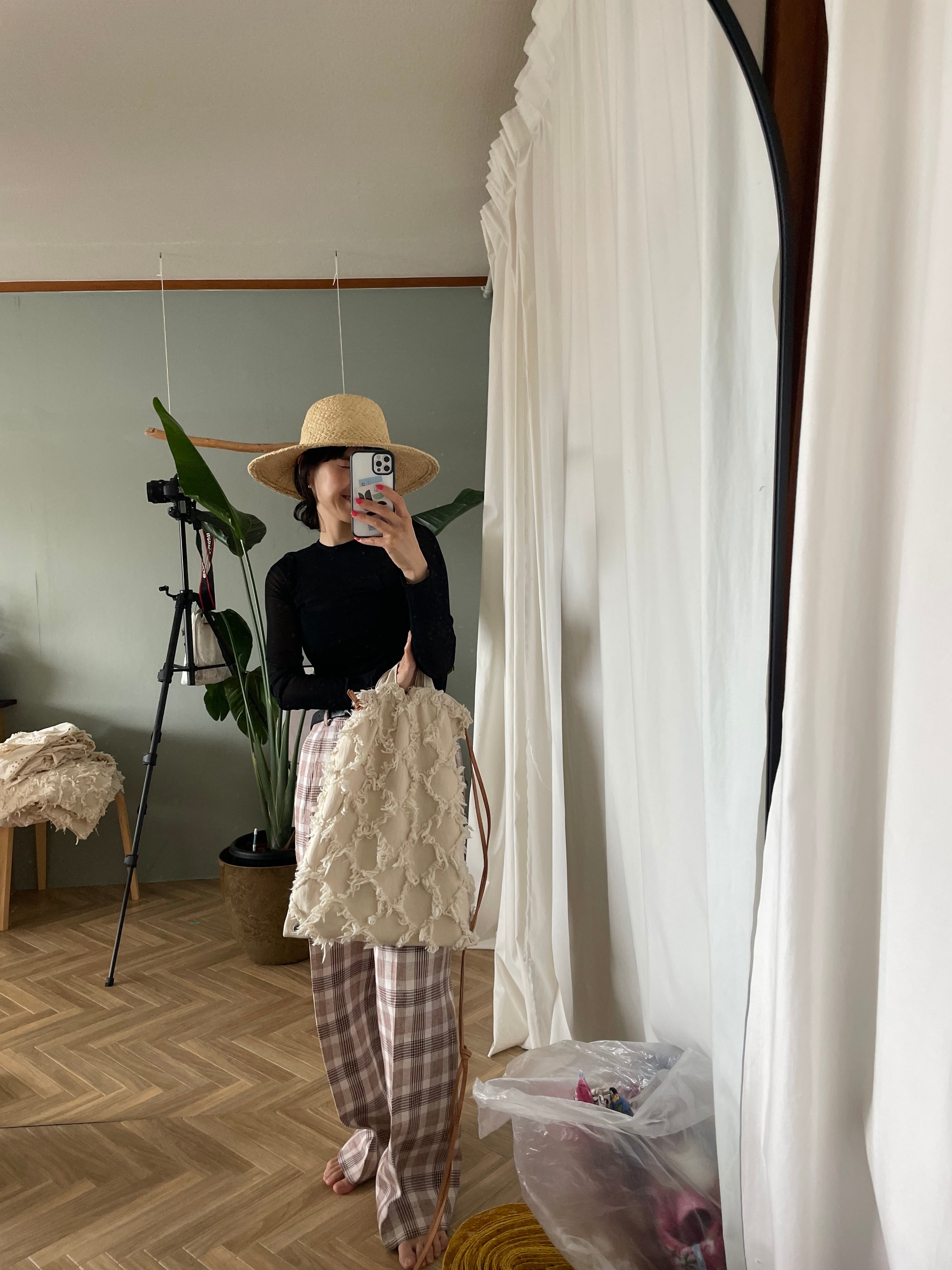 土や太陽の手触りを感じる素材たちのテクスチャーの組み合わせで魅せるコントラストが新鮮なバッグに仕上がりました。