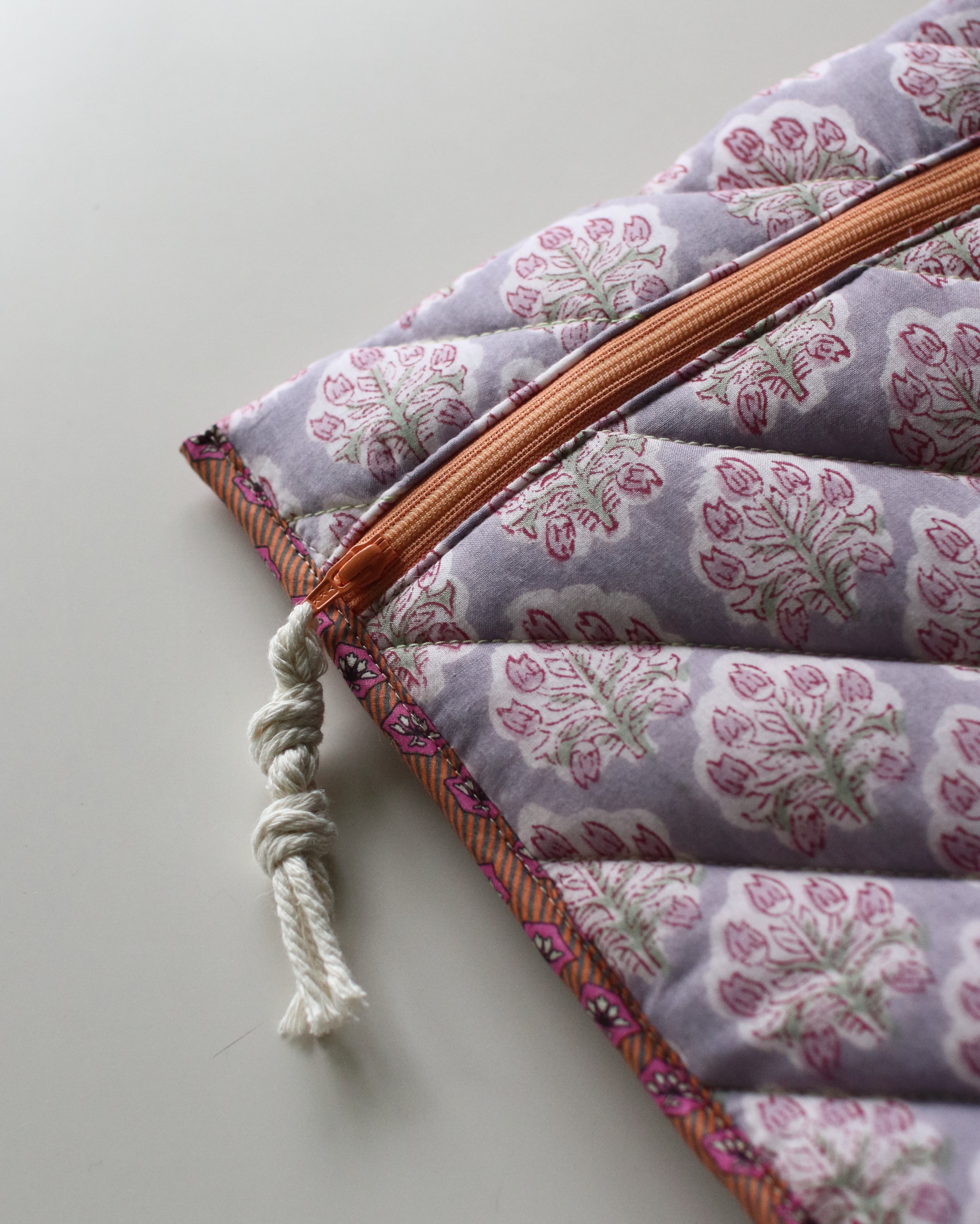 オリジナルで厚みのあるキルティングに仕立てたスリーブ。