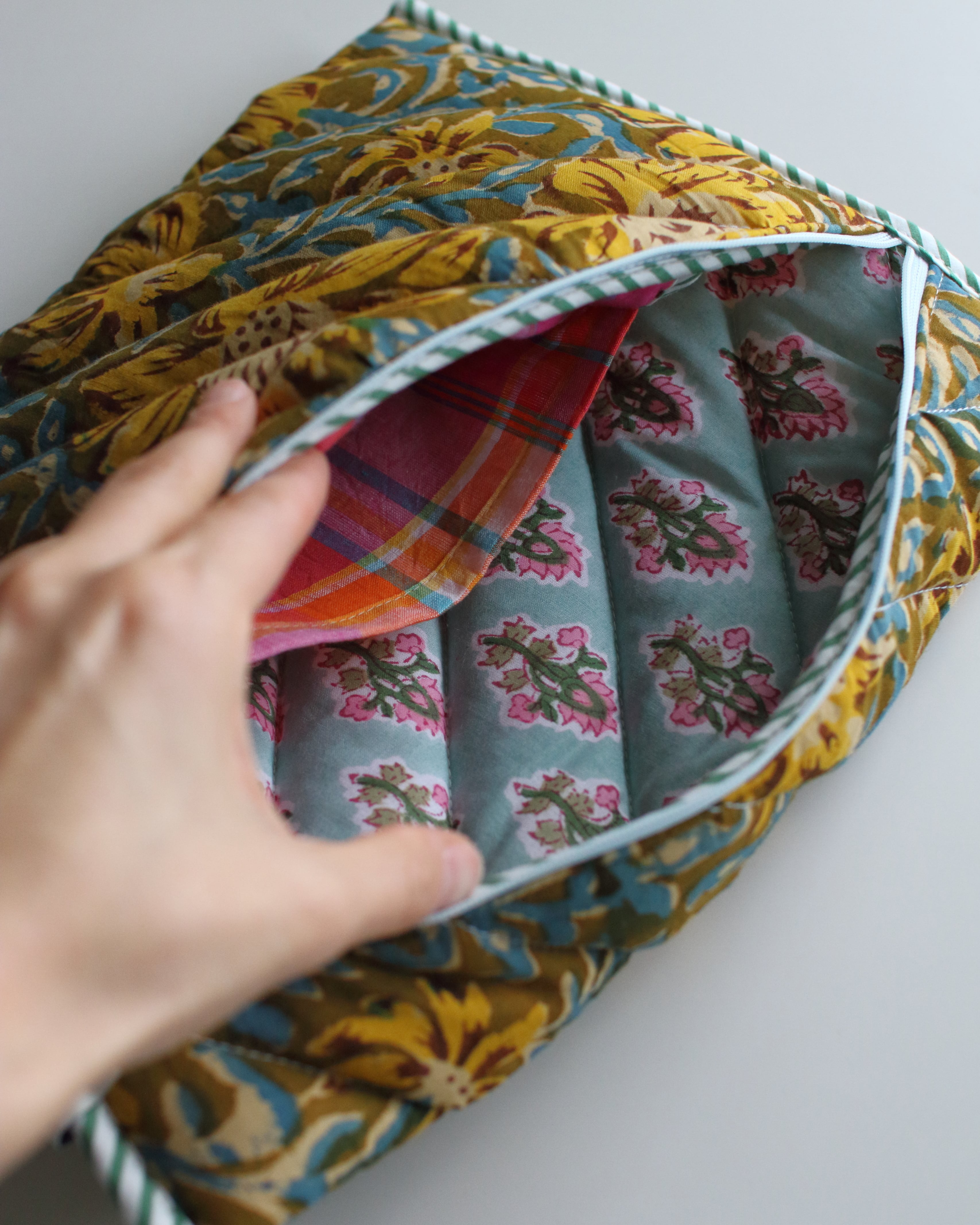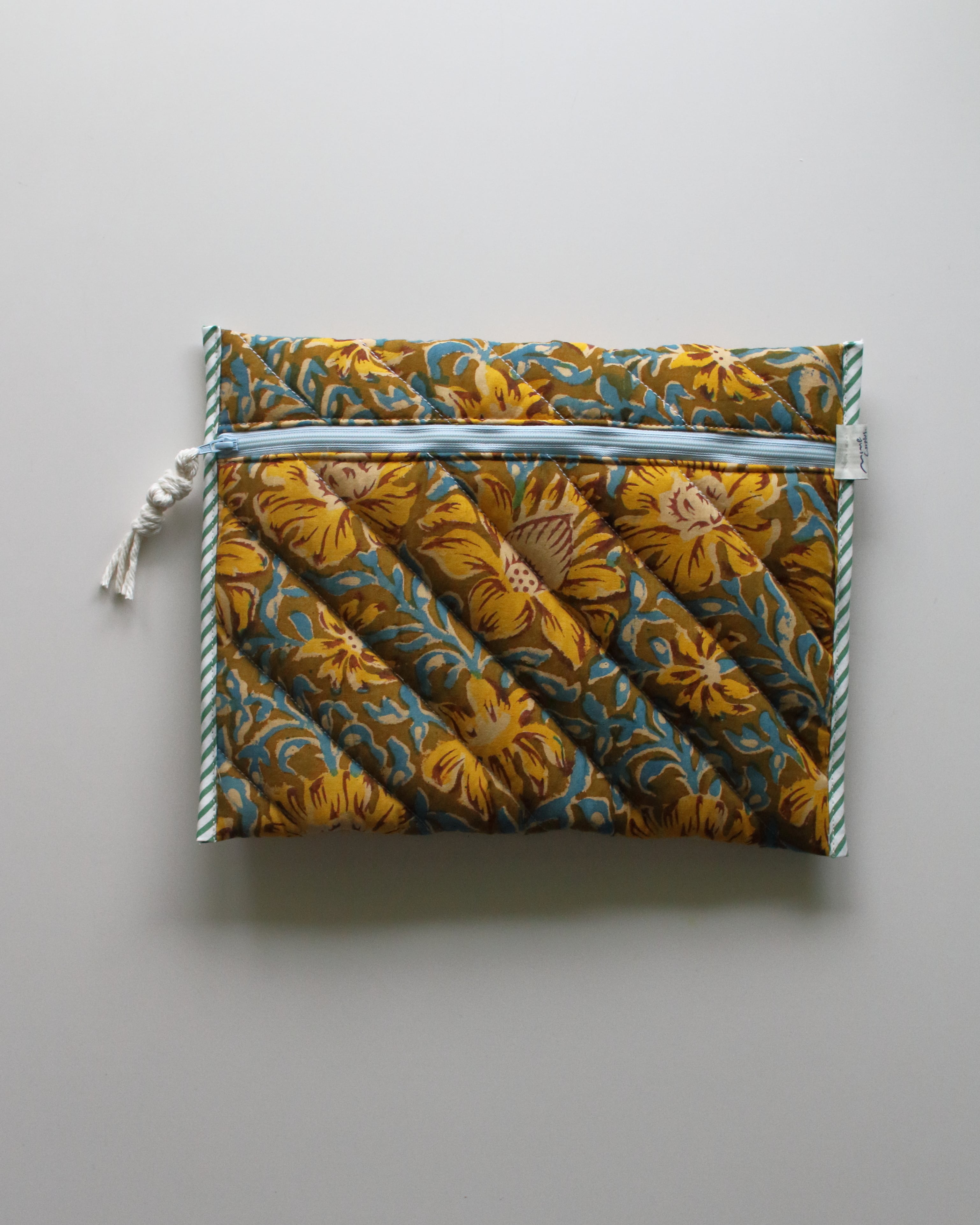 オリジナルで厚みのあるキルティングに仕立てたタブレットスリーブ。