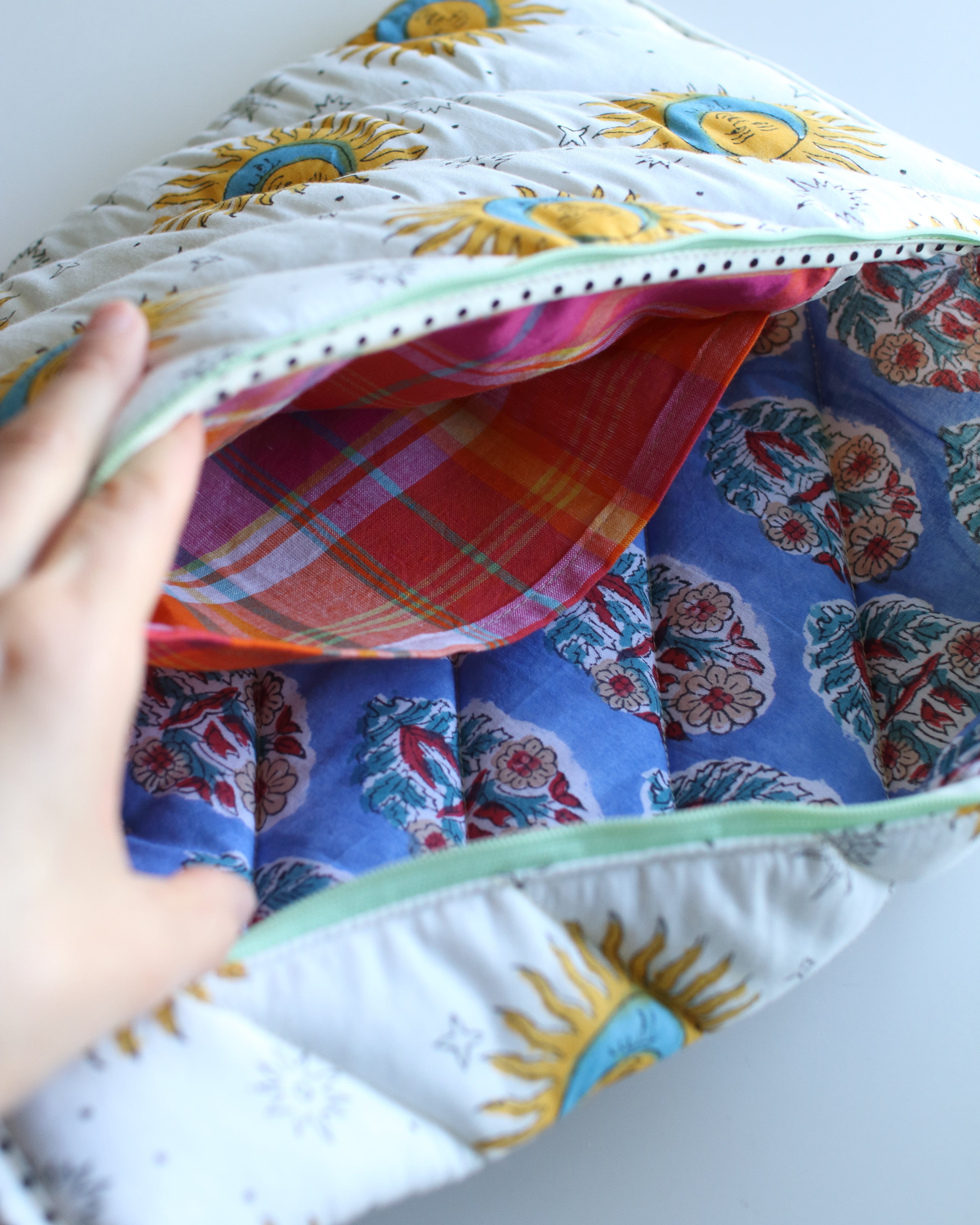 オリジナルで厚みのあるキルティングに仕立てたラップトップスリーブ。
