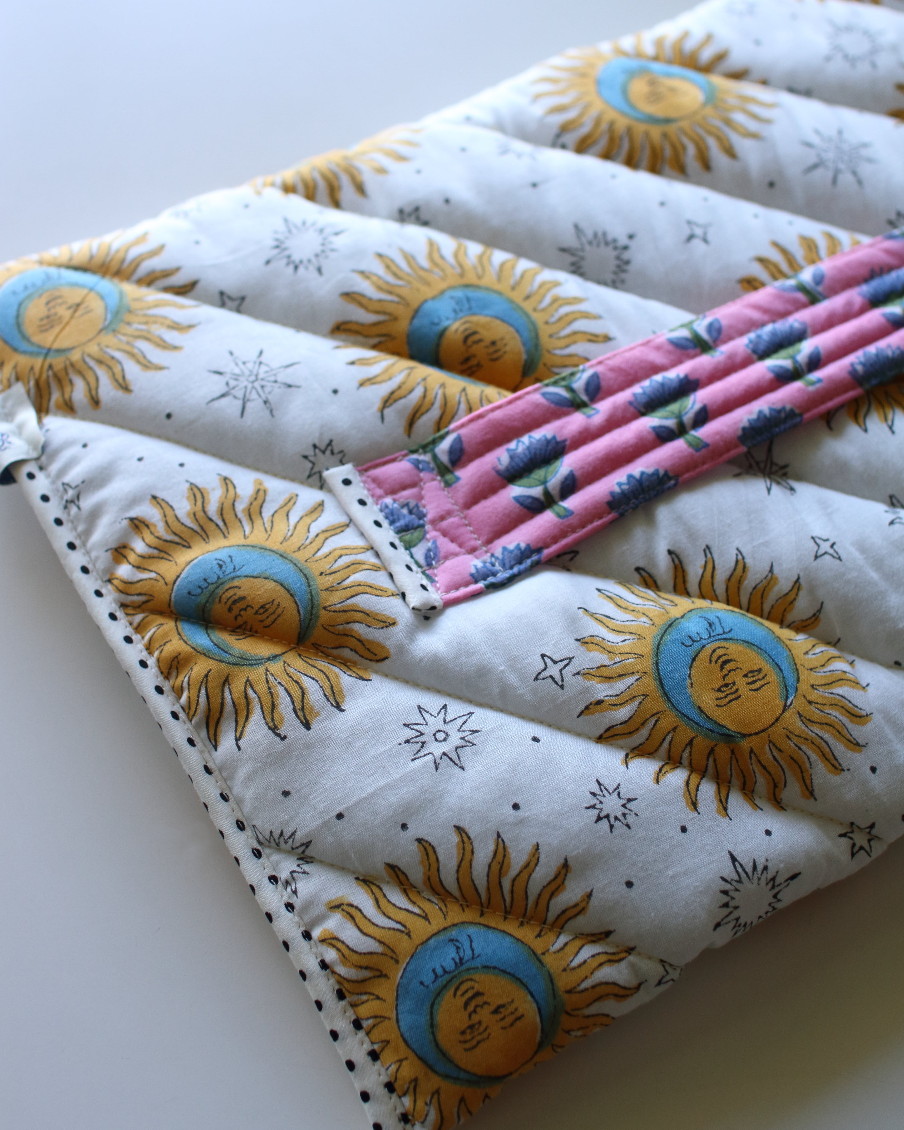 Block quilt Laptop Sleeve.<Sun & Moon & Pink >