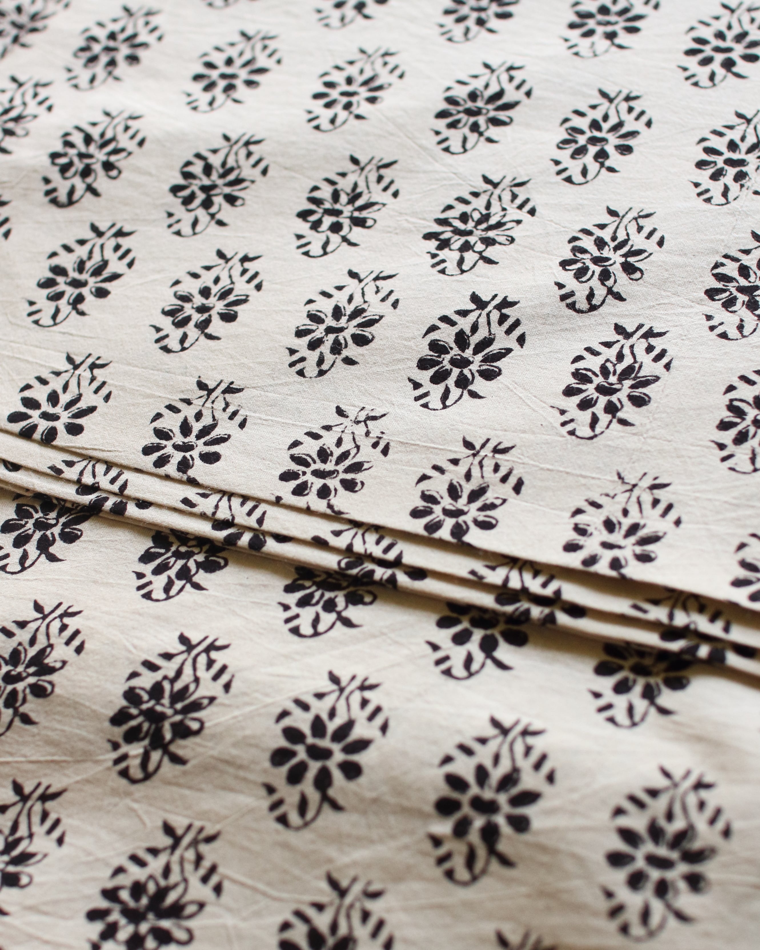 柔らかい風合いと素朴な柄が特徴のハンドブロックプリント。