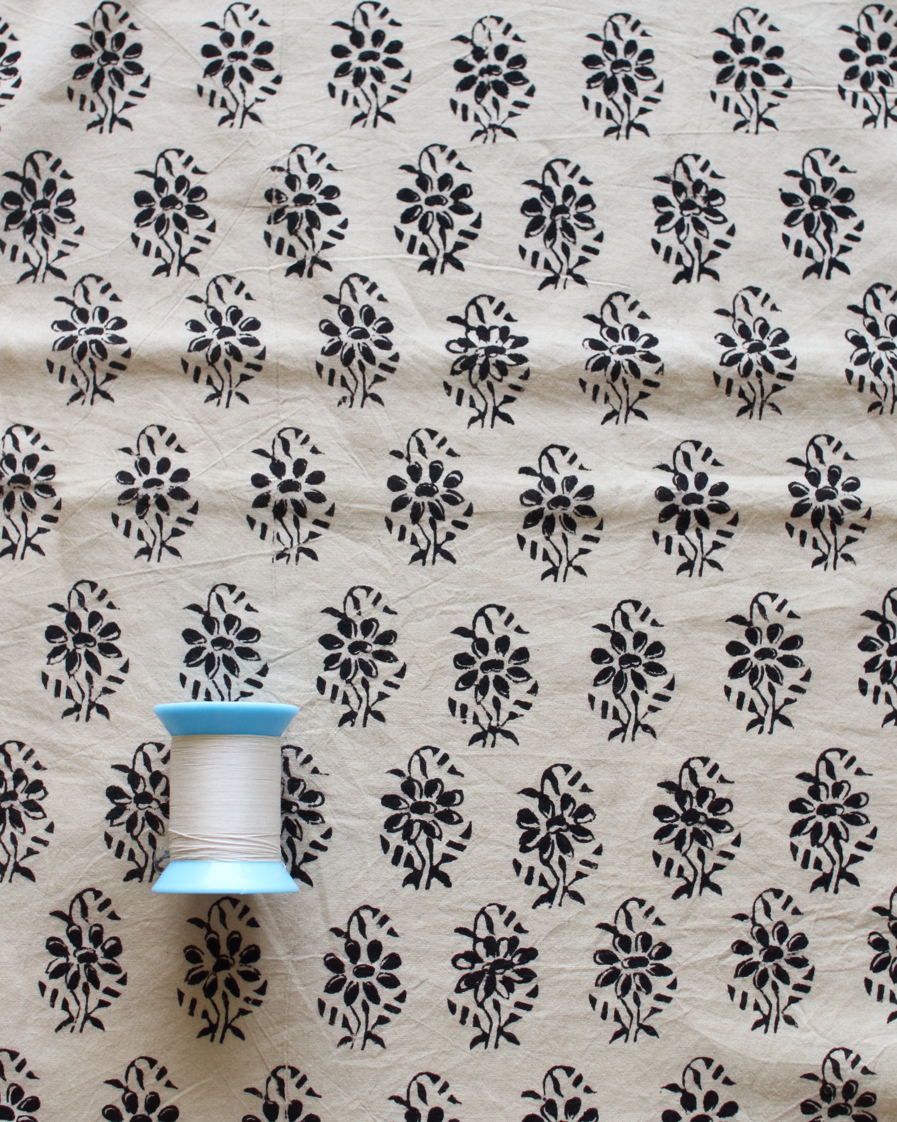 ハンドブロックプリントはインドの伝統的な技法で、手彫りの木版をひとつひとつ布に押しあてて制作していく、あたたかみ溢れるコットンファブリックです。