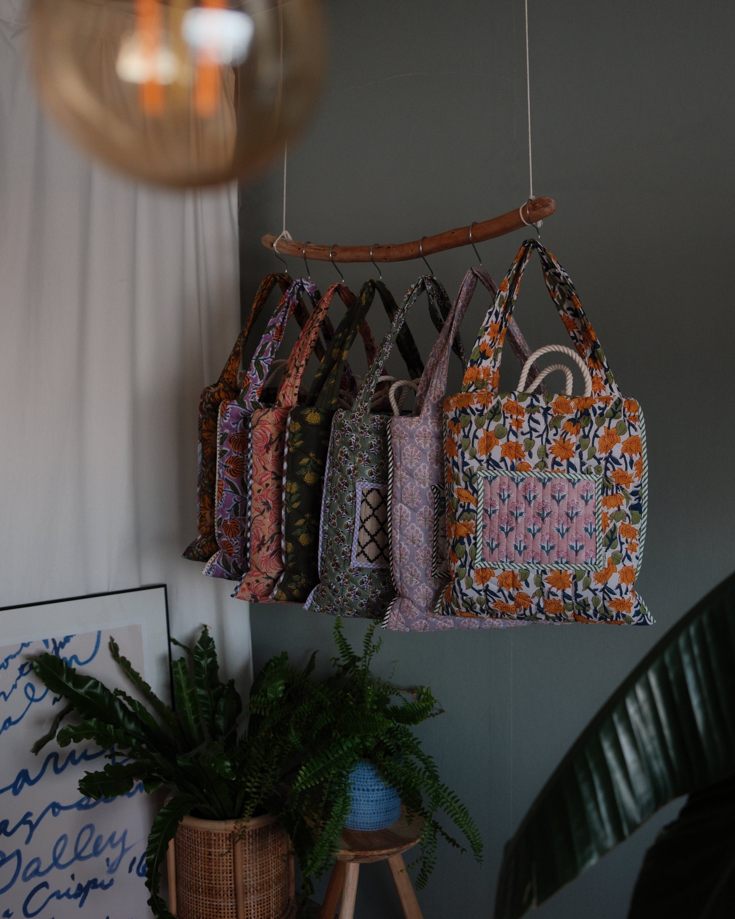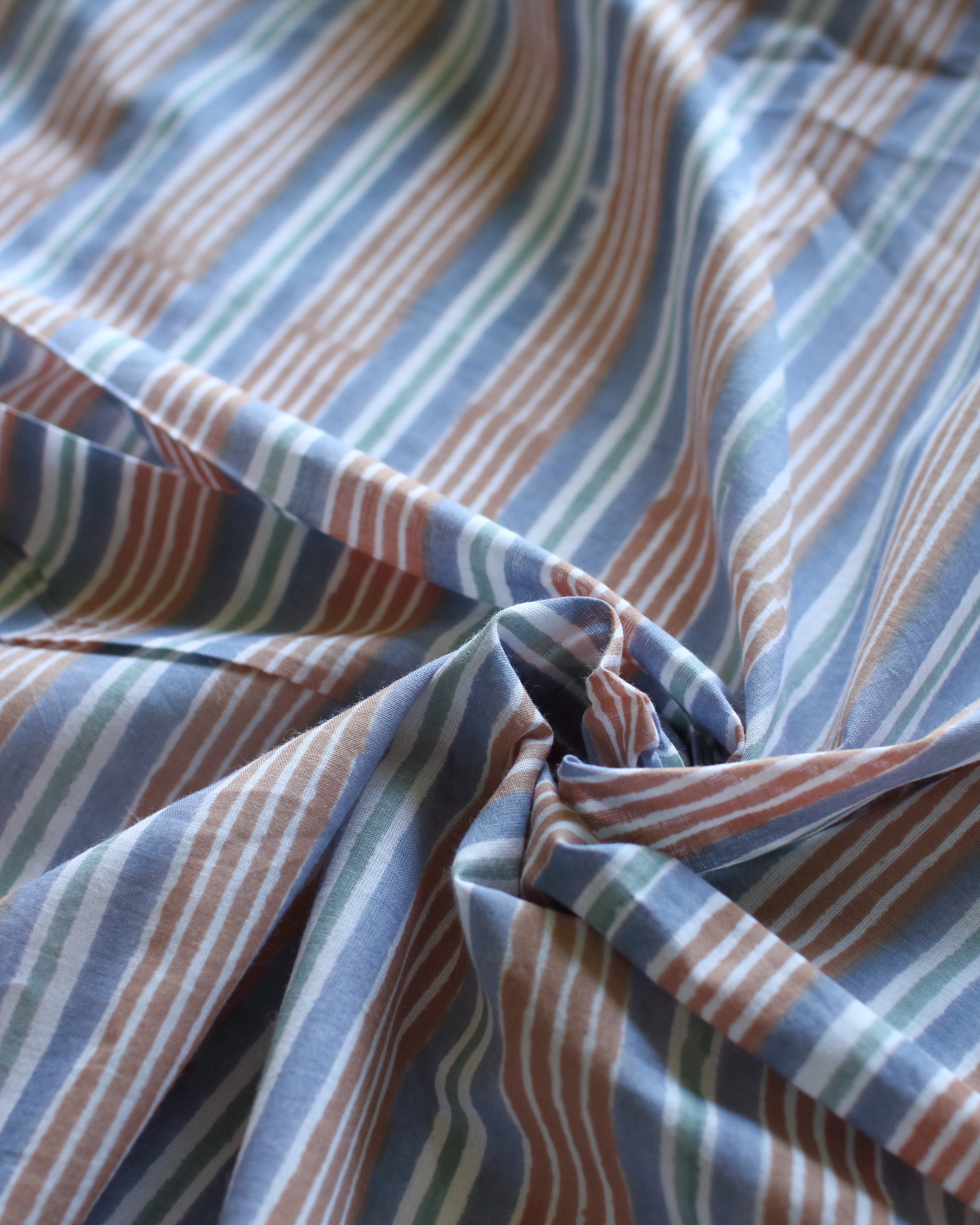 ハンドブロックプリントはインドの伝統的な技法で、手彫りの木版をひとつひとつ布に押しあてて制作していく、あたたかみ溢れるコットンファブリックです。