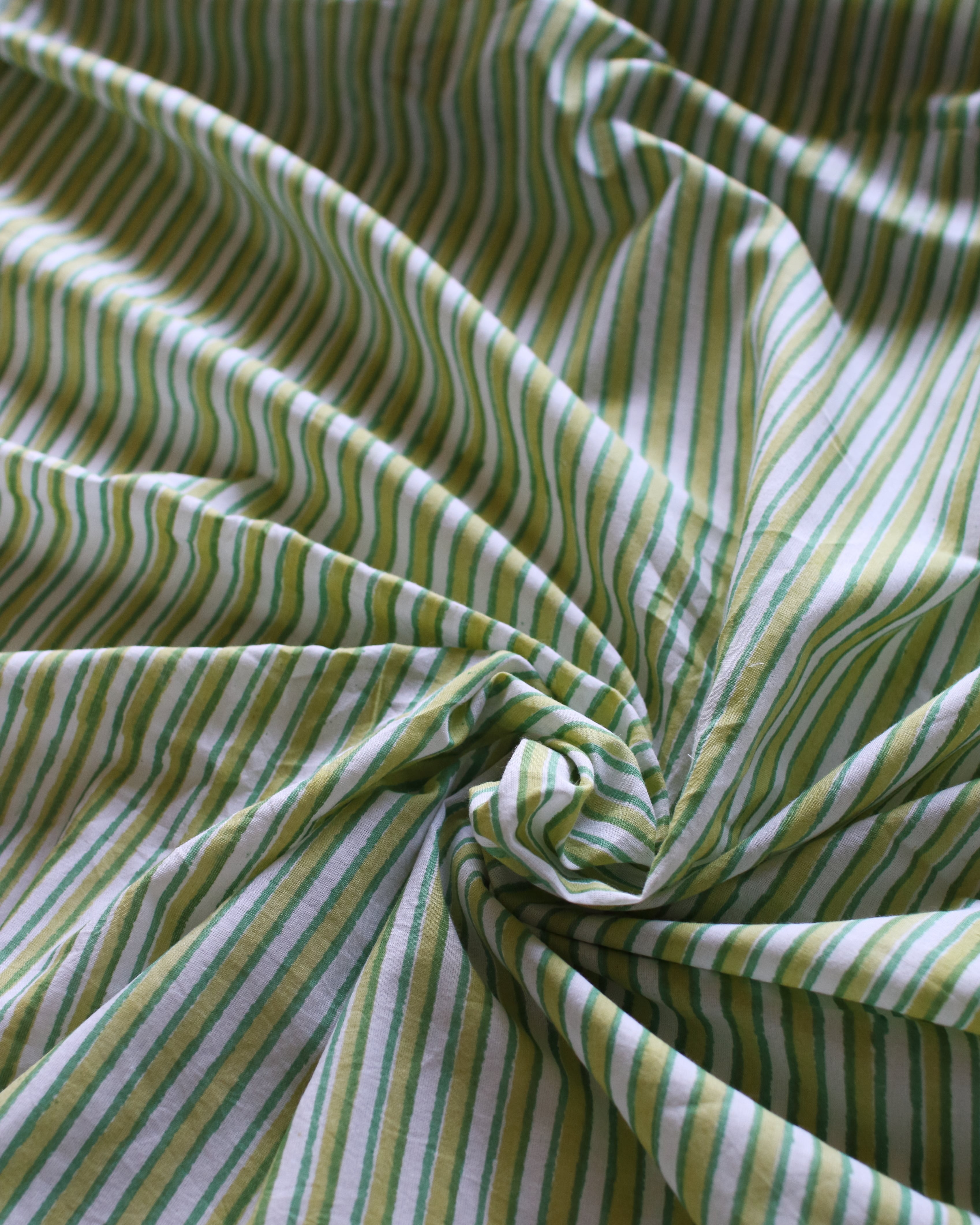 ハンドブロックプリントはインドの伝統的な技法で、手彫りの木版をひとつひとつ布に押しあてて制作していく、あたたかみ溢れるコットンファブリックです。