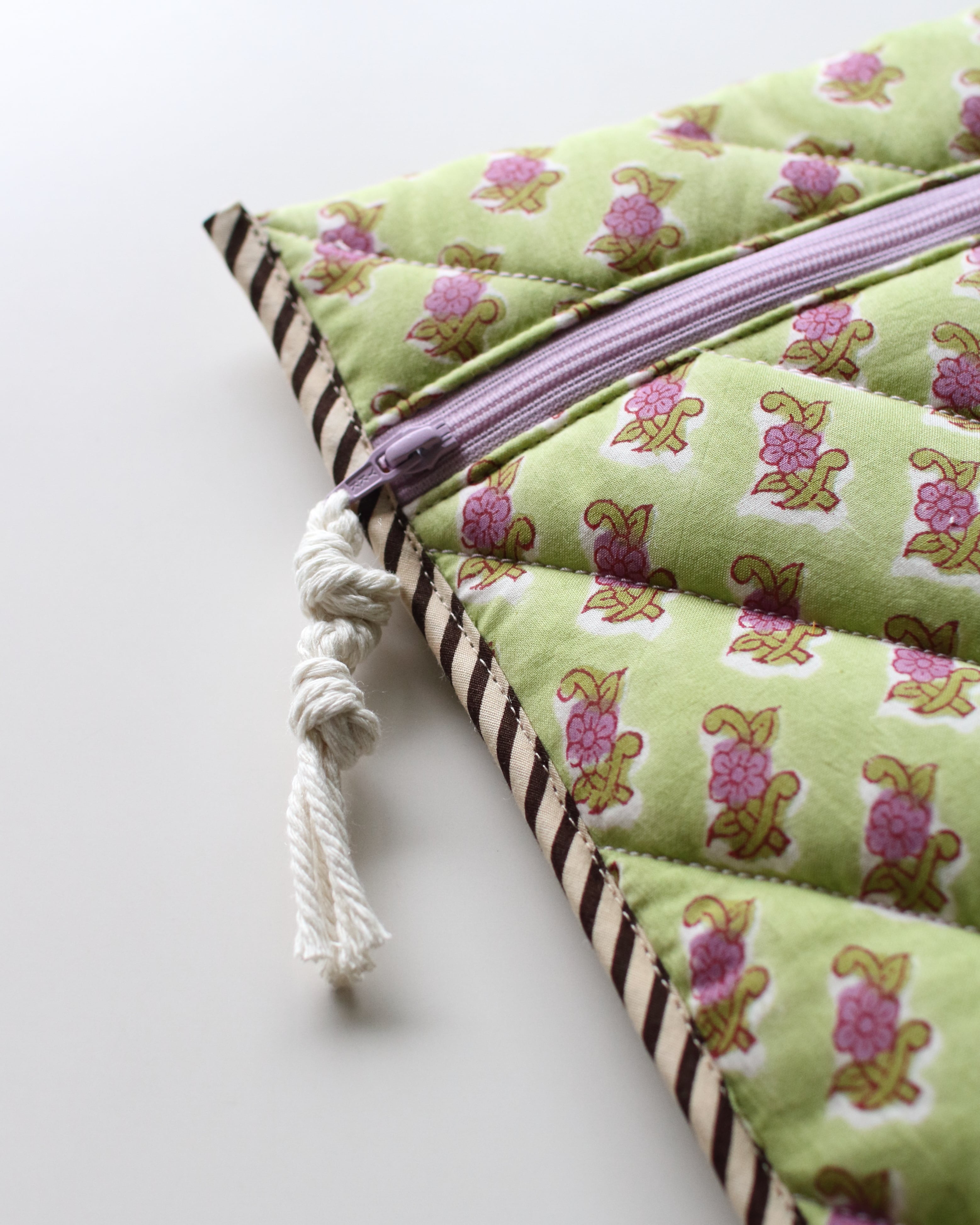 オリジナルで厚みのあるキルティングに仕立てたスリーブ。