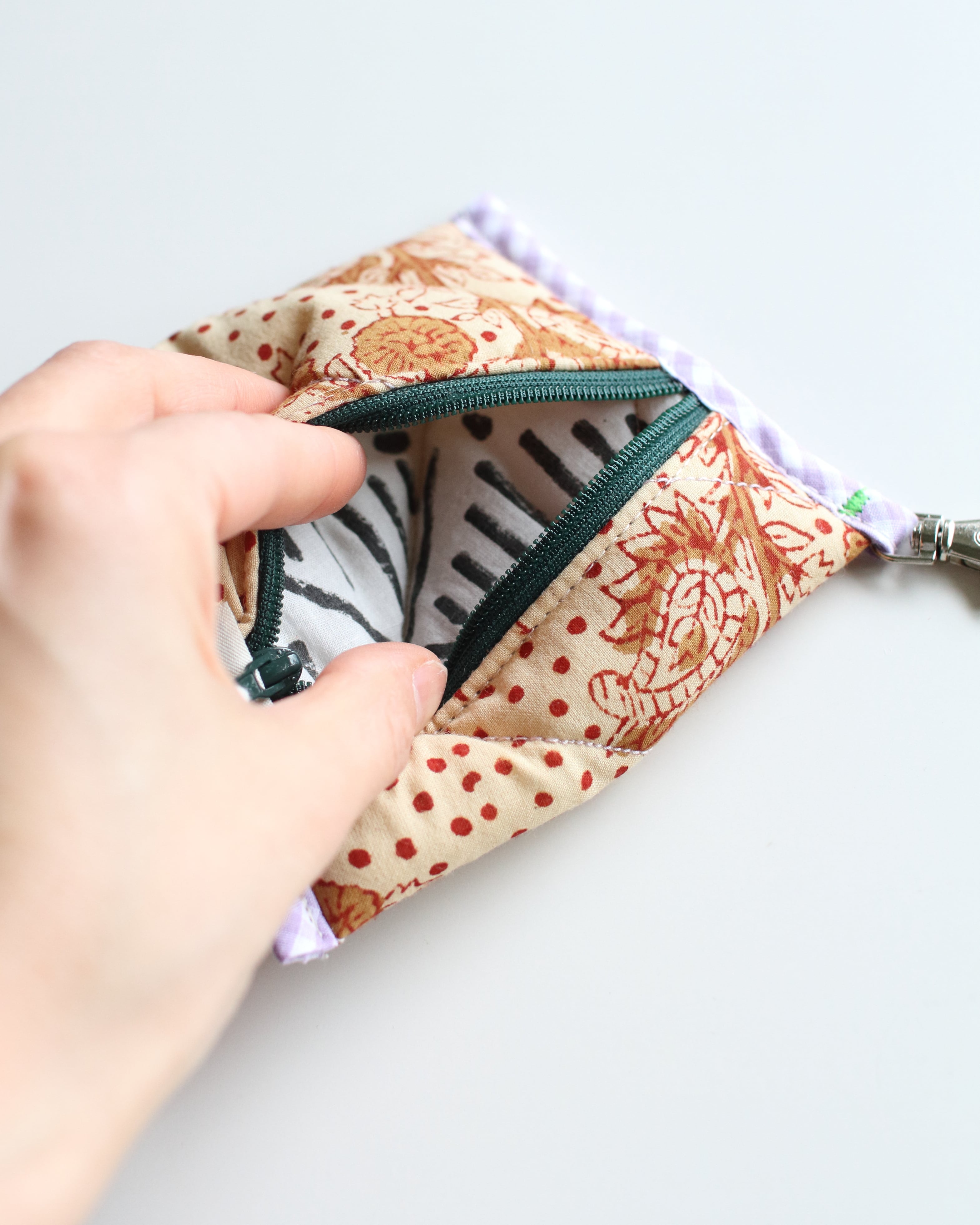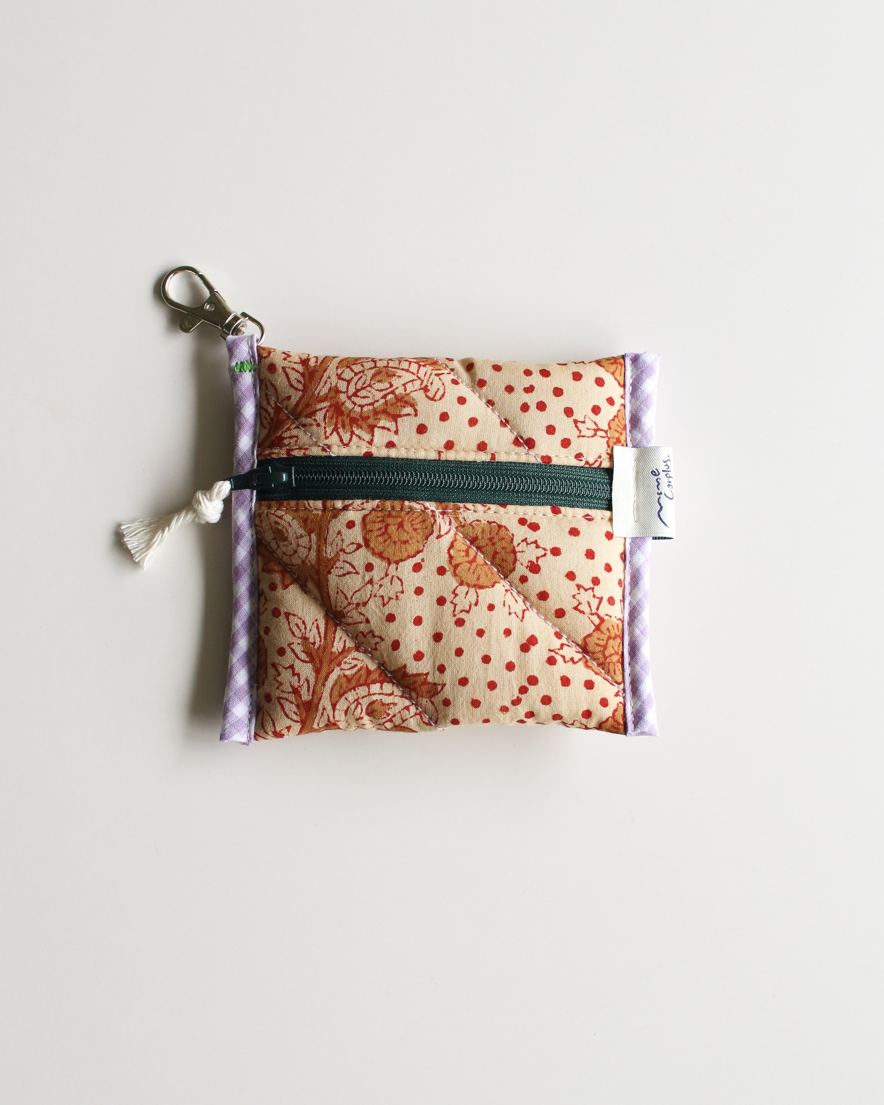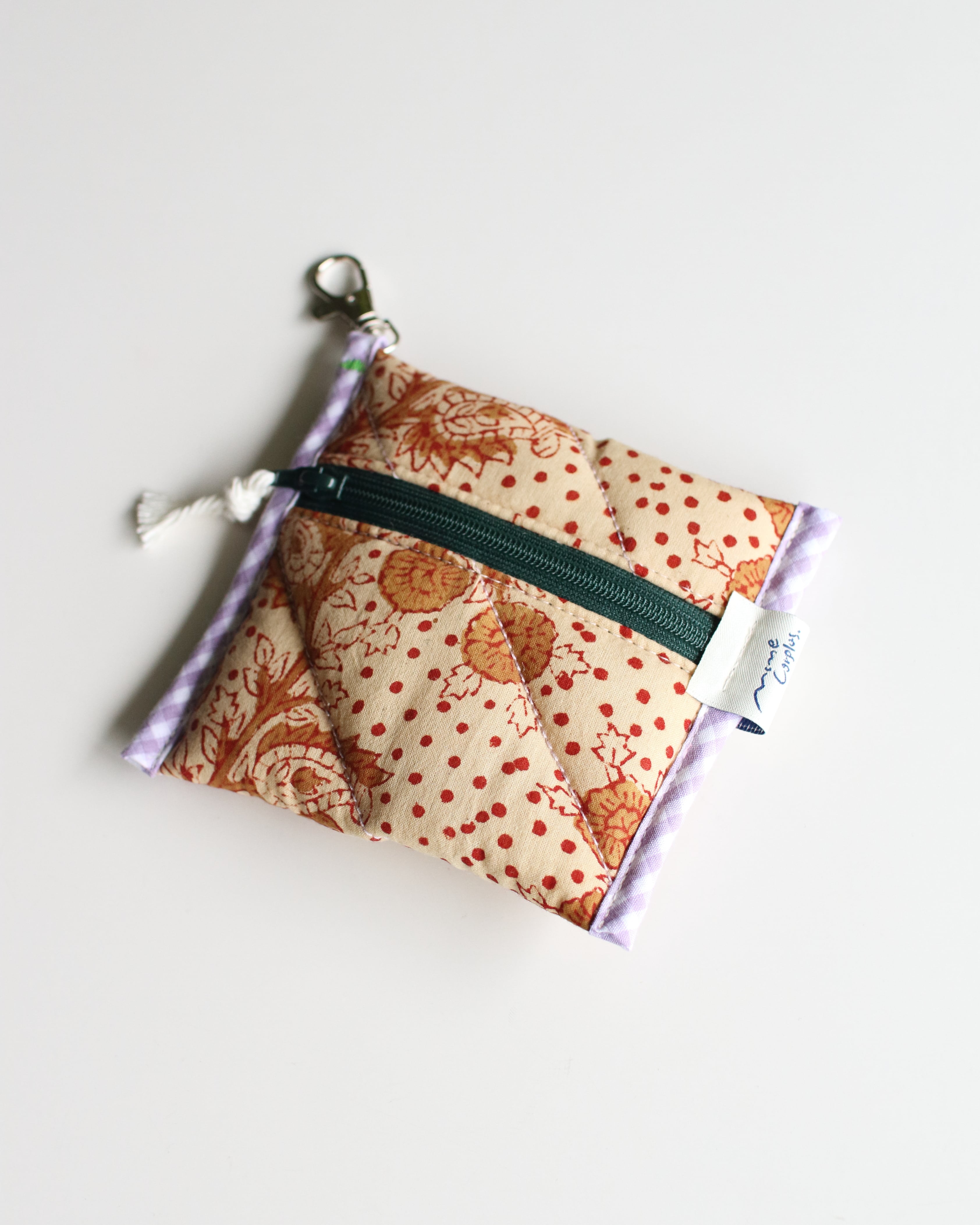 オリジナルで厚みのあるキルティングに仕立てたミニポーチ。