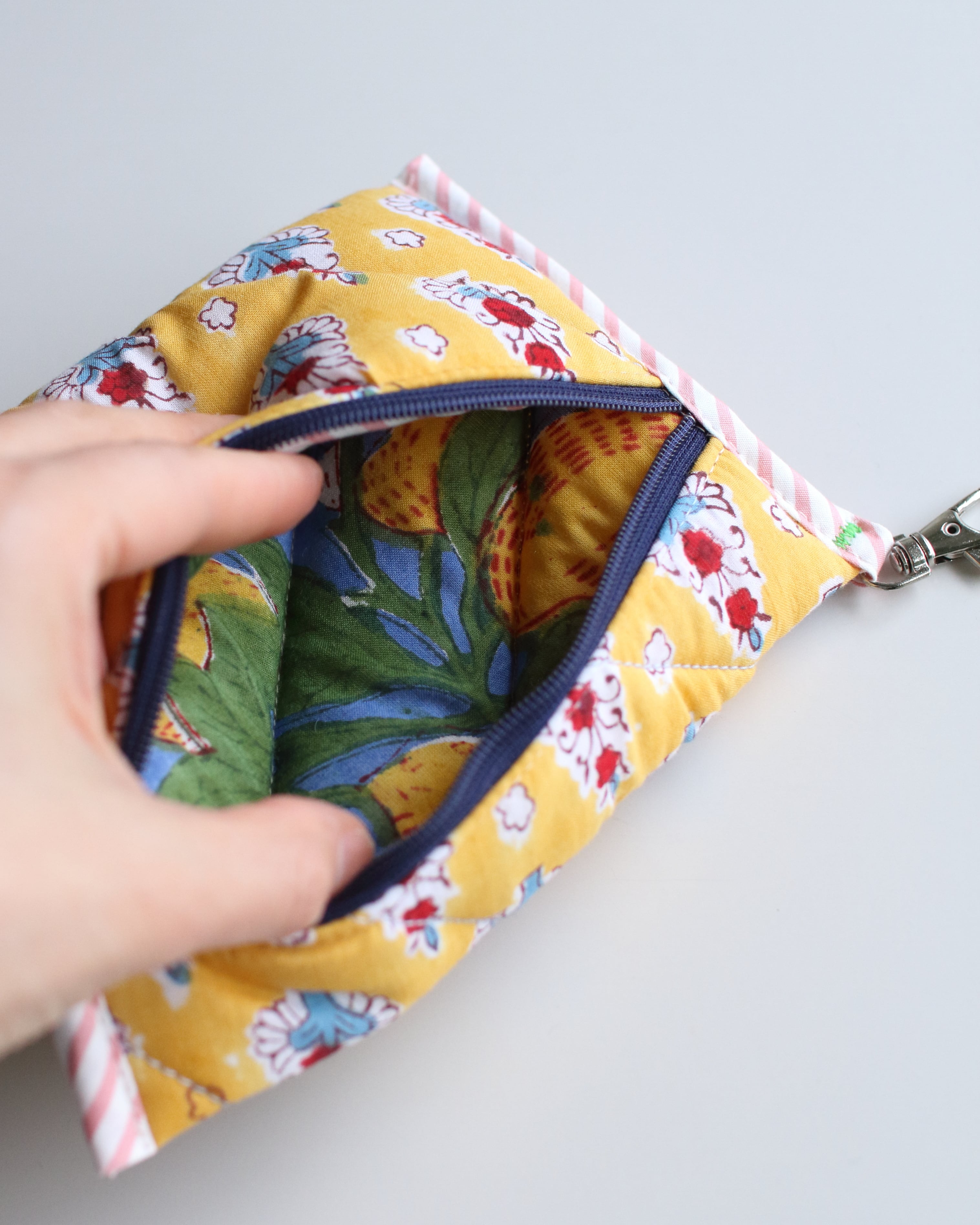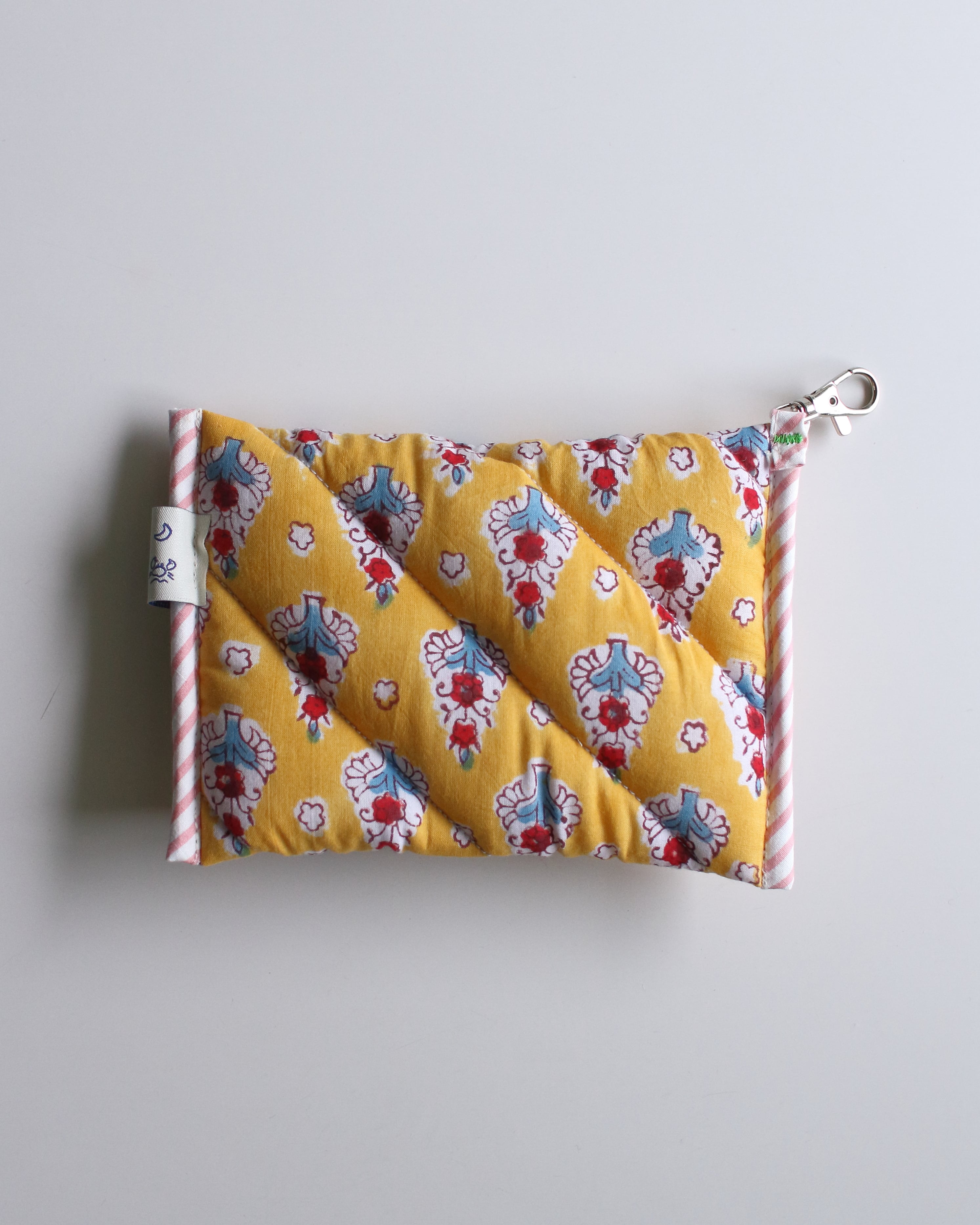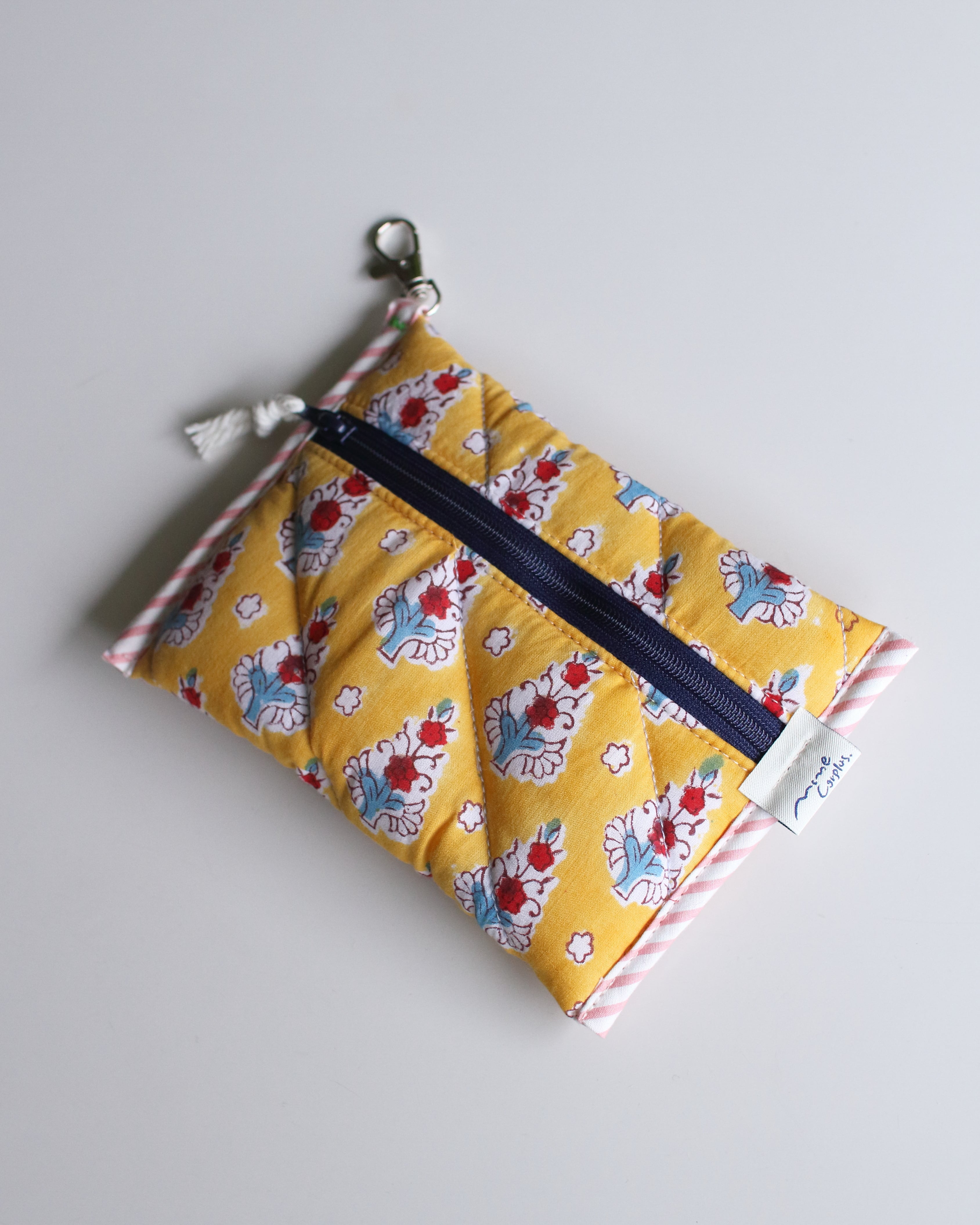 オリジナルで厚みのあるキルティングに仕立てたコンパクトポーチ。