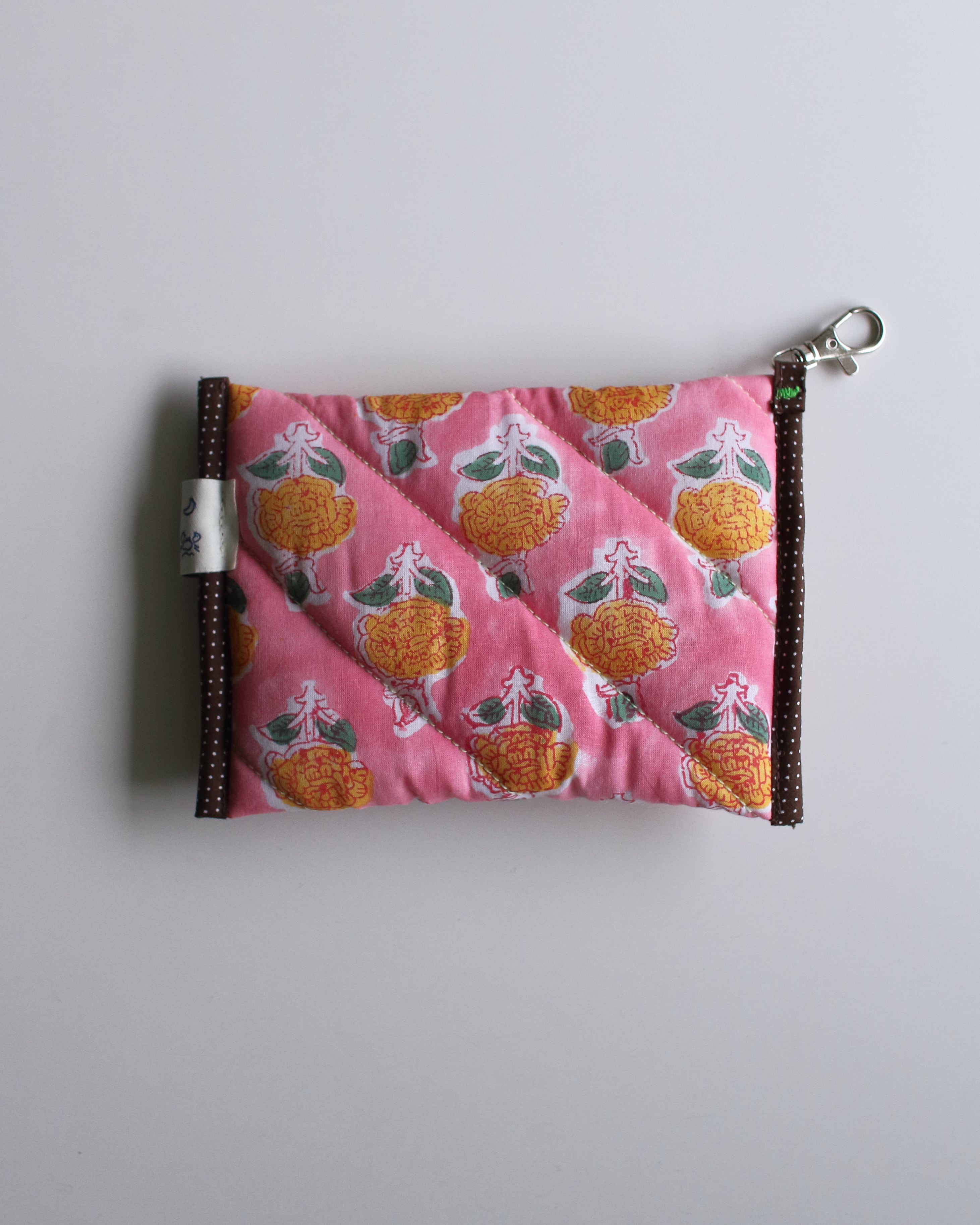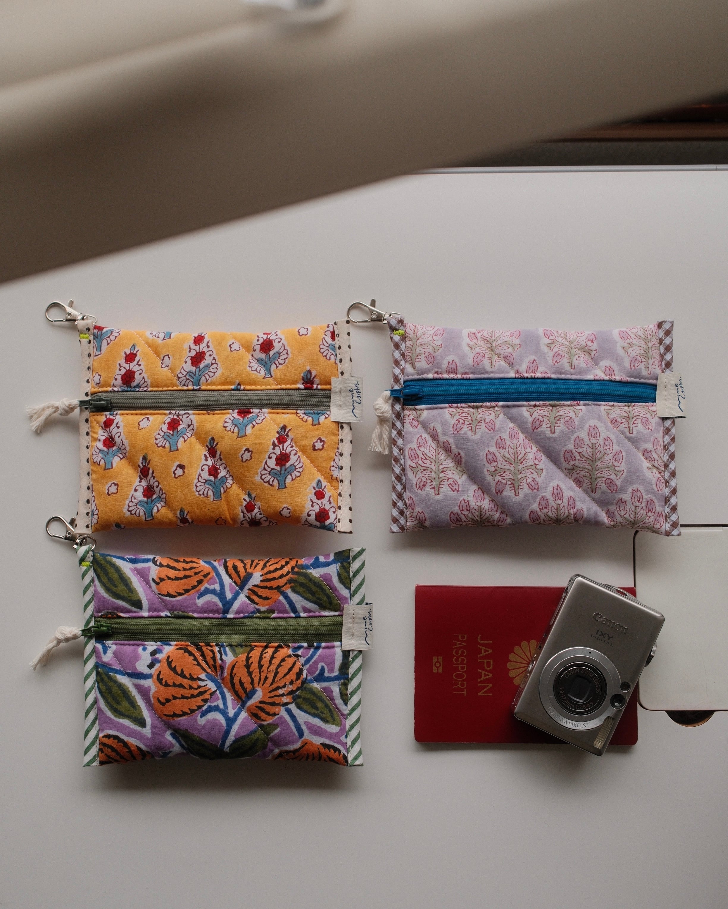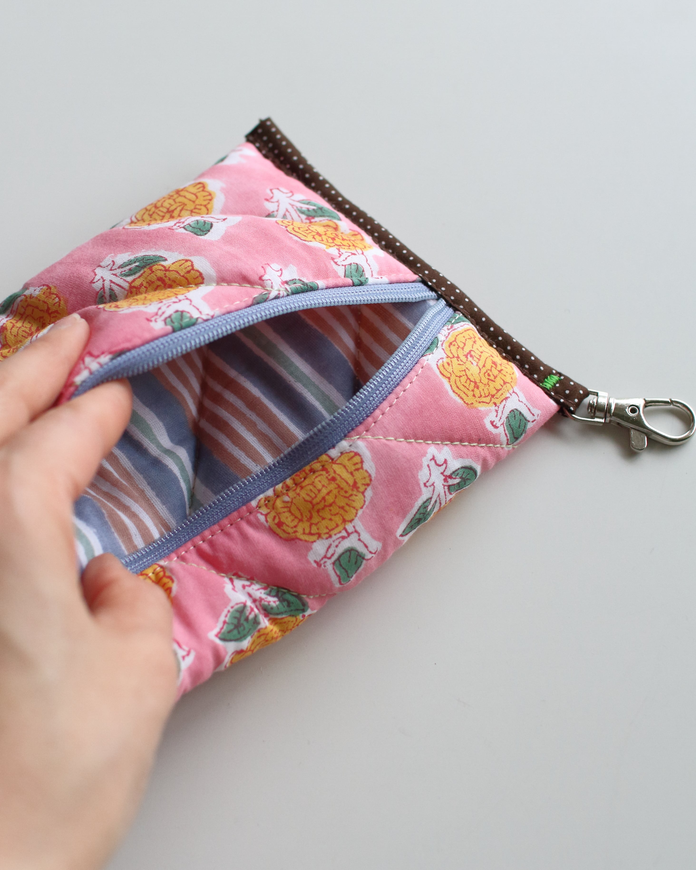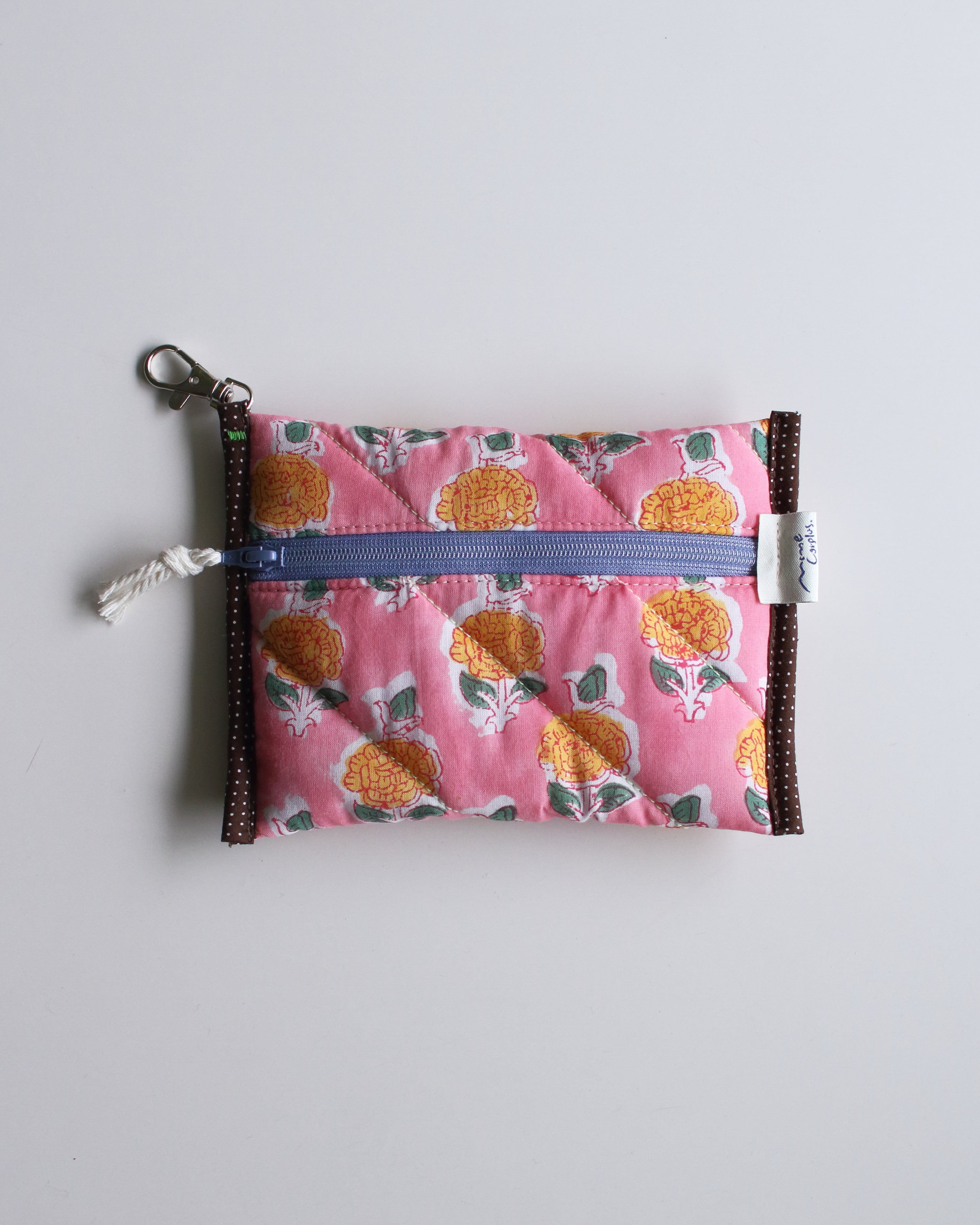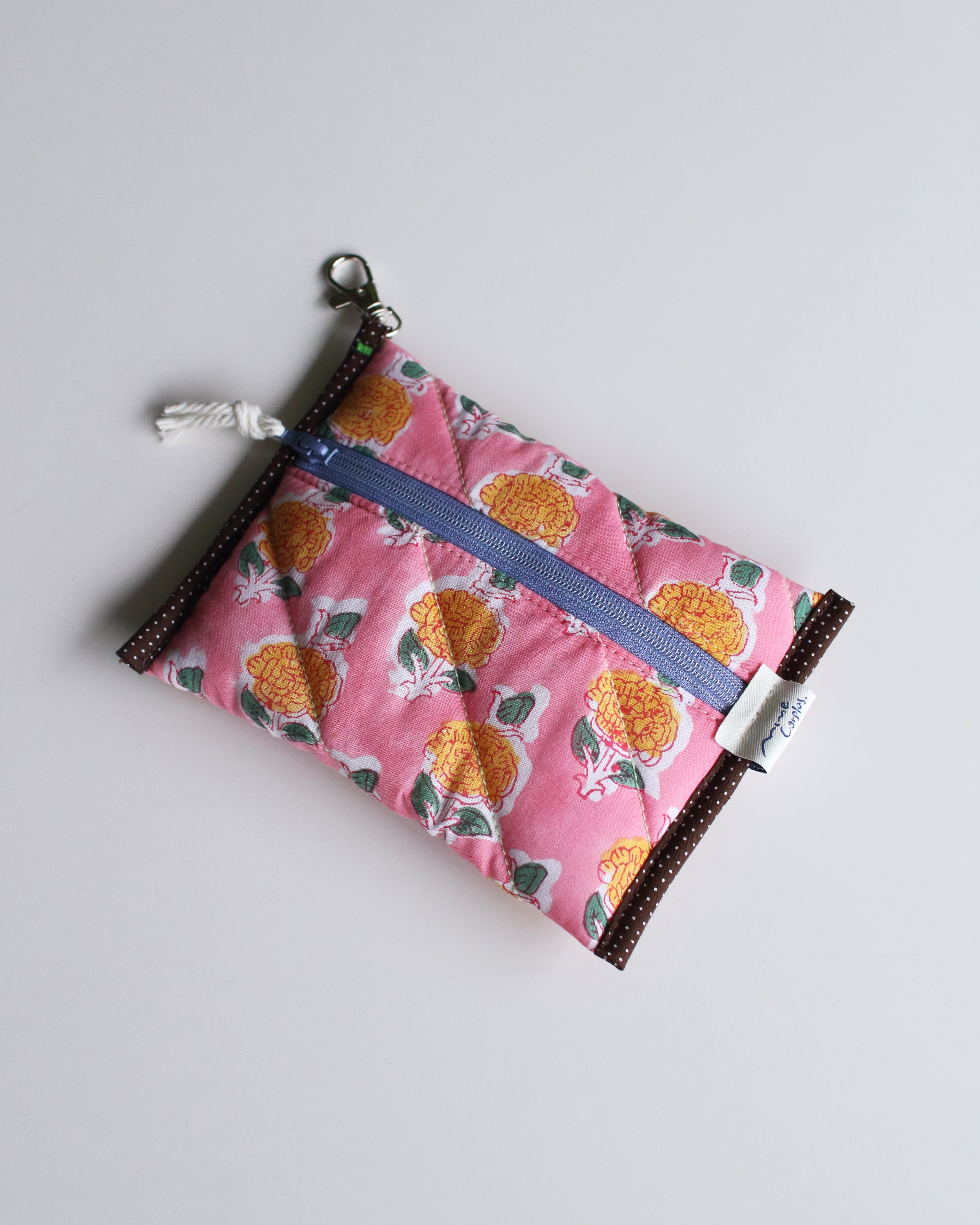 オリジナルで厚みのあるキルティングに仕立てたコンパクトポーチ。