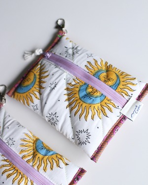 Block quilt pouch compact <Sun and Moon>