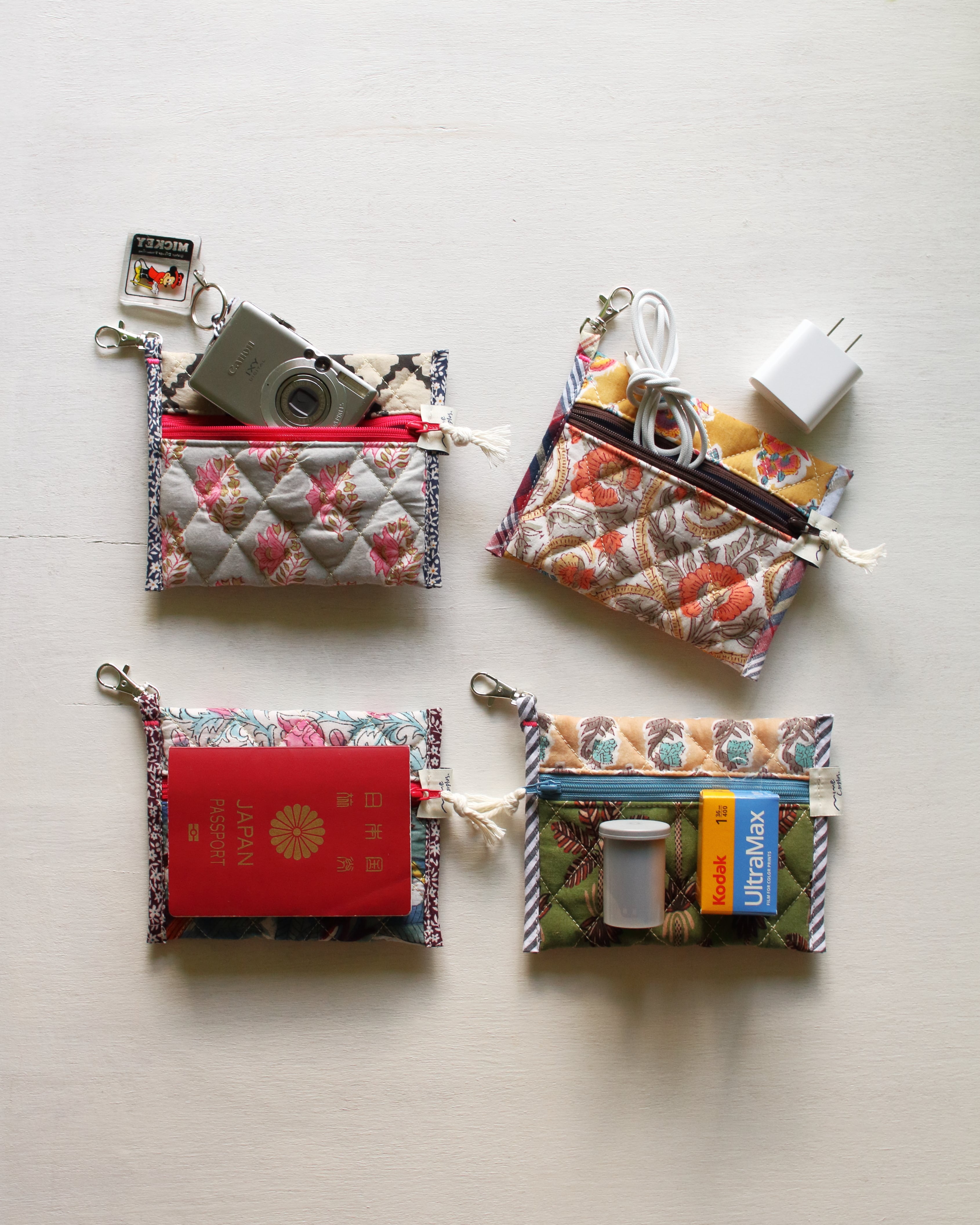 コンデジやパスポートサイズに合わせて作っていたて、そのほかコードの収納やポケットティッシュケースとしてもお使いいただけます。