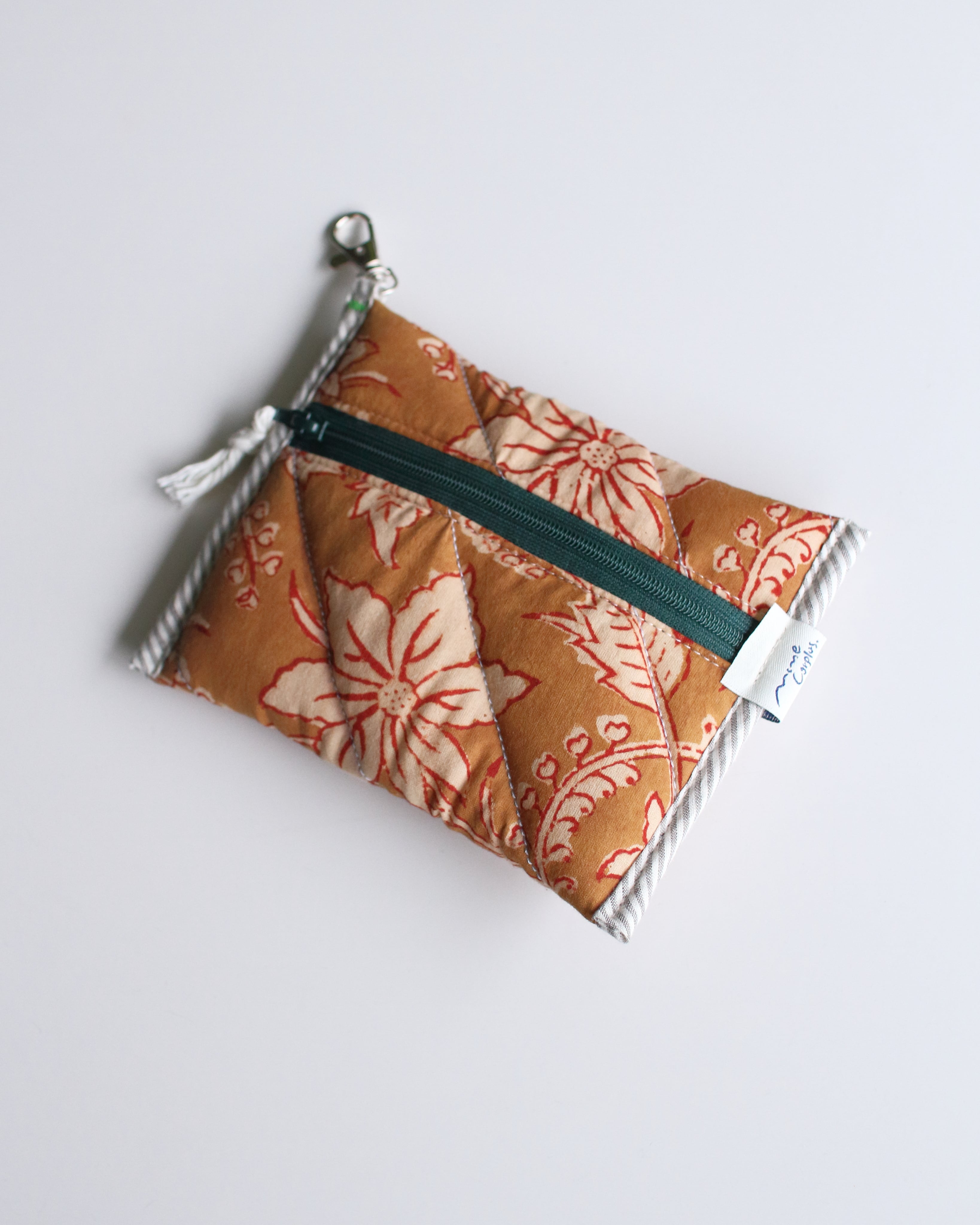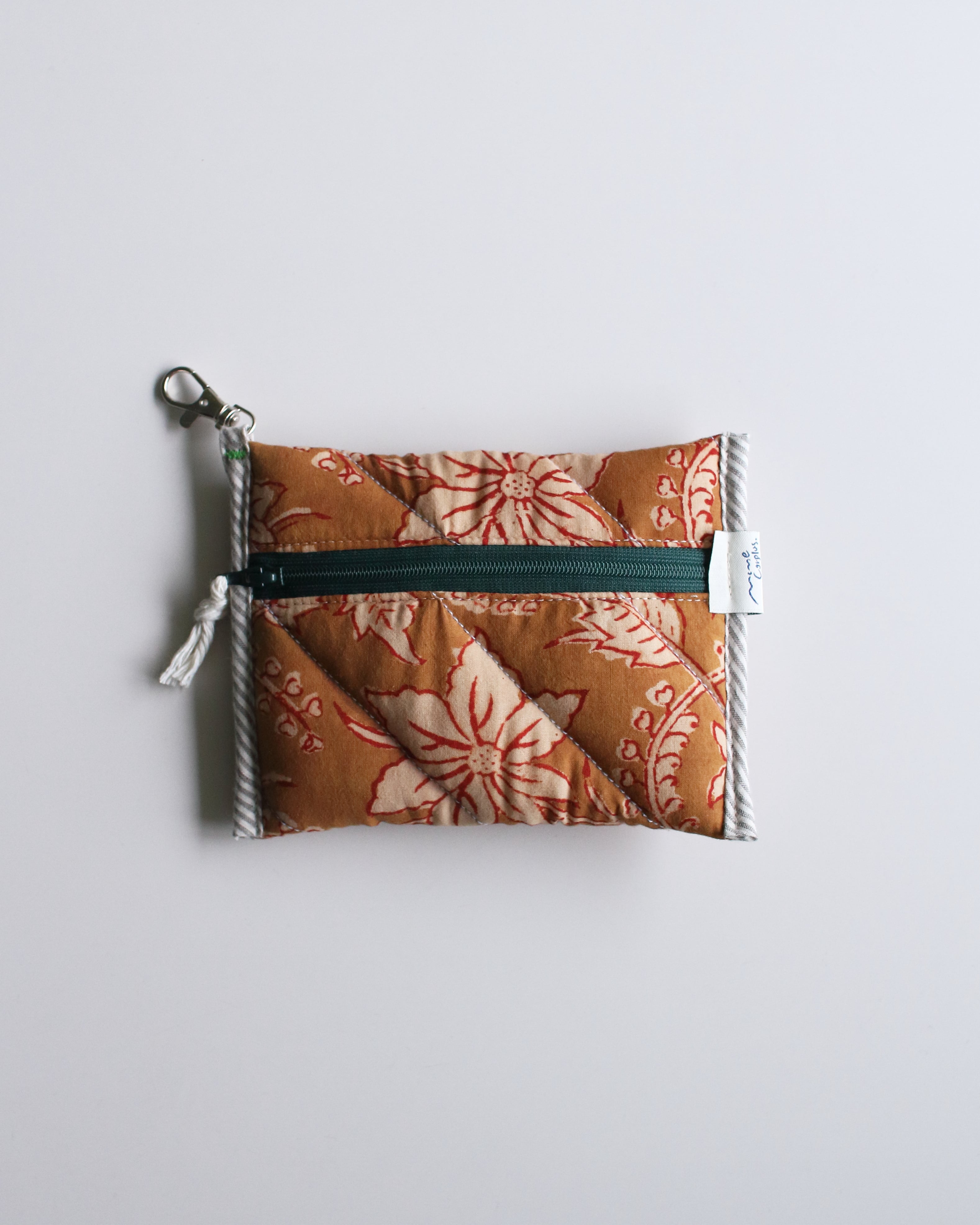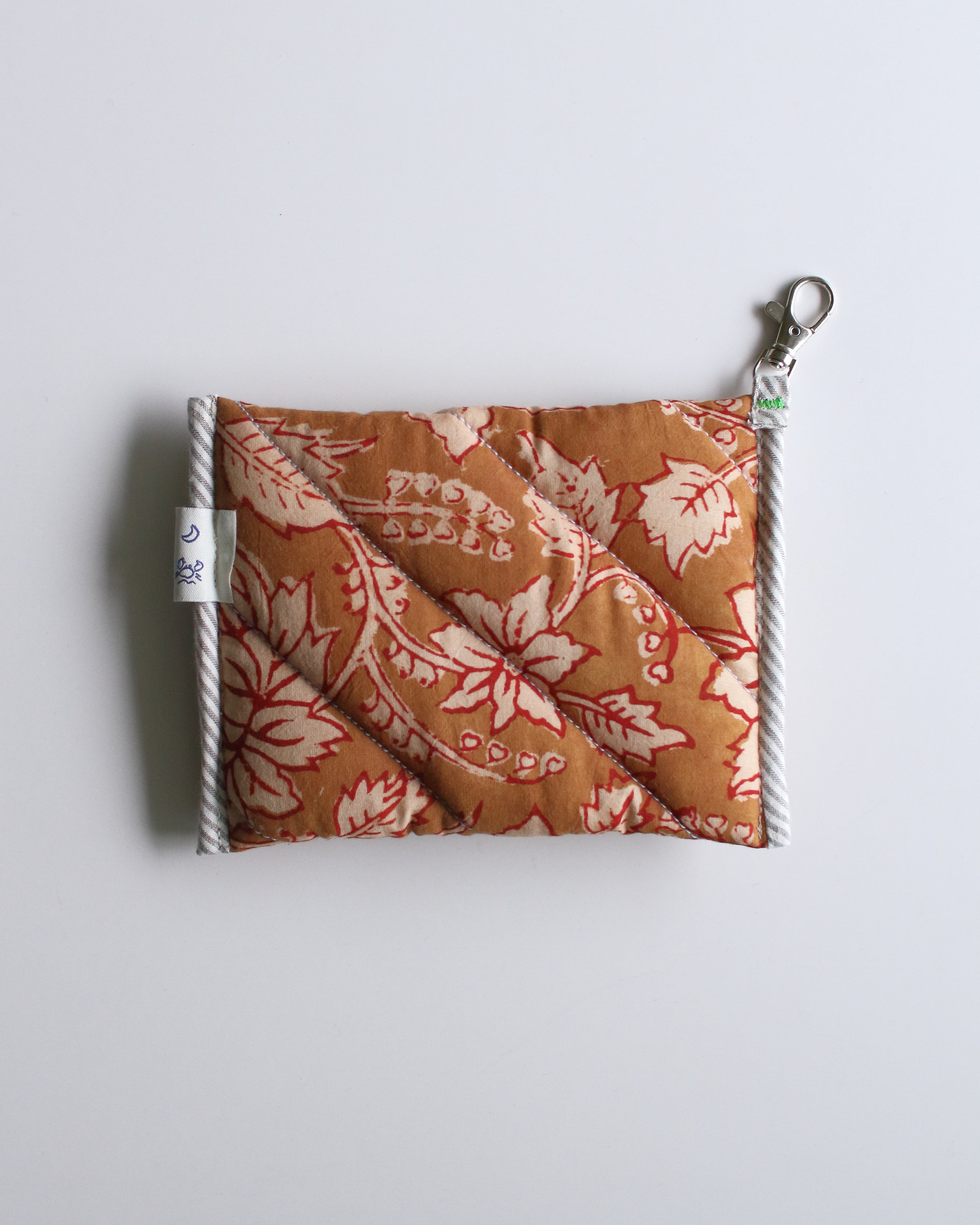 オリジナルで厚みのあるキルティングに仕立てたコンパクトポーチ。