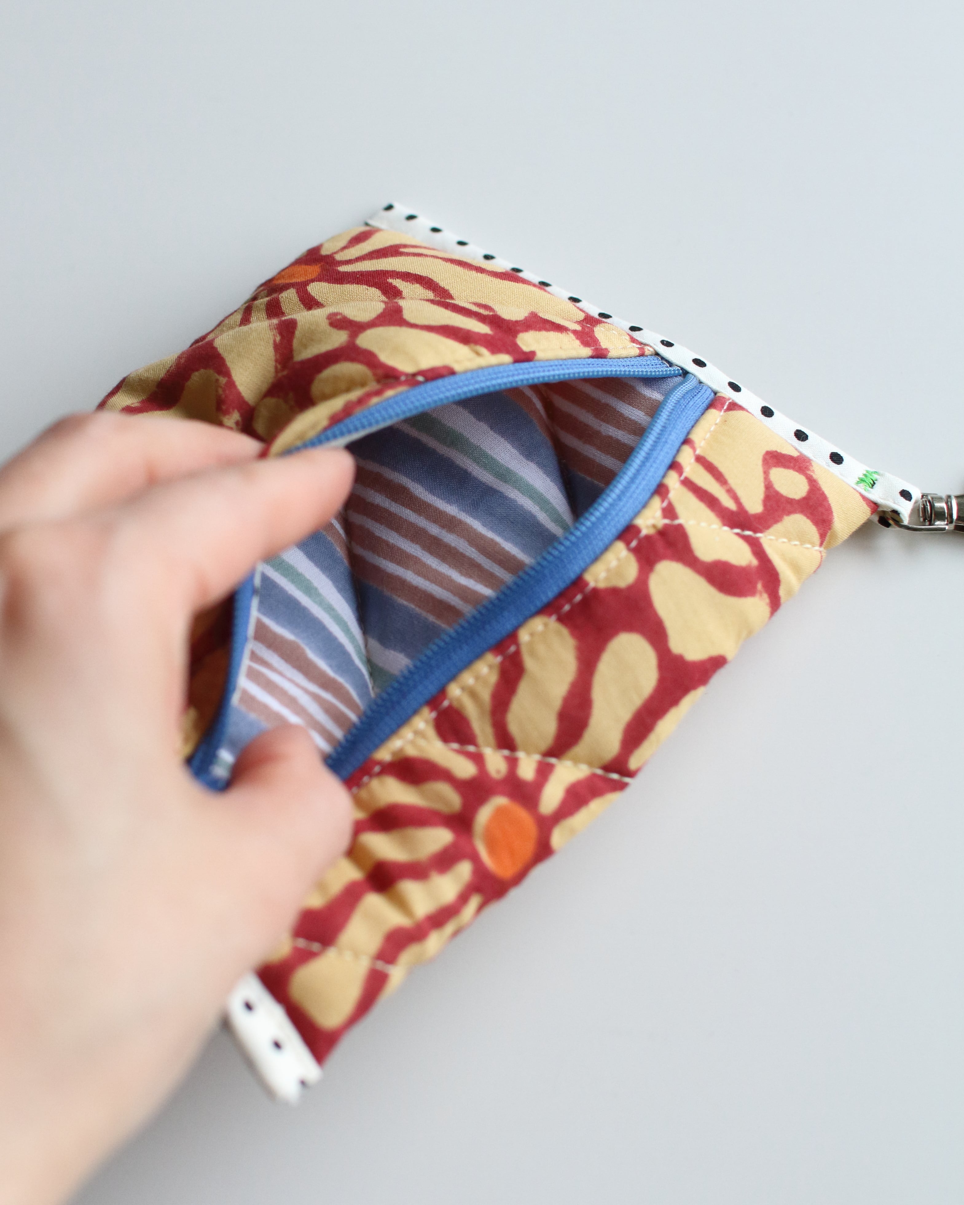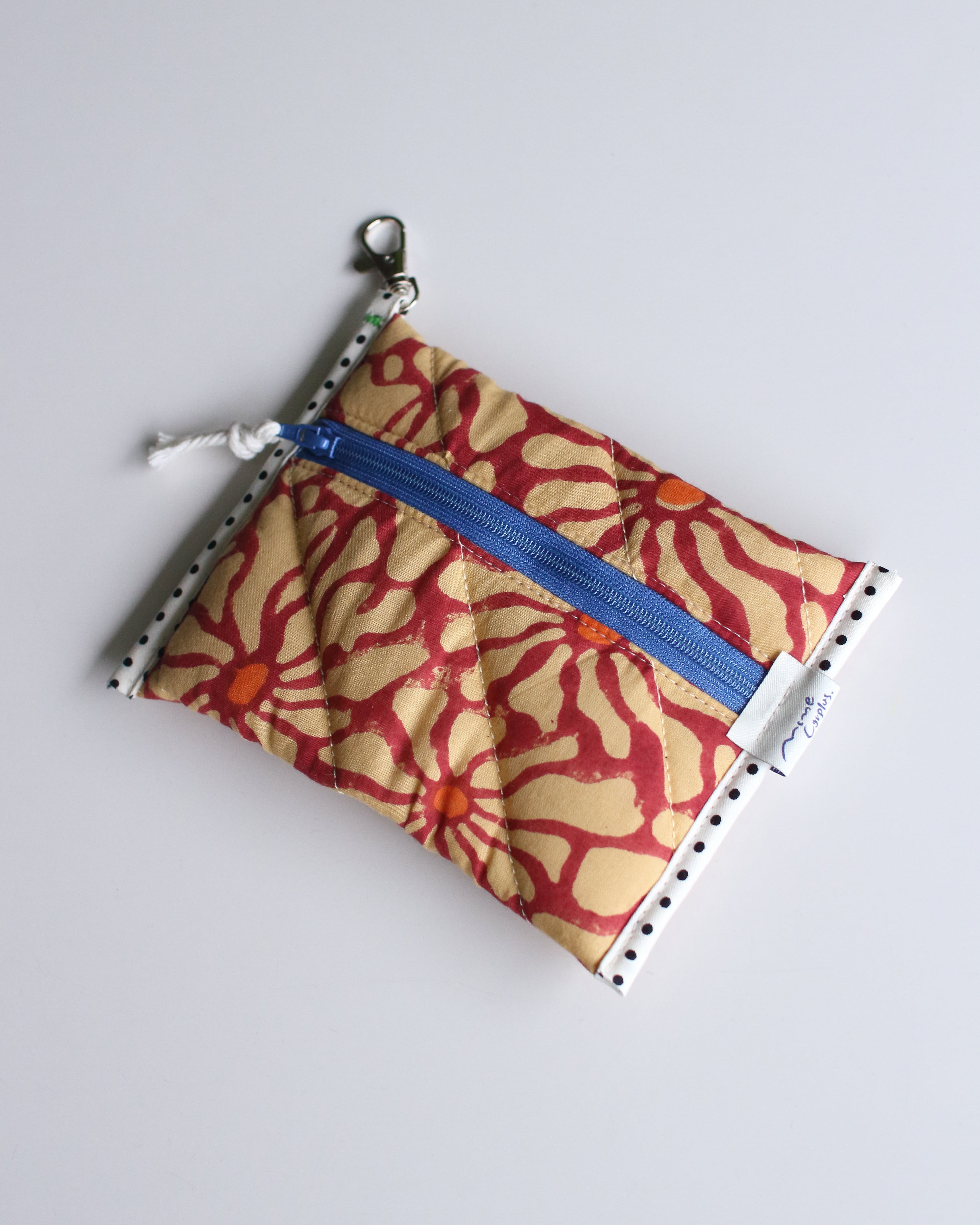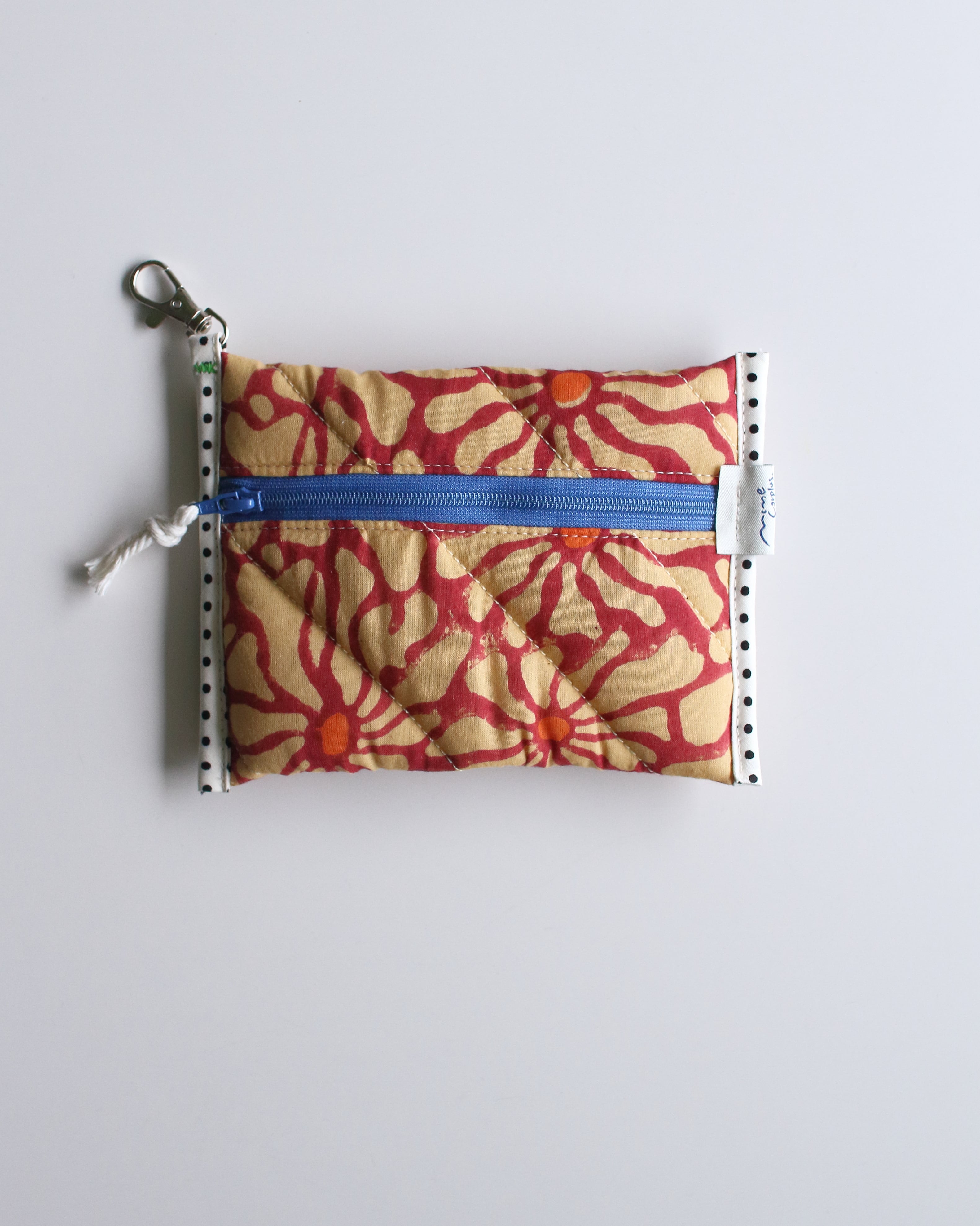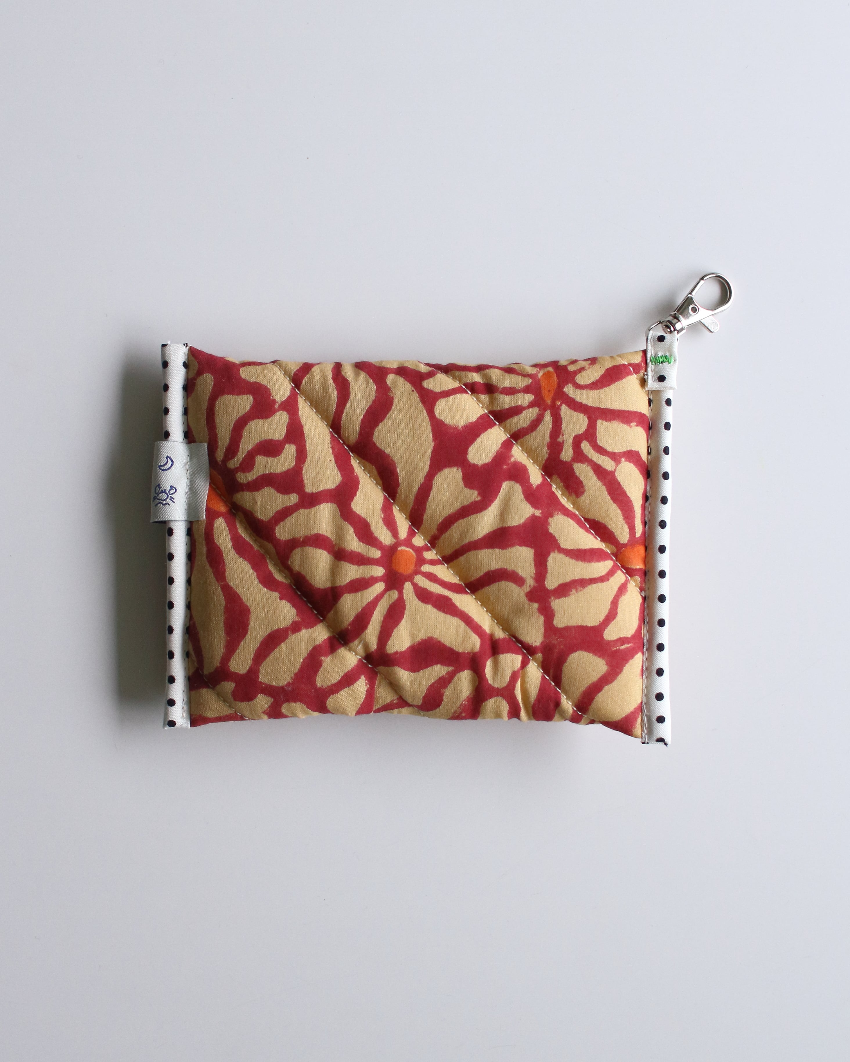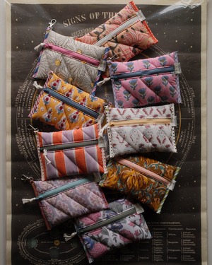 オリジナルで厚みのあるキルティングに仕立てたコンパクトポーチ。