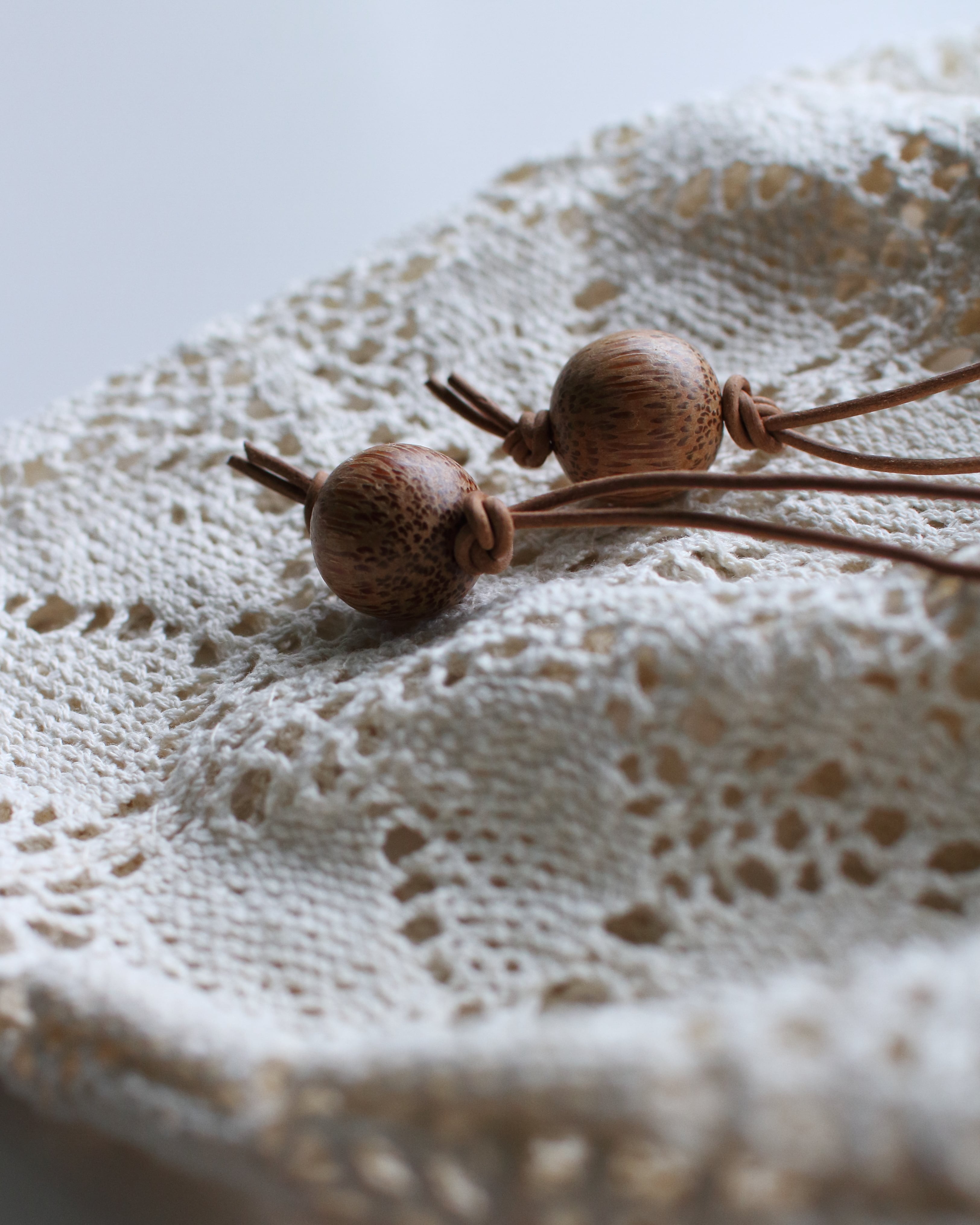 コードエンドには不規則さが魅力の天然素材(ウッド/水牛)を採用していて、