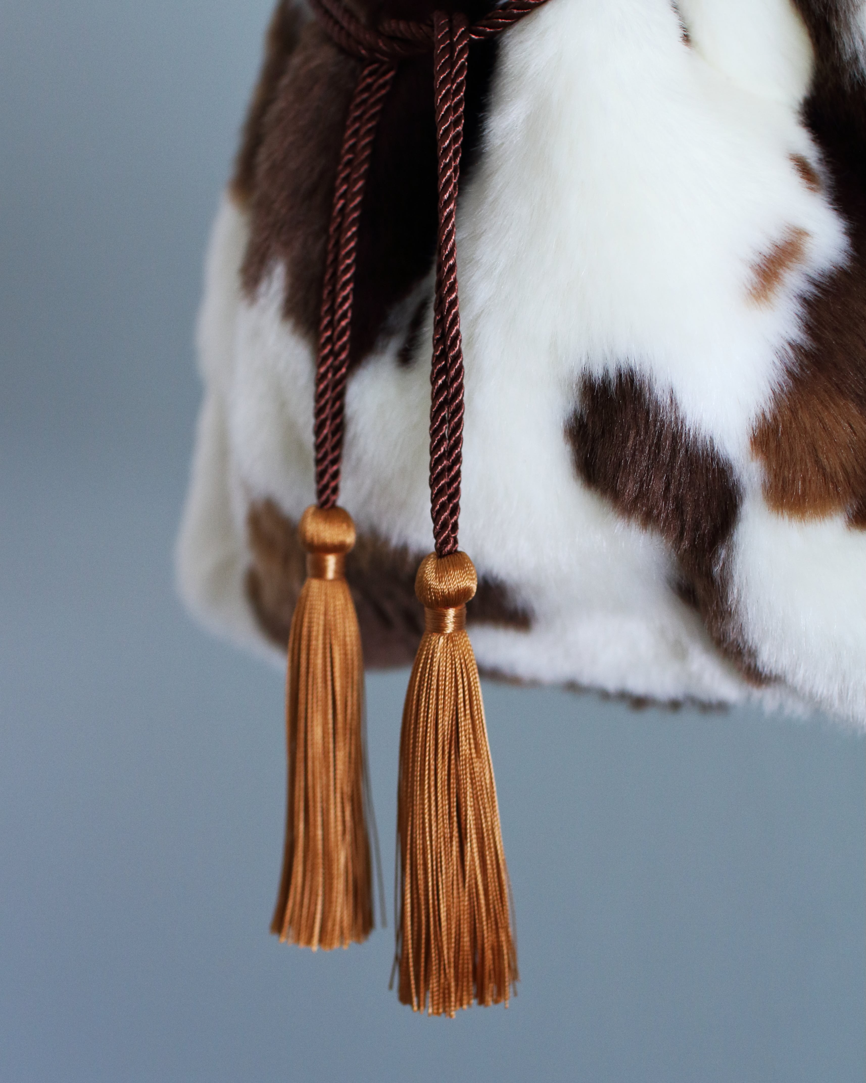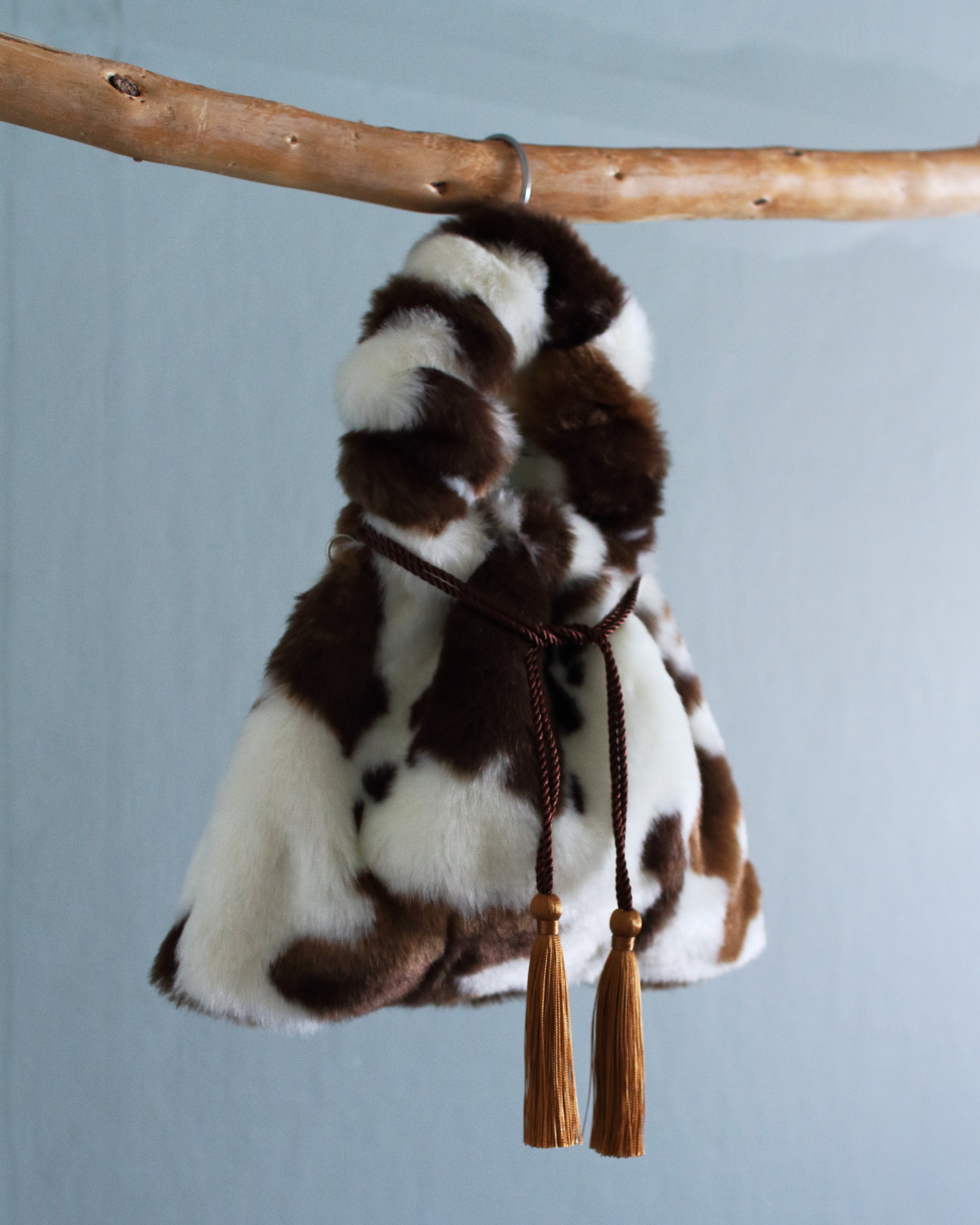 定番のシュリンク巾着を手触りふわふわのフェイクファーで仕立てました。