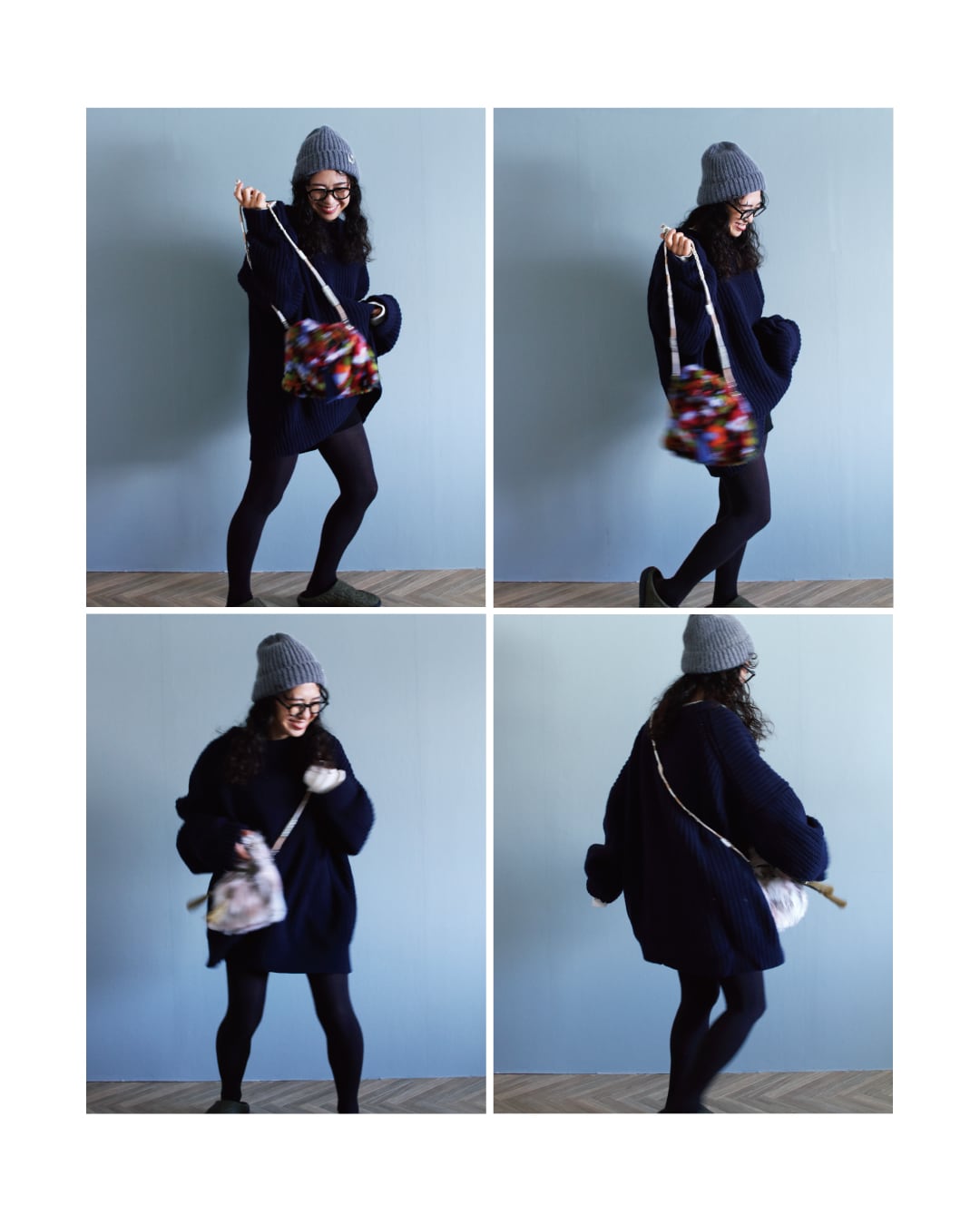 荷物を入れると重みで取手が伸びるので、色々な持ち方を楽しんで頂ければと思います。